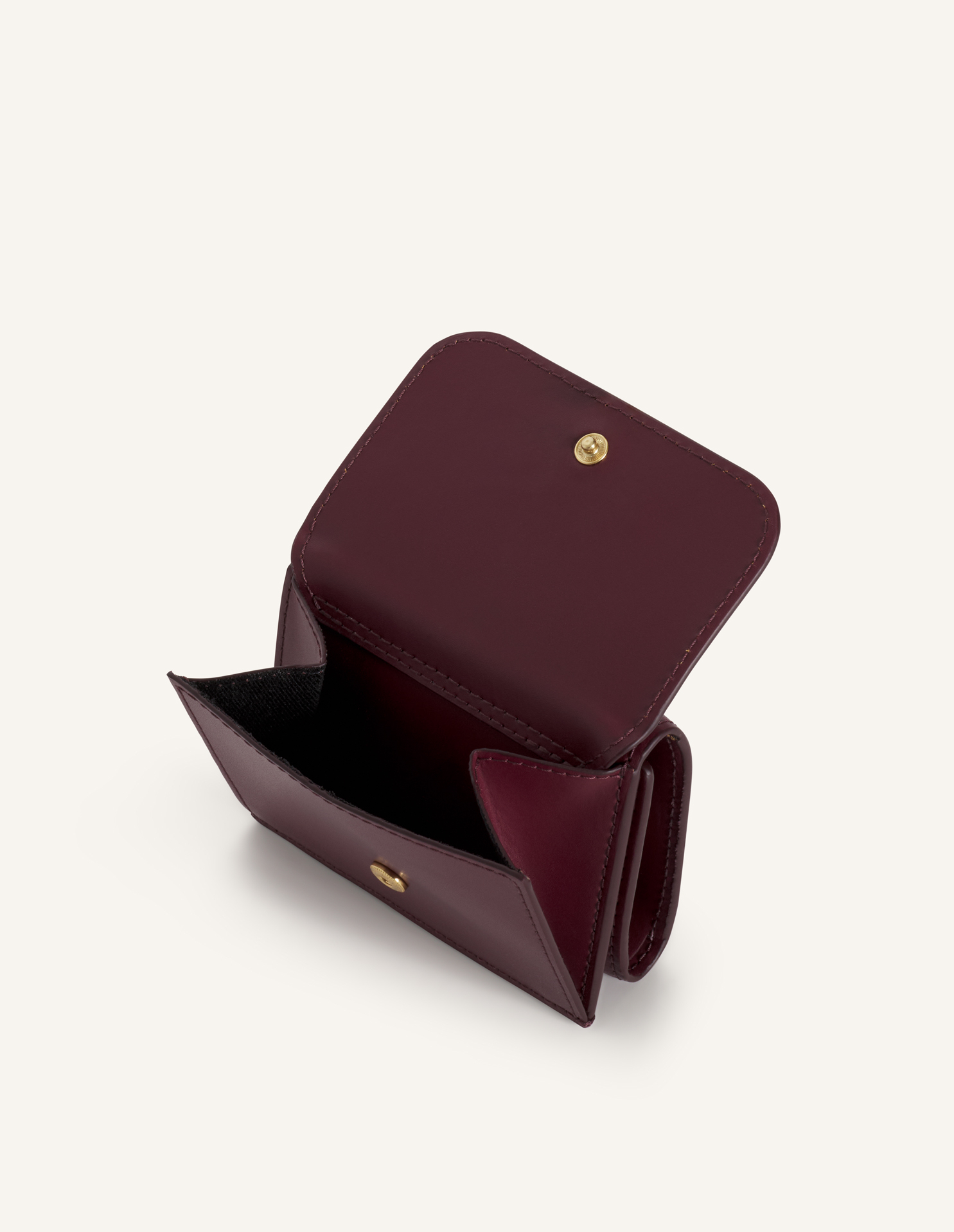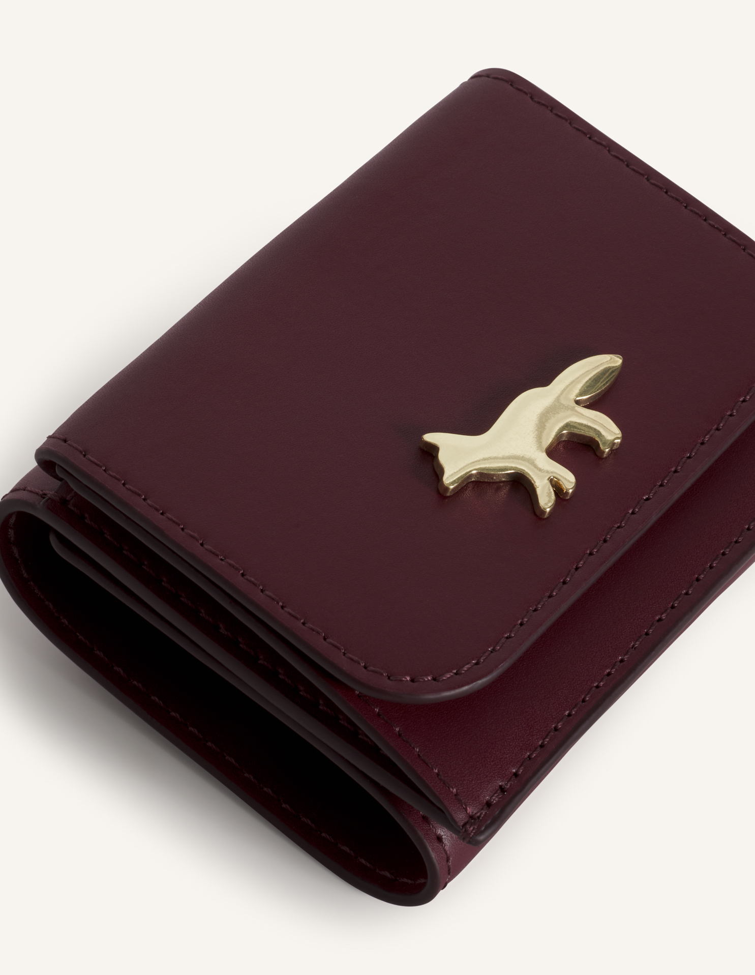 Edie compact wallet in smooth matte leather. Profile Fox metal rivet at the front.