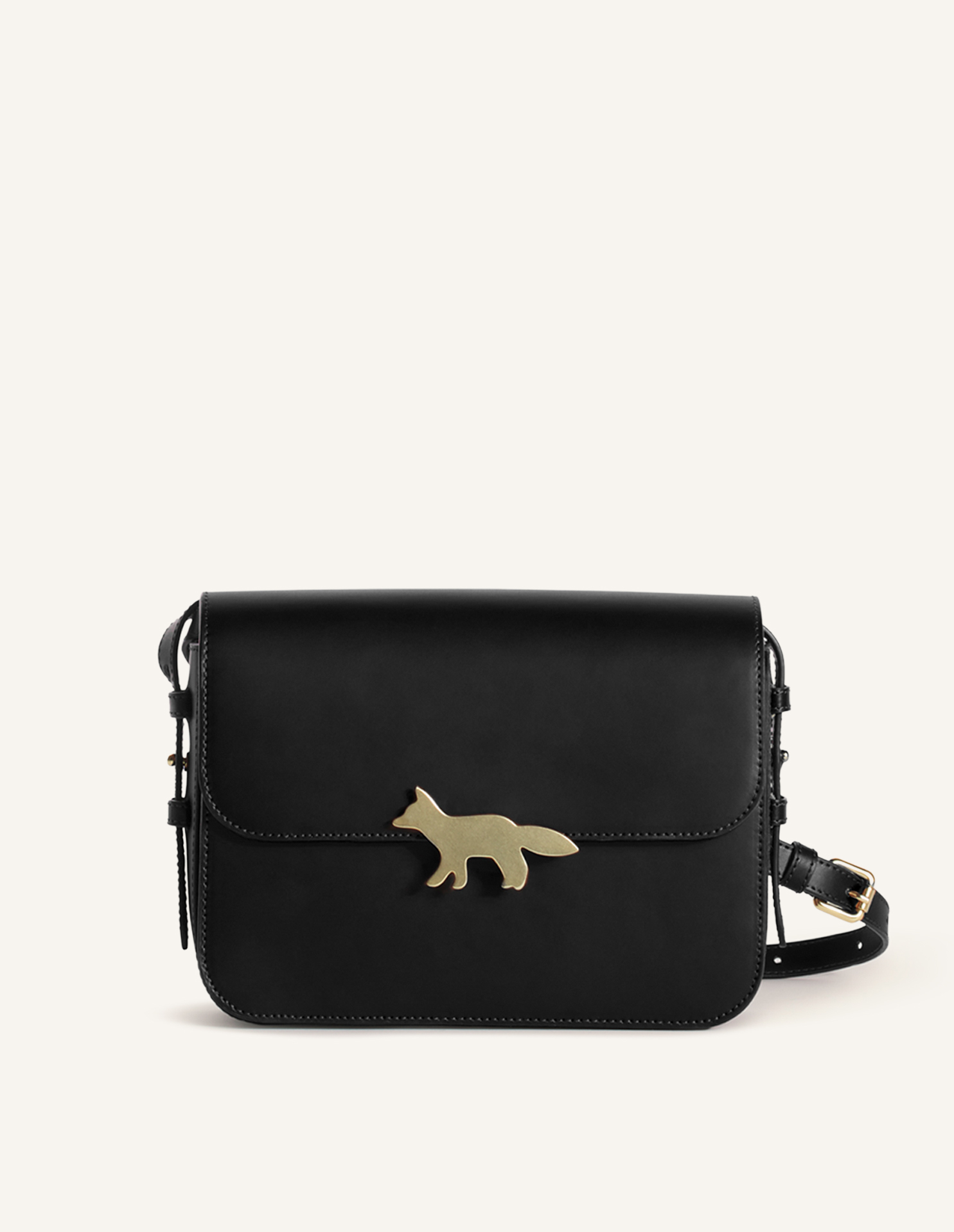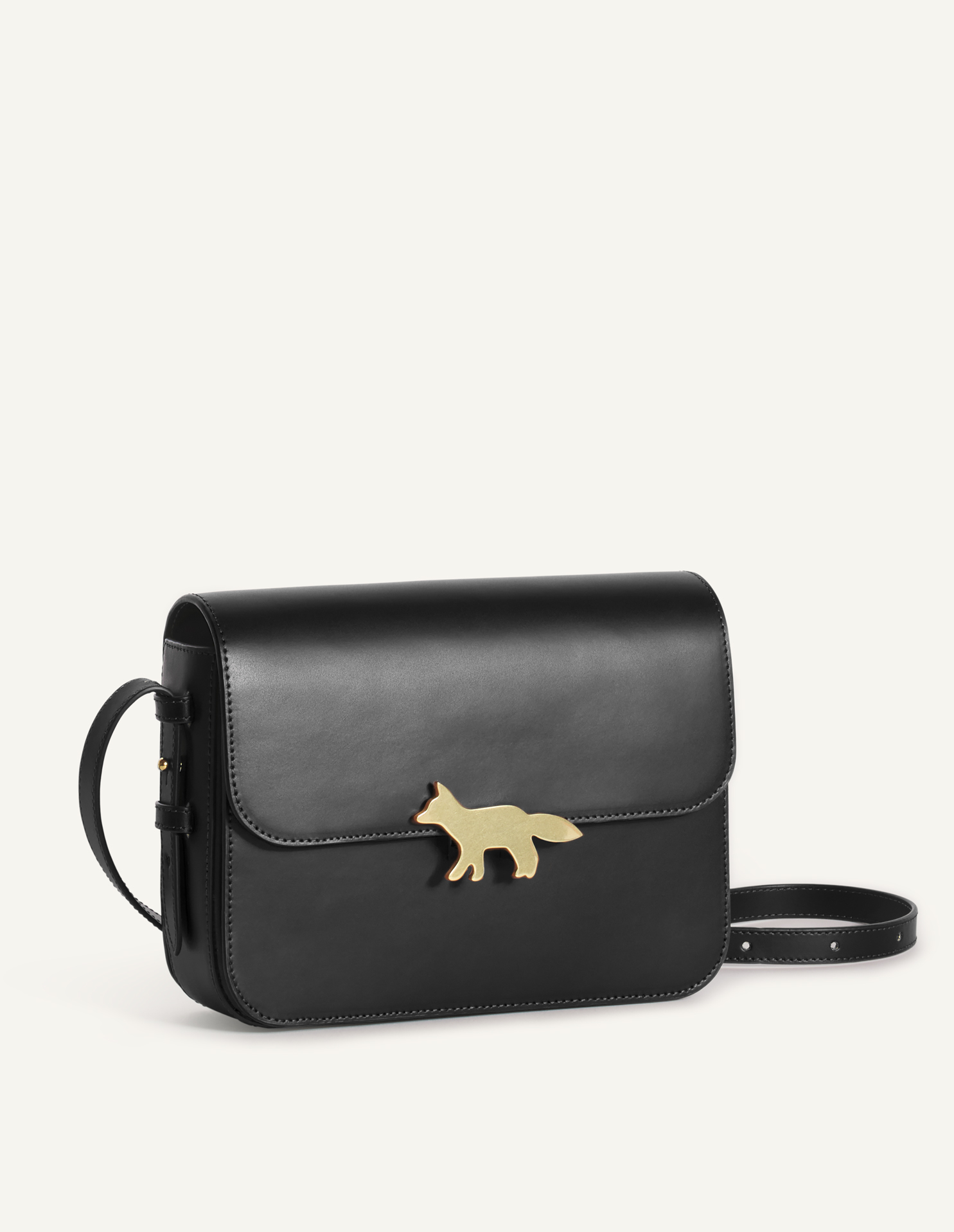 Large Edie bag in smooth matte leather. Profile Fox gold clasp.
