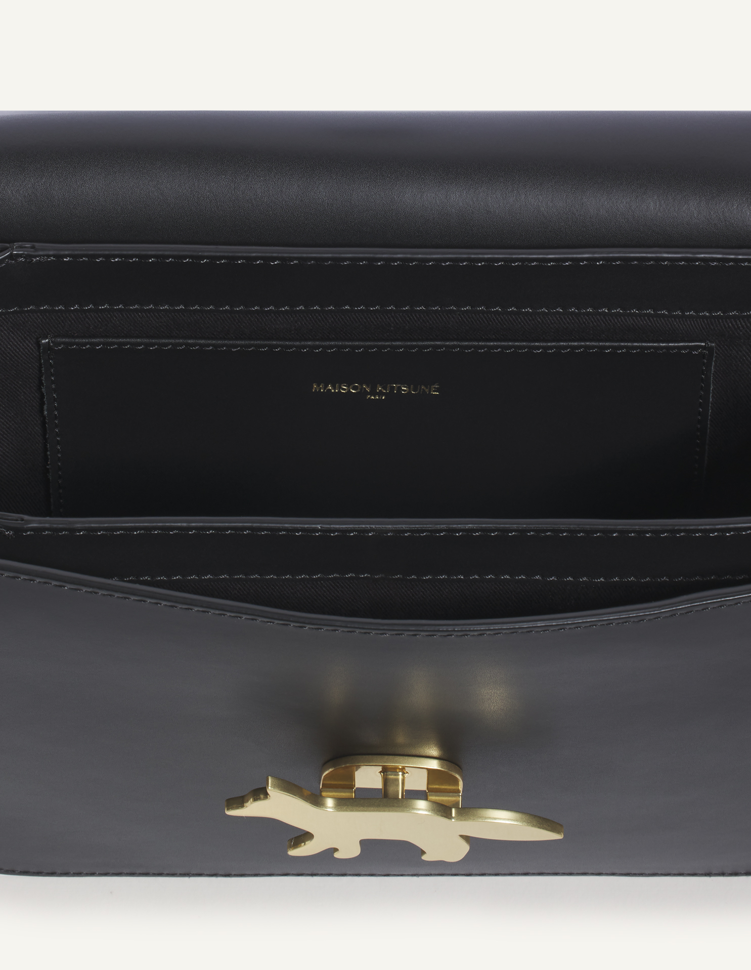 Gold embossed Maison Kitsuné Paris at the back -Three interior compartments including one roomy main compartment
