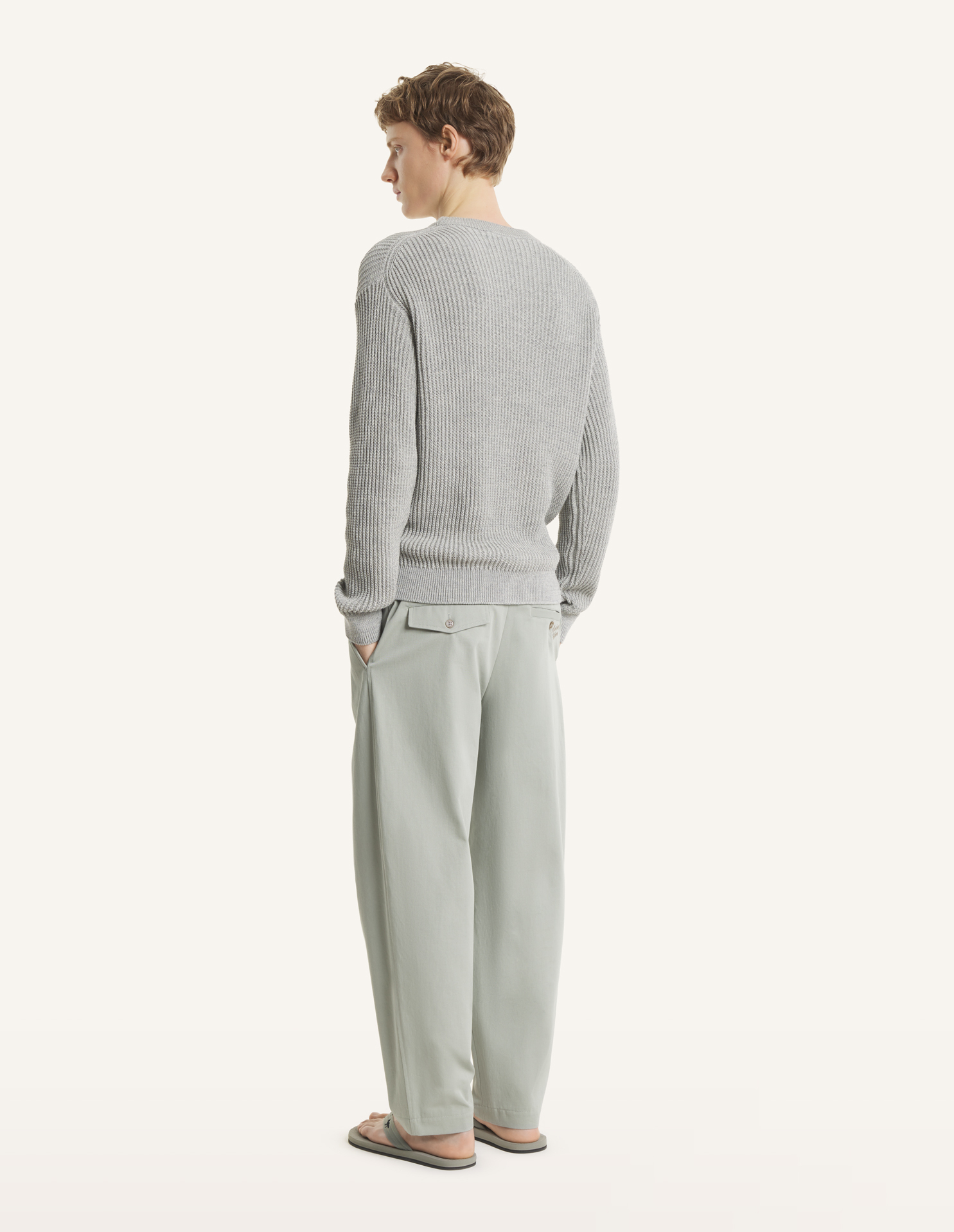 Welt buttoned right back pocket and flap buttonned left back pocket