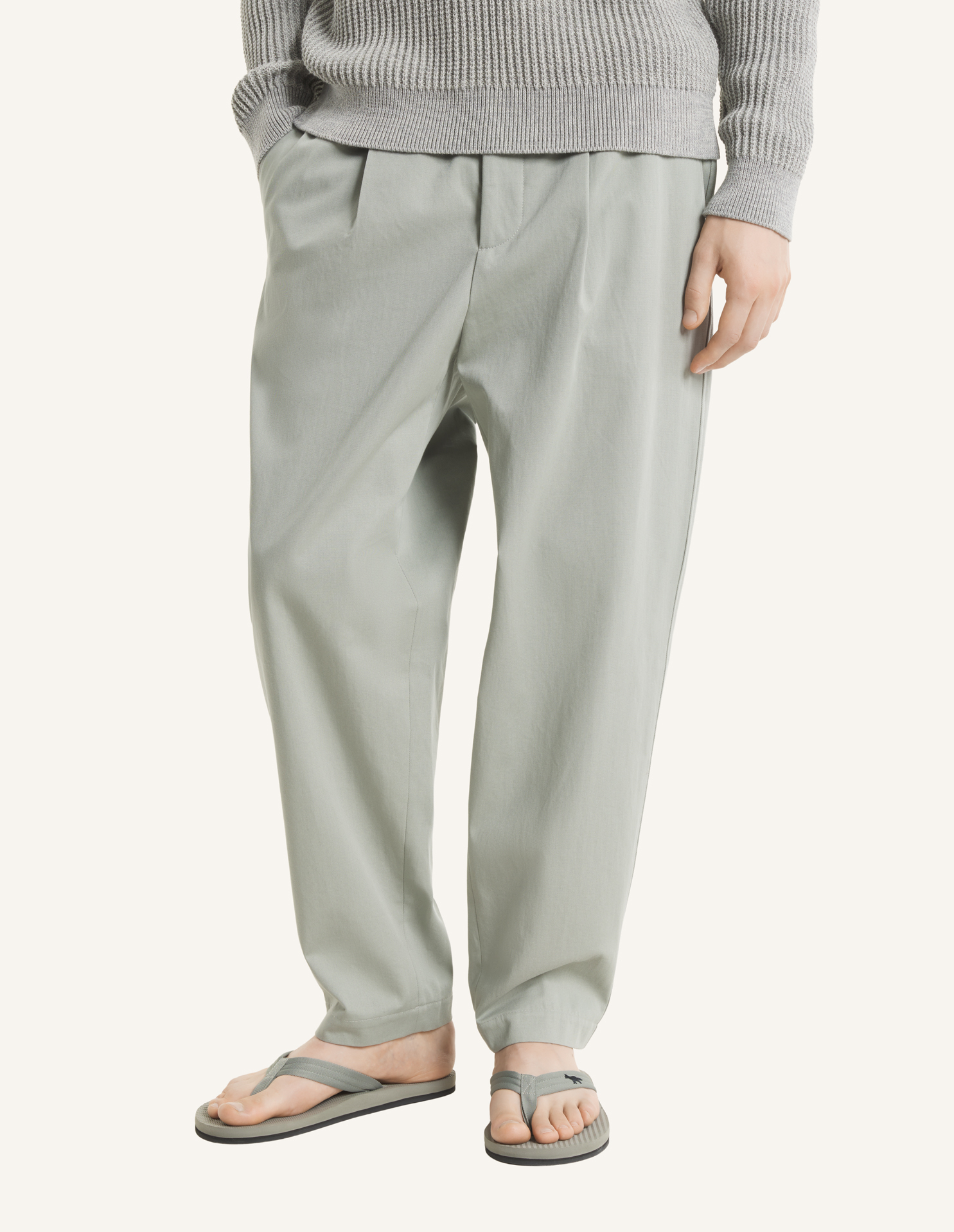 • Elasticated pleated pants in washed light canvas