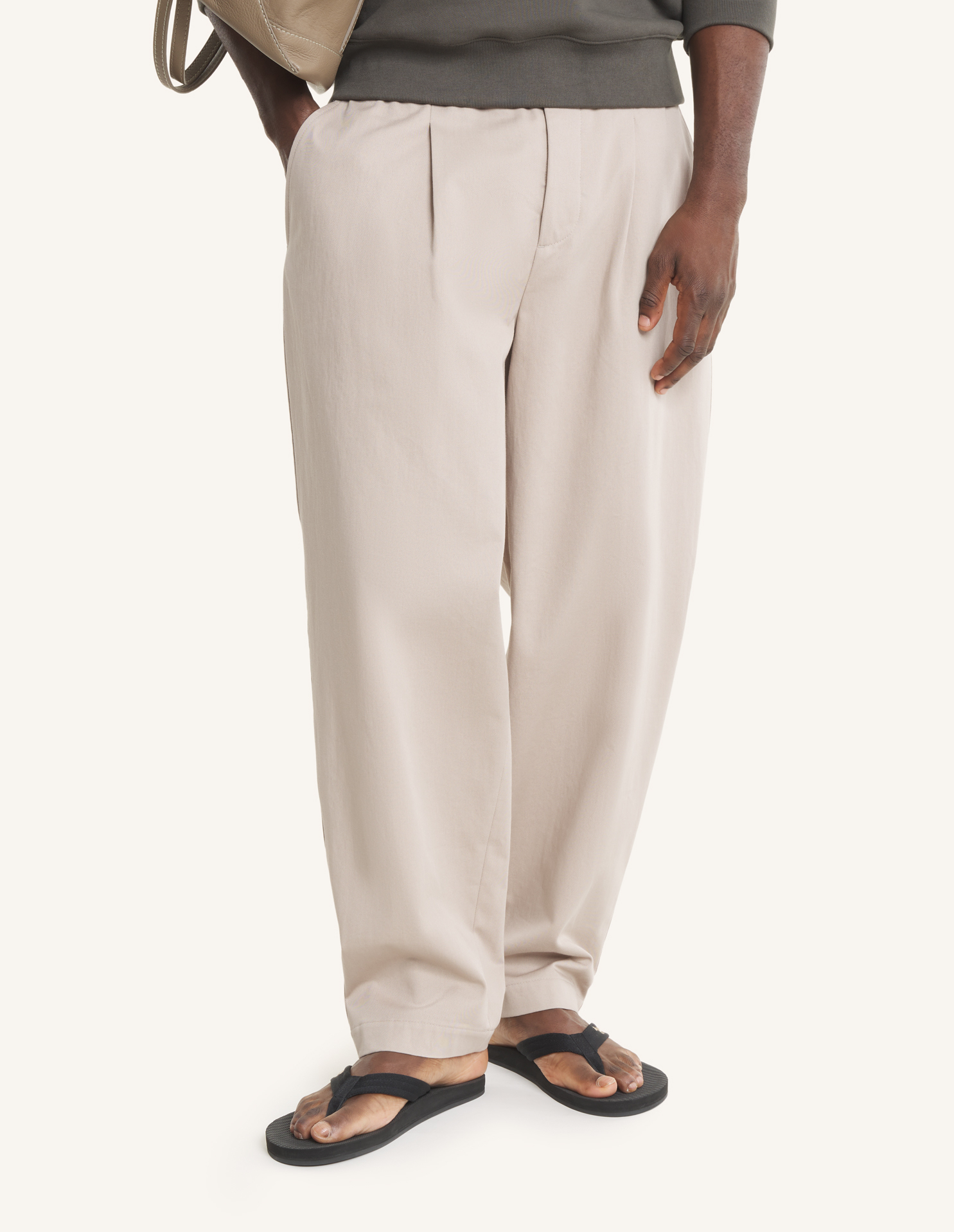 • Elasticated pleated pants in washed light canvas