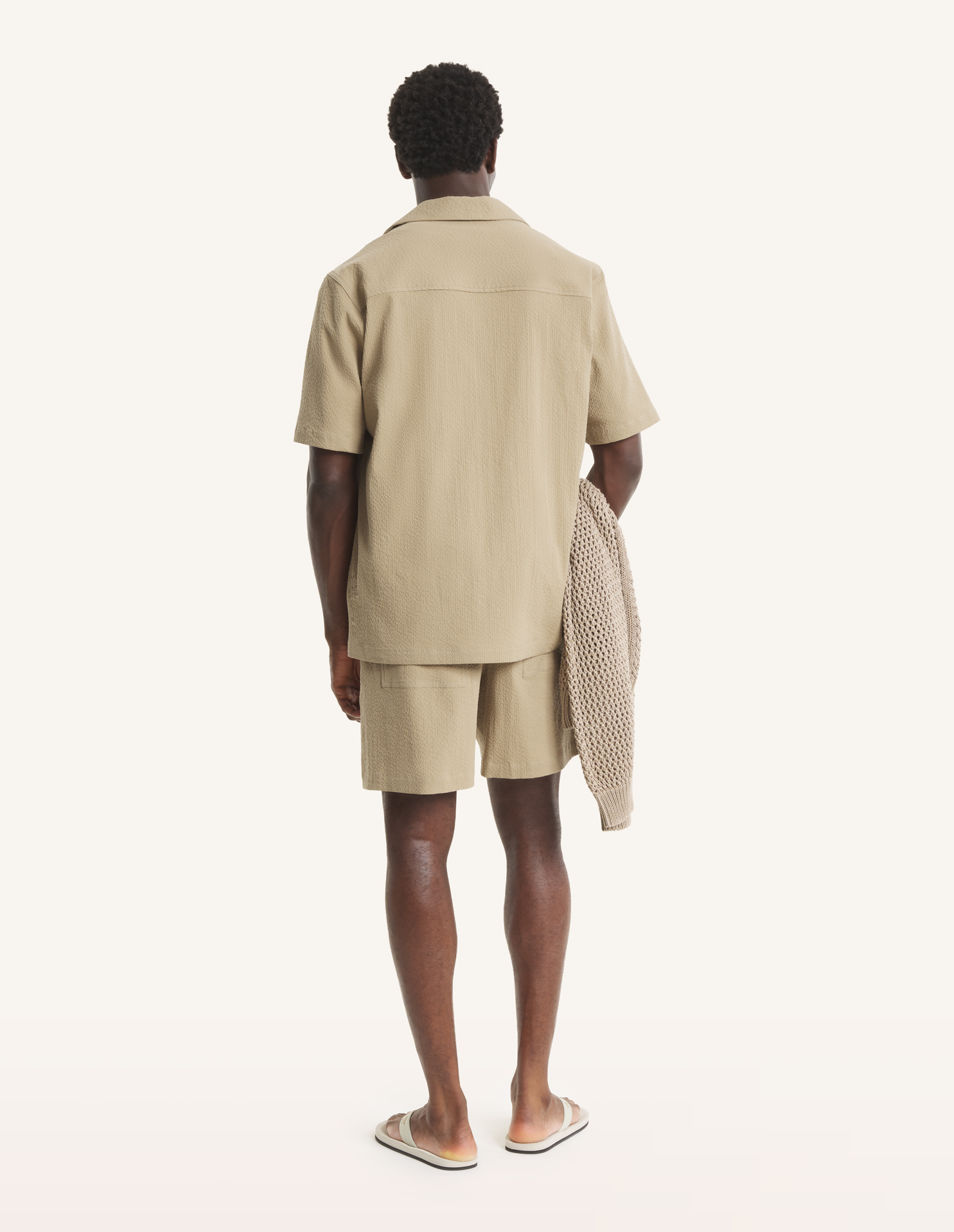 • Cotton seersucker shorts for lightness and texture