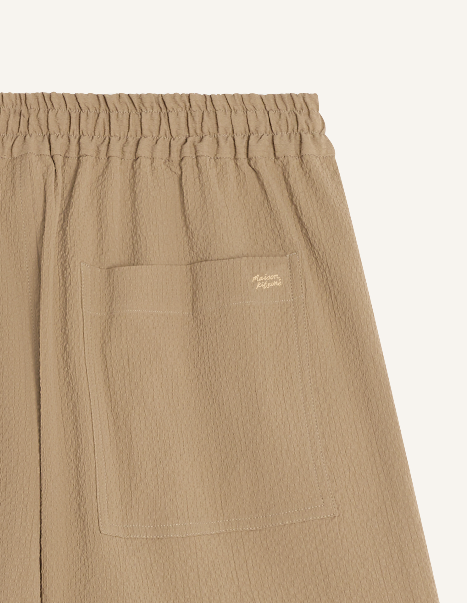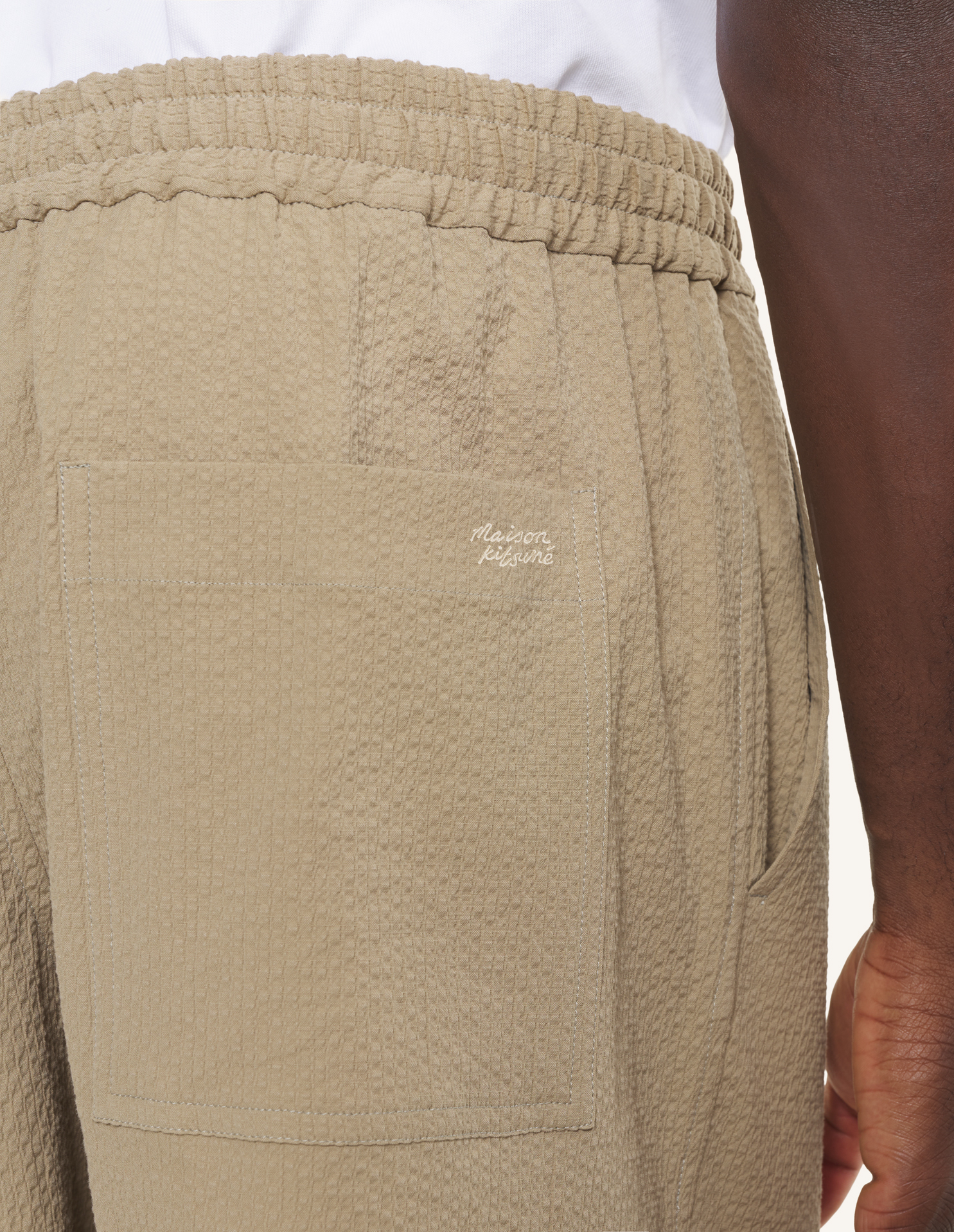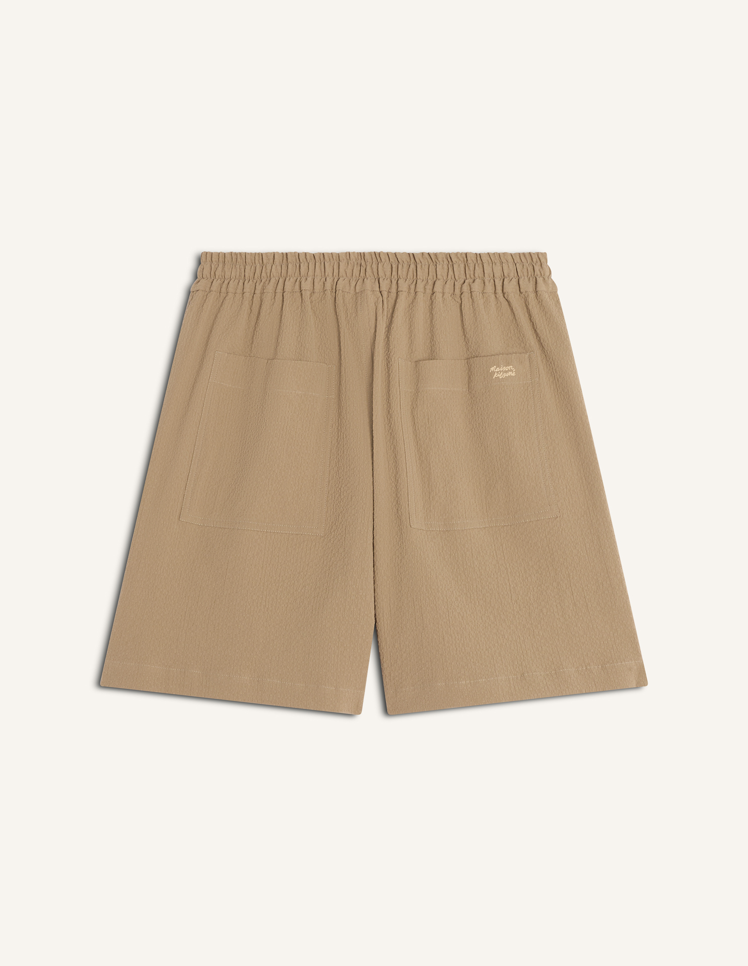 Elasticated shorts in cotton seersucker. Relaxed fit with Maison Kitsuné Handwriting embroidery.