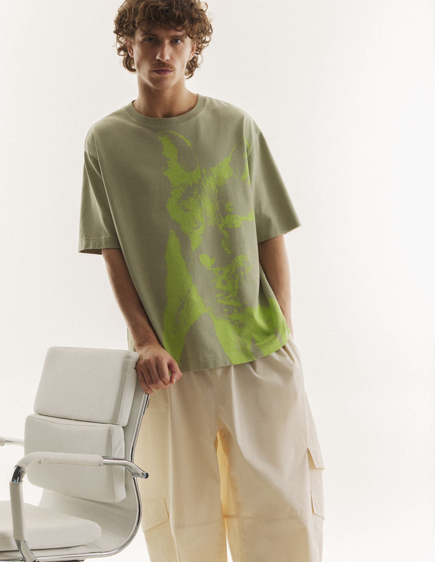 Oversized clean cotton jersey t-shirt (240g). Large Fox Cub print at the front.