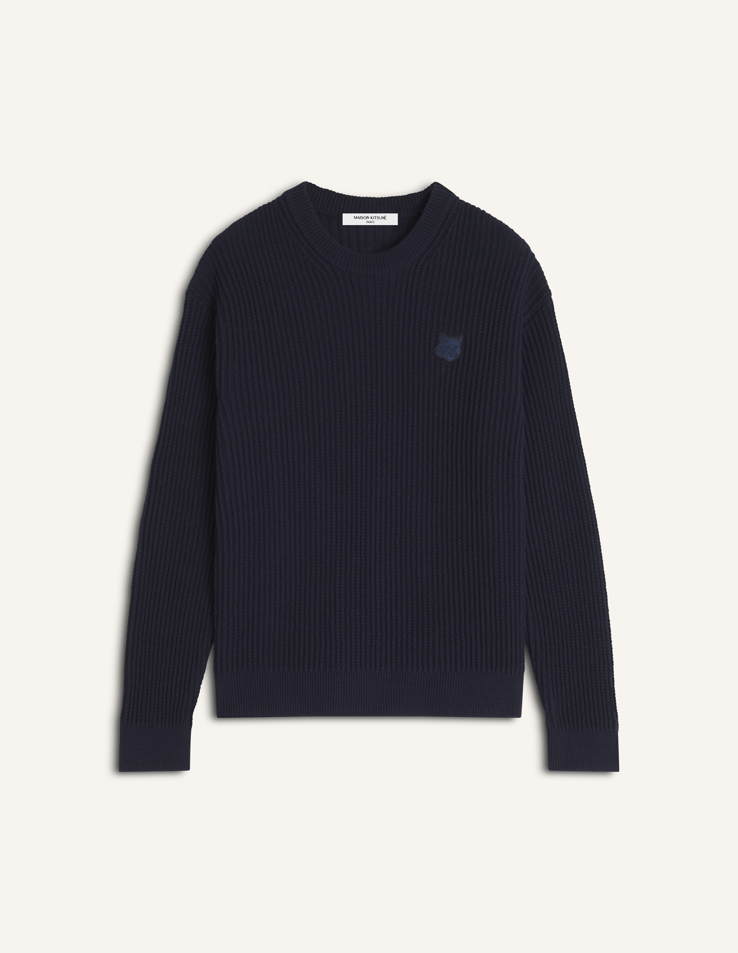 Ribbed cotton jumper. Comfort fit with Fox Head embroidered patch on the chest.