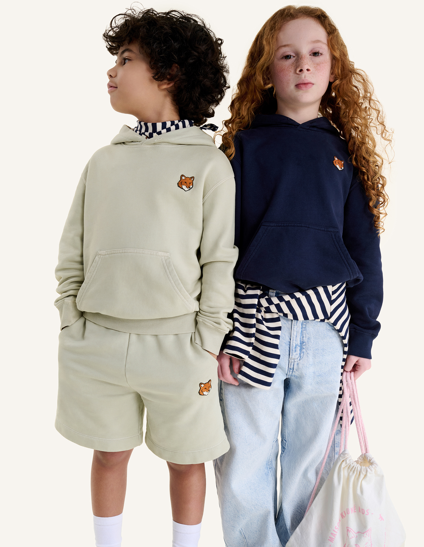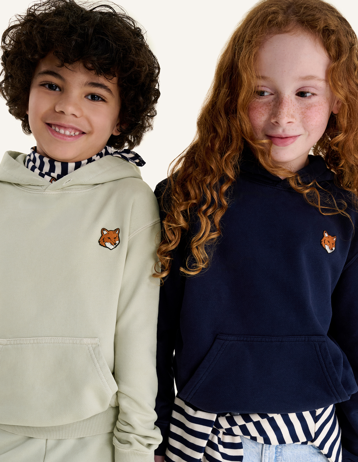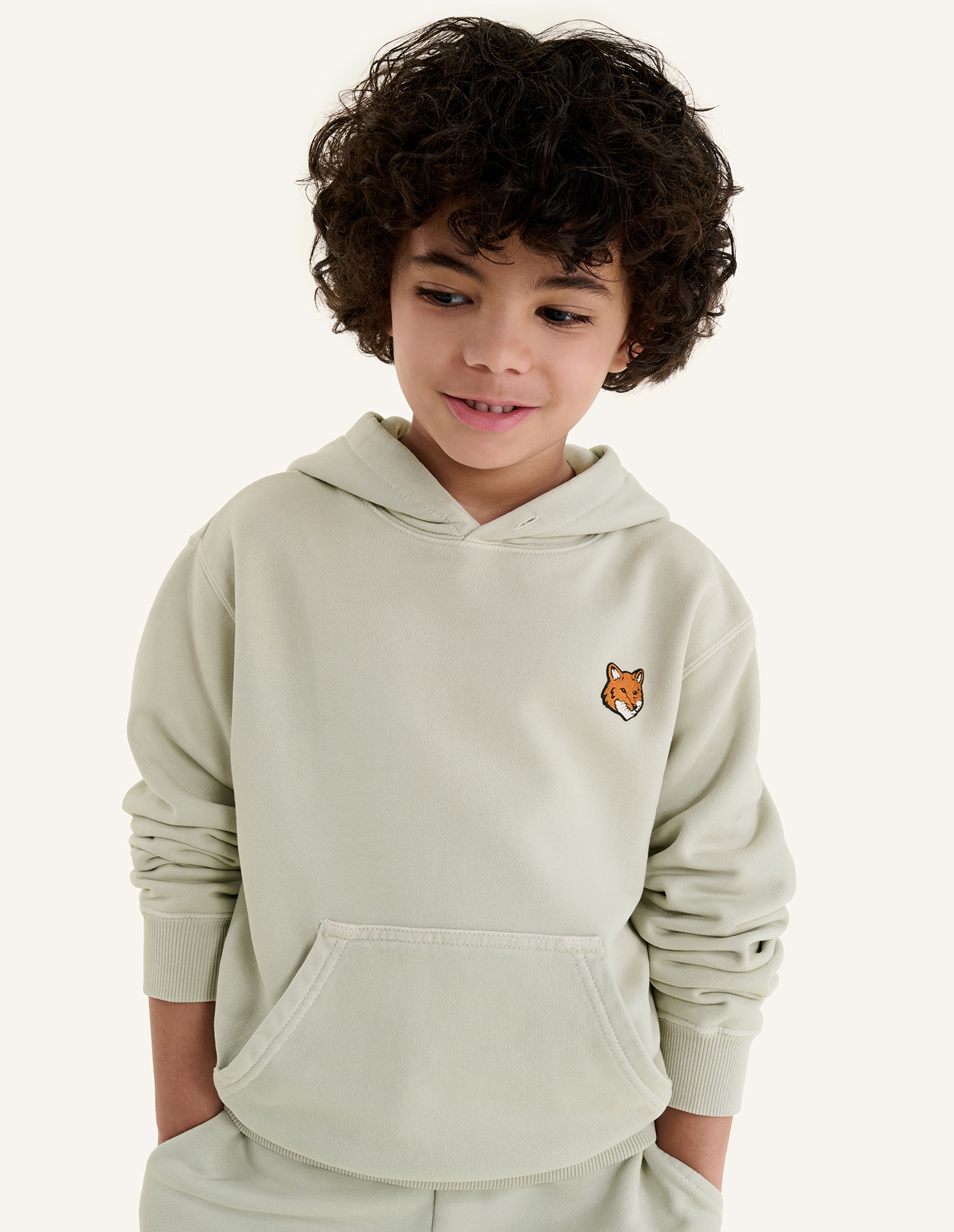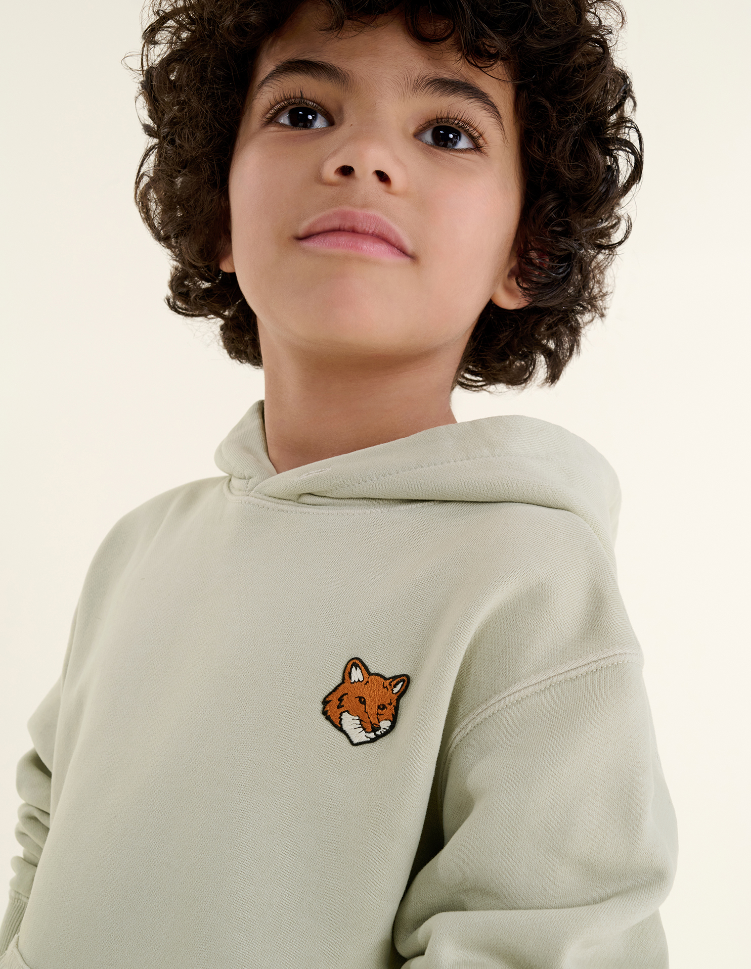 Kid's hoodie in cotton fleece. Fox Head embroidered patch on the chest.