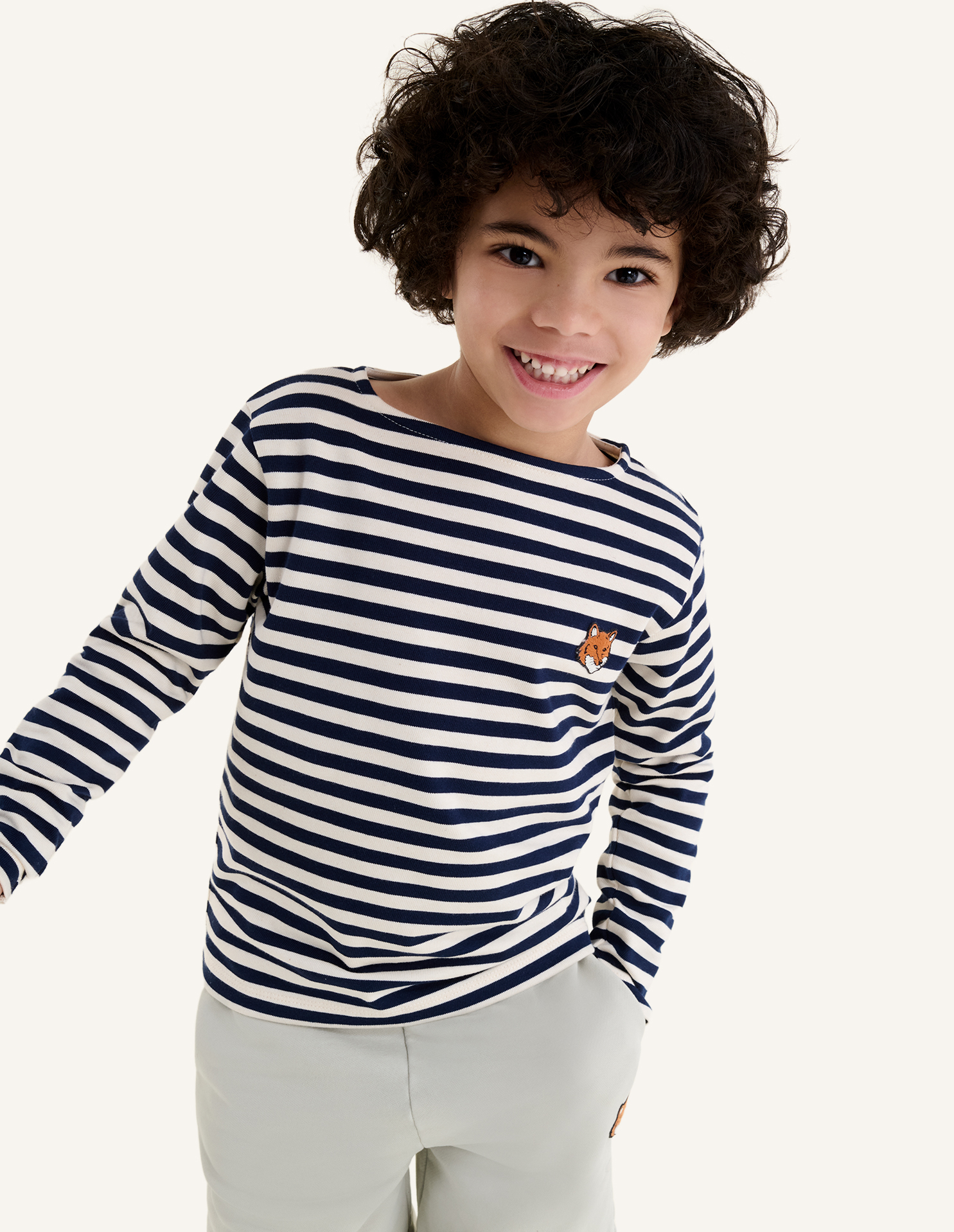 Kid's long sleeve t-shirt in striped jersey. Regular fit with Fox Head embroidered patch on the chest.