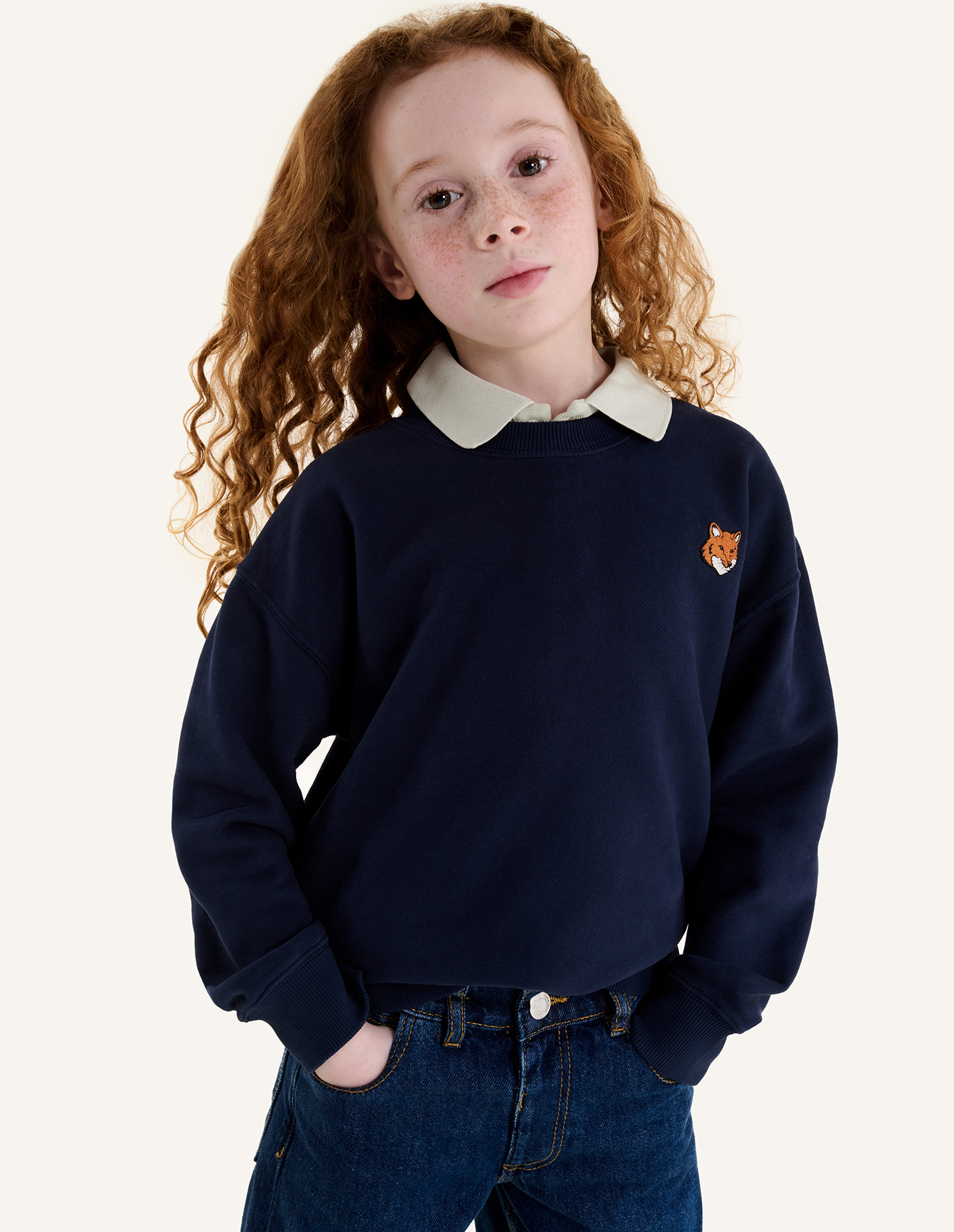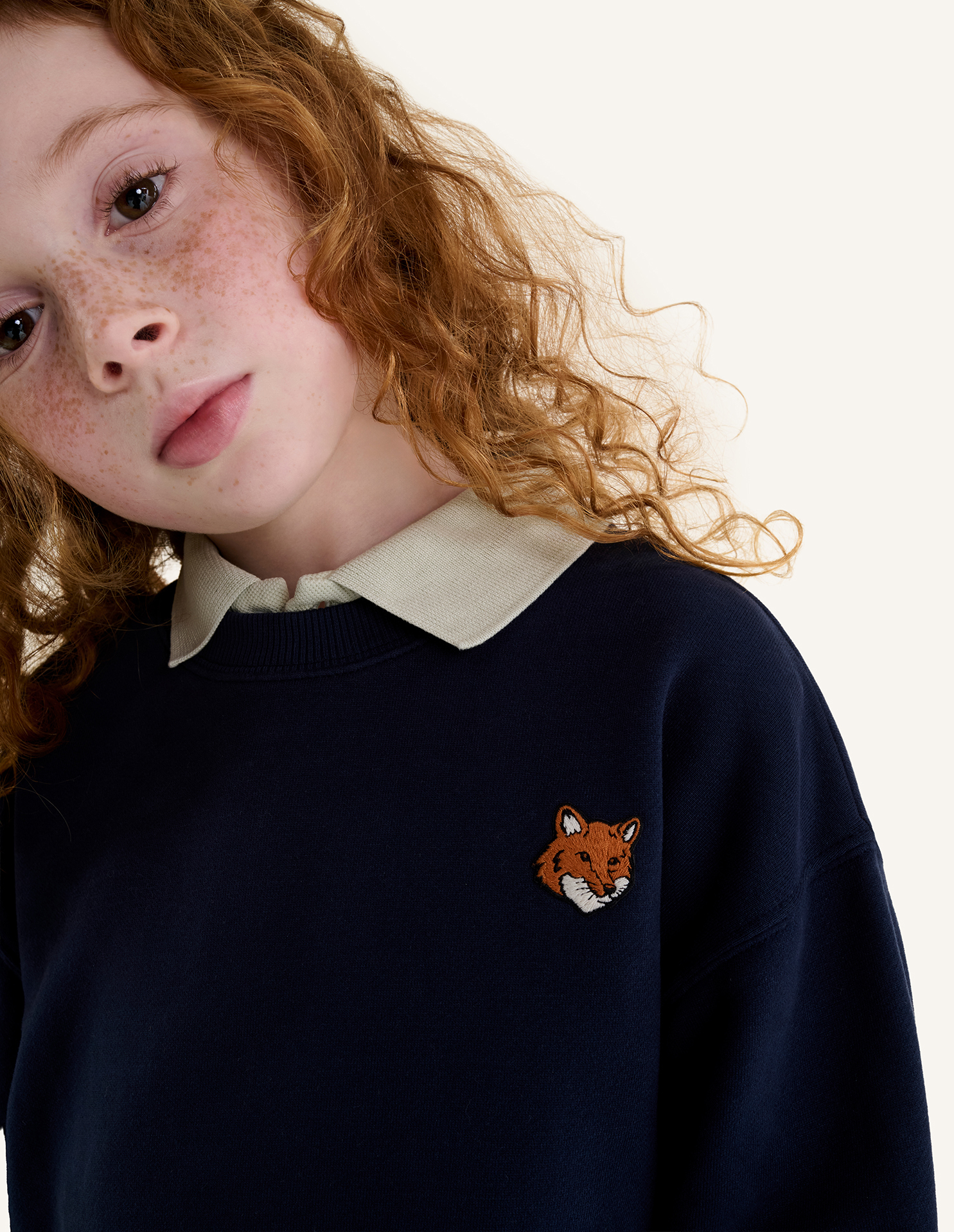 Kid's sweatshirt in cotton fleece with Fox Head embroidered patch on the chest.