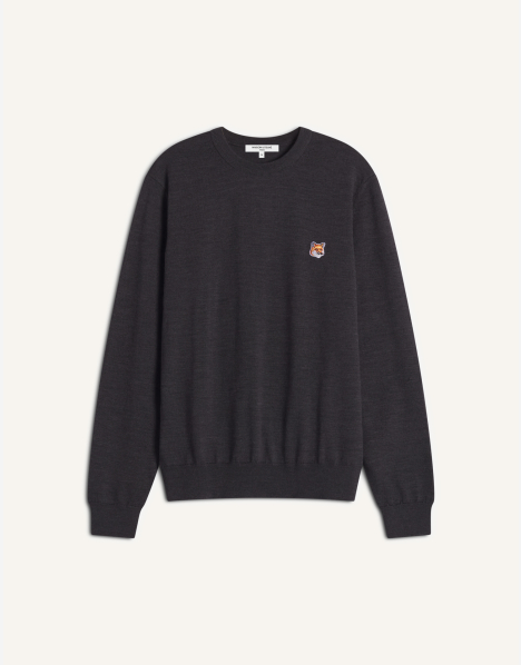 Extra-fine merino wool jumper, regular fit, Fox Head embroidered patch.