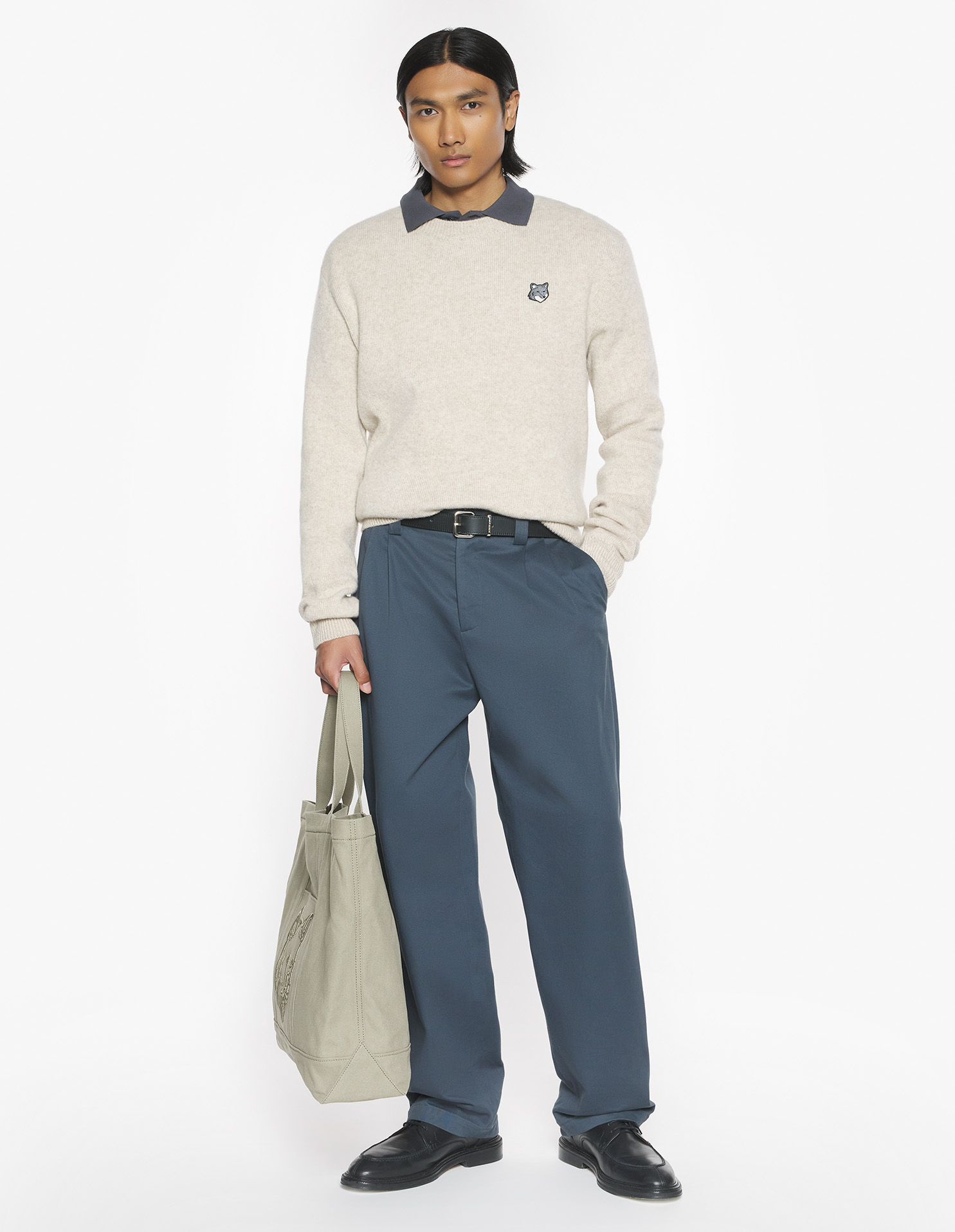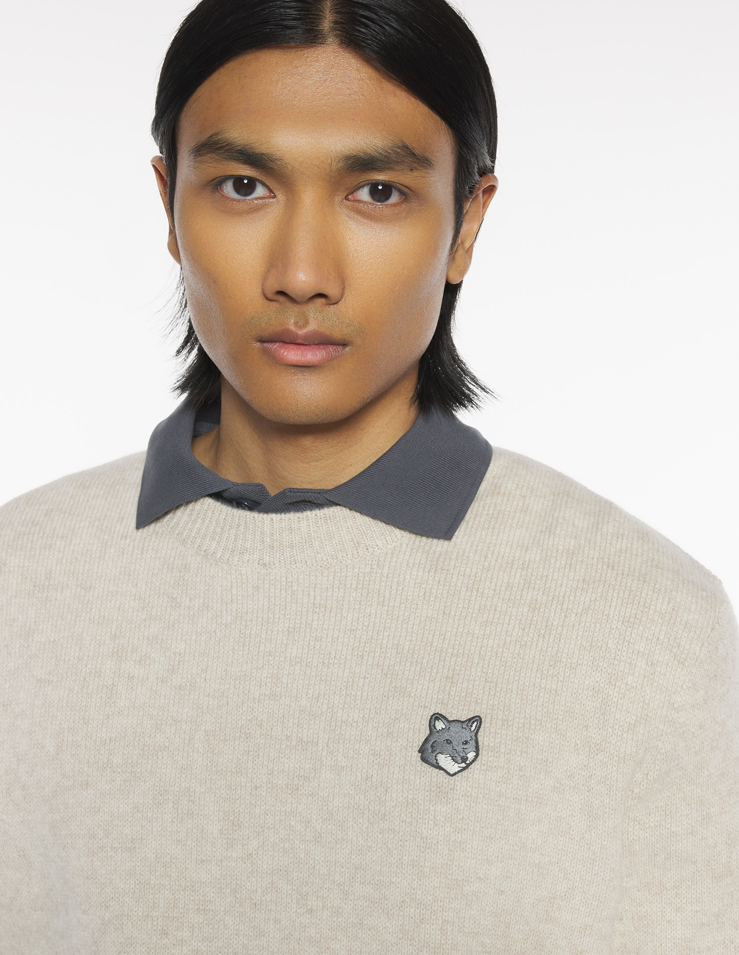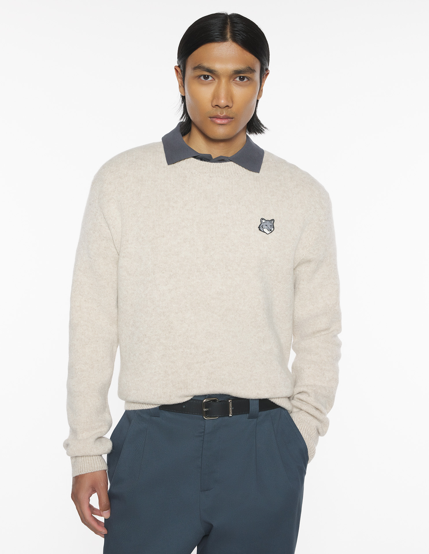 Milano lambswool jumper with long sleeves. Comfort fit with Grey Fox Head embroidered patch.