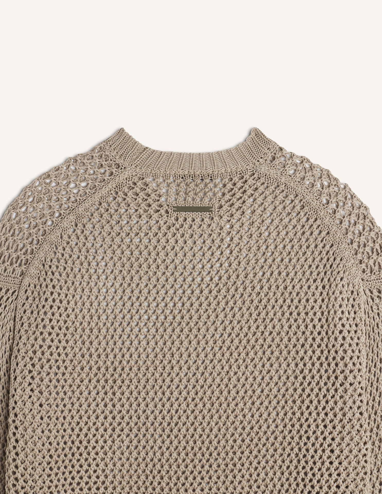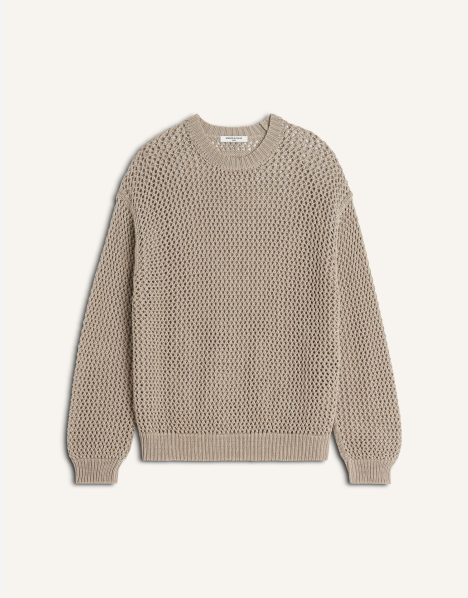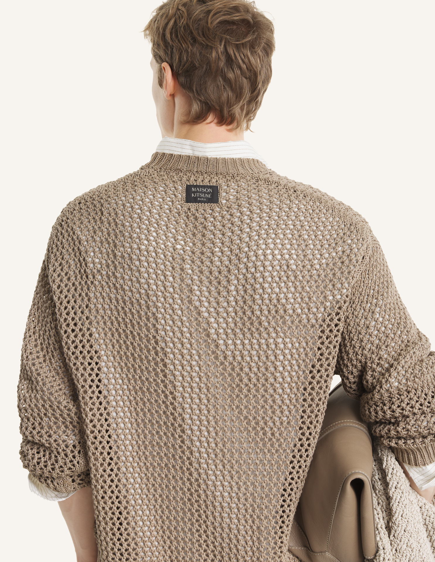 Open-knit jumper in large pointelle cotton. Oversize fit with Maison Kitsuné Paris tonal metal rivet at the back neckline.