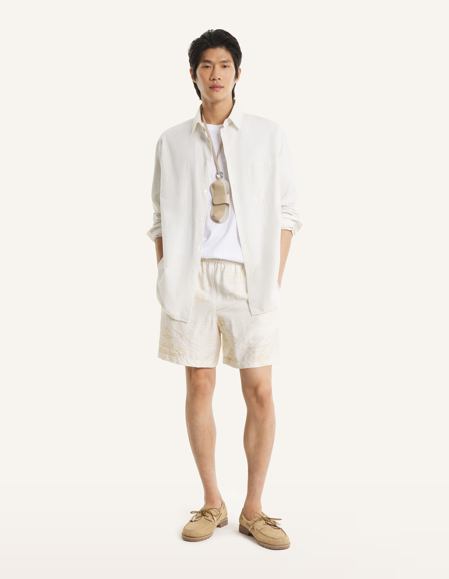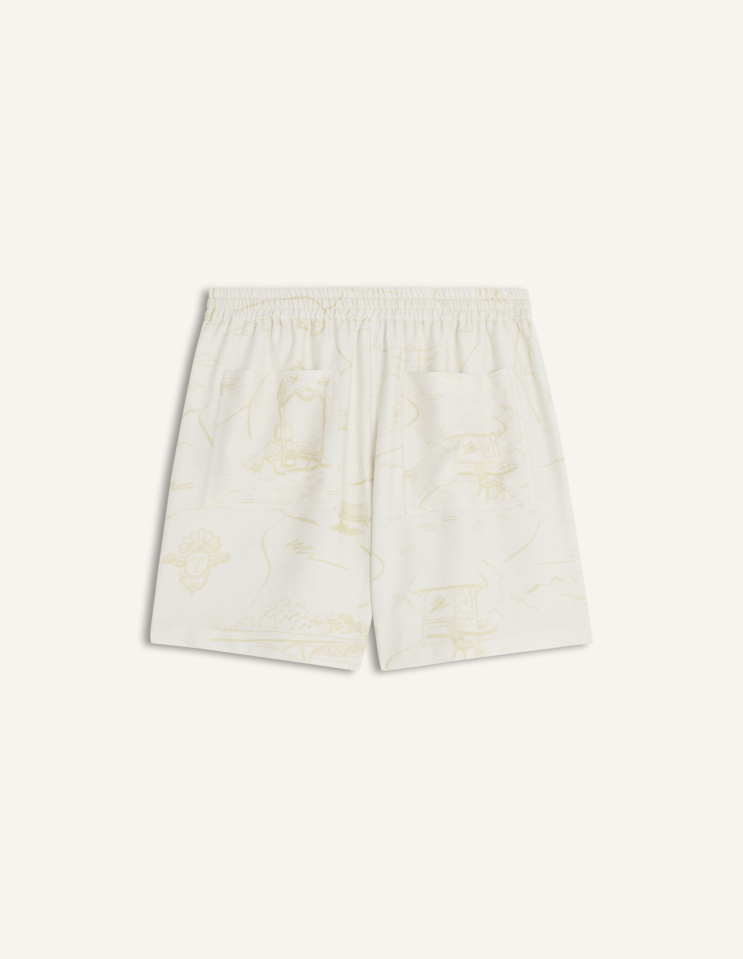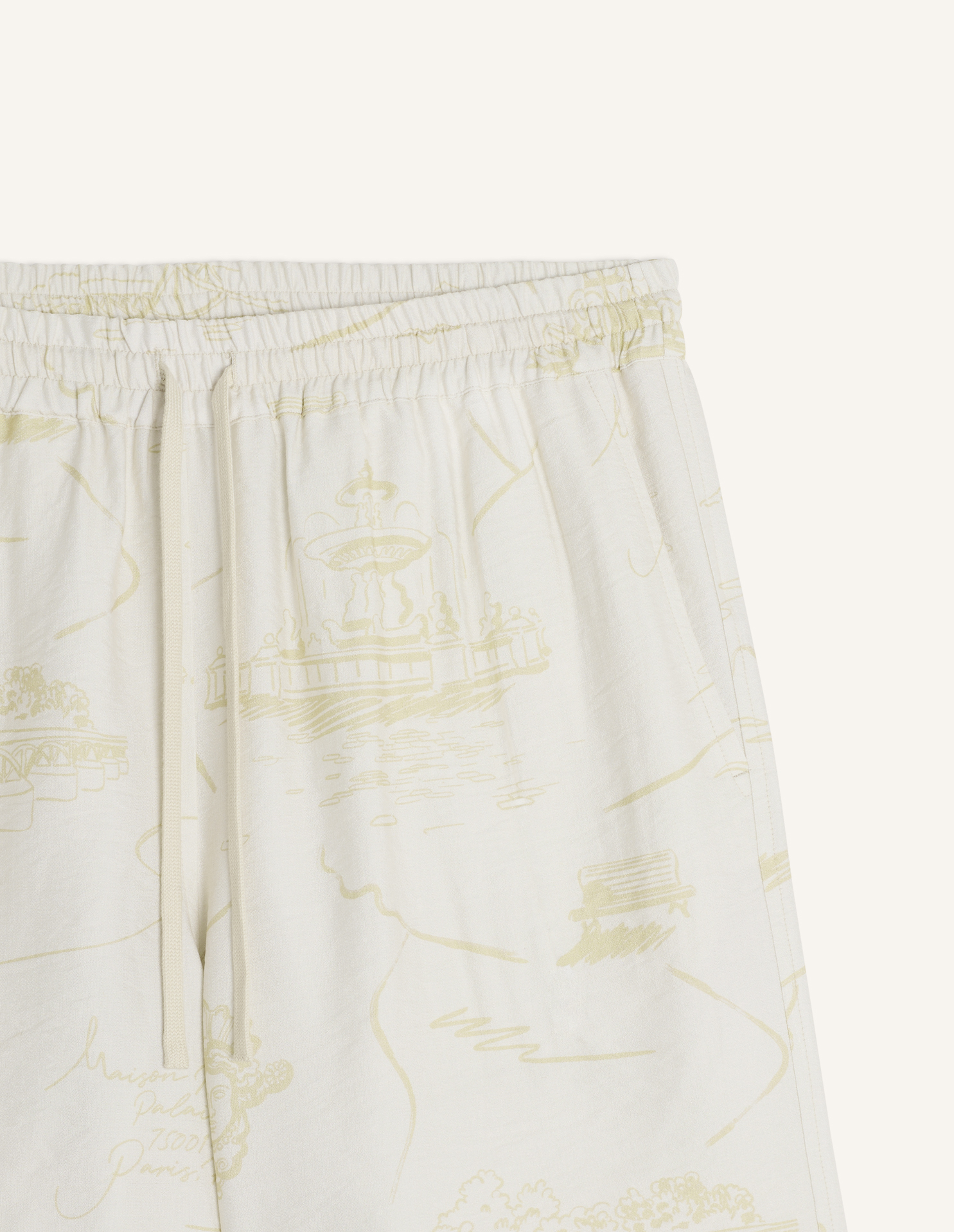 Lightweight shorts in textured viscose. Relaxed fit with Parisian Map printed all-over.
