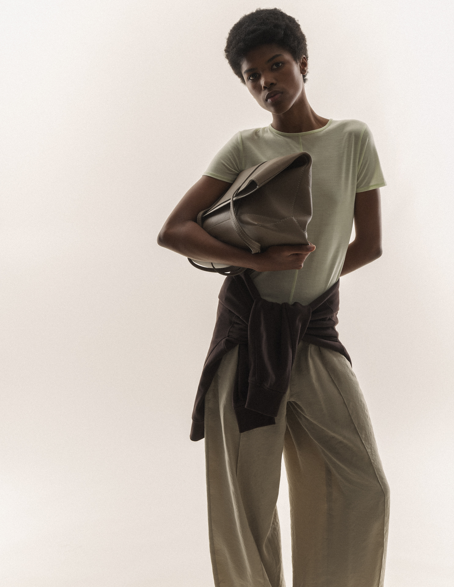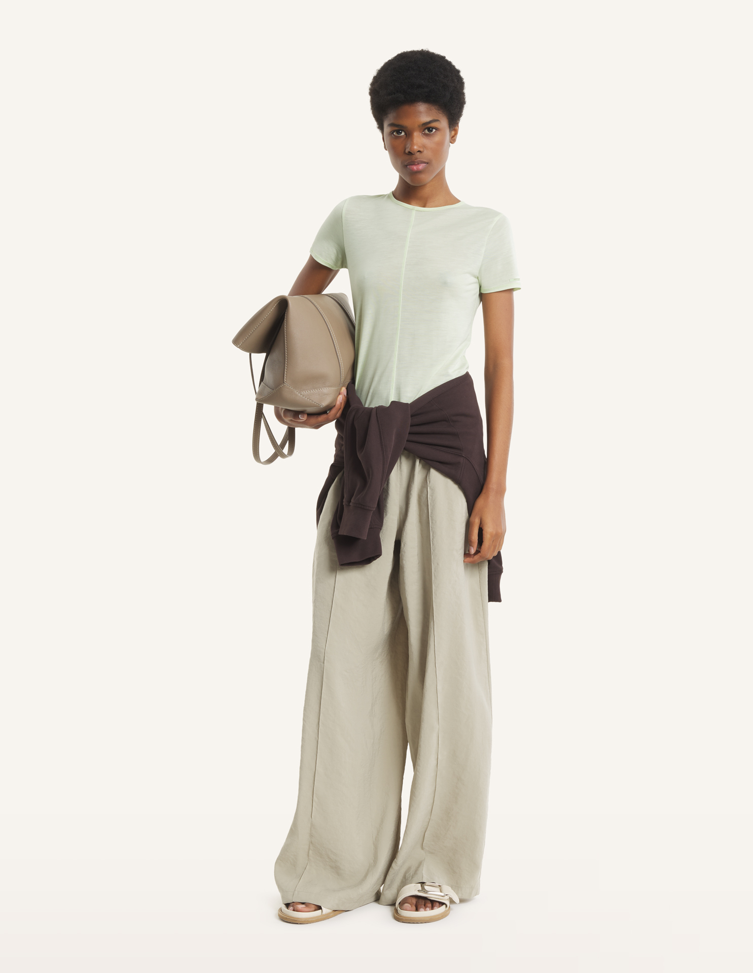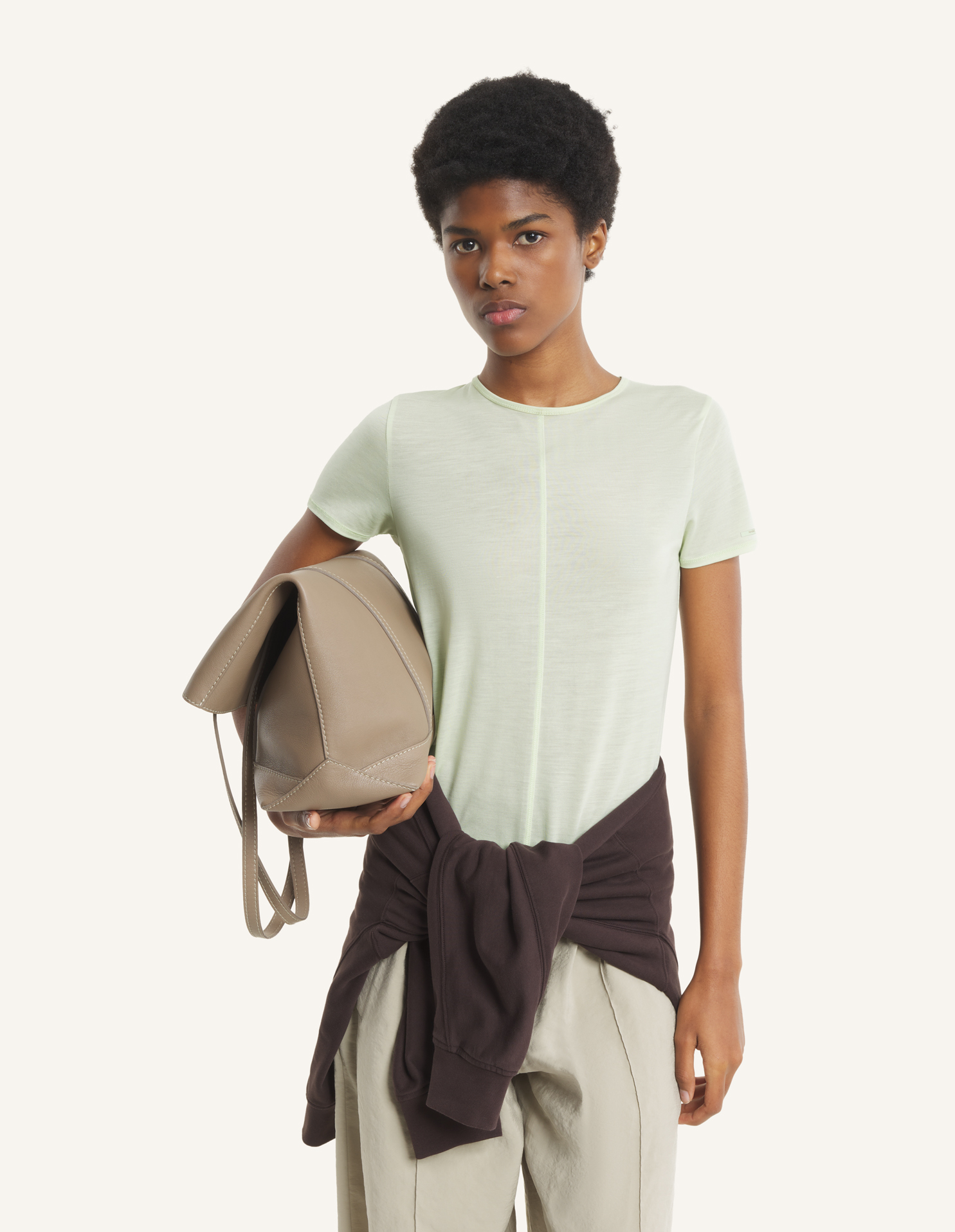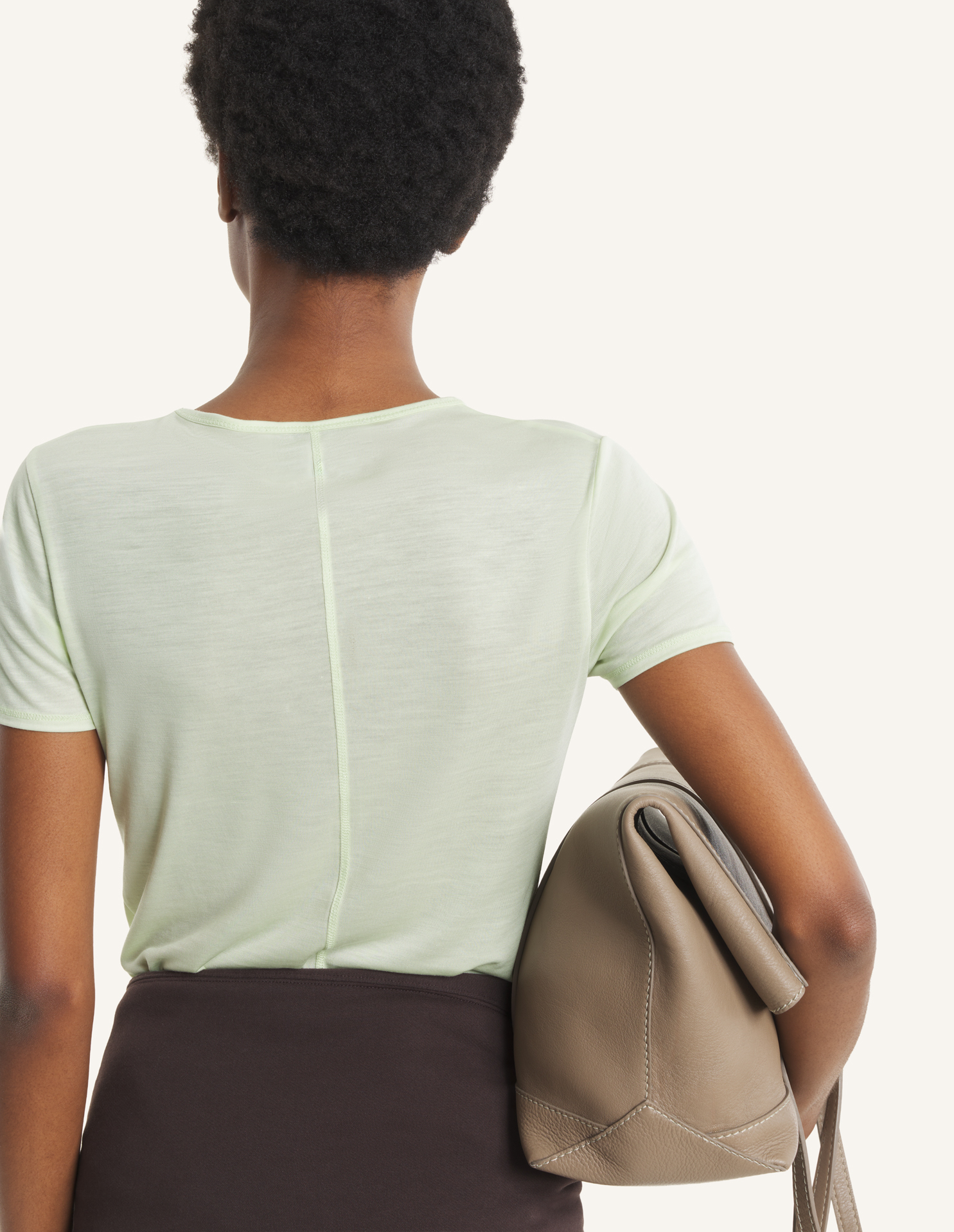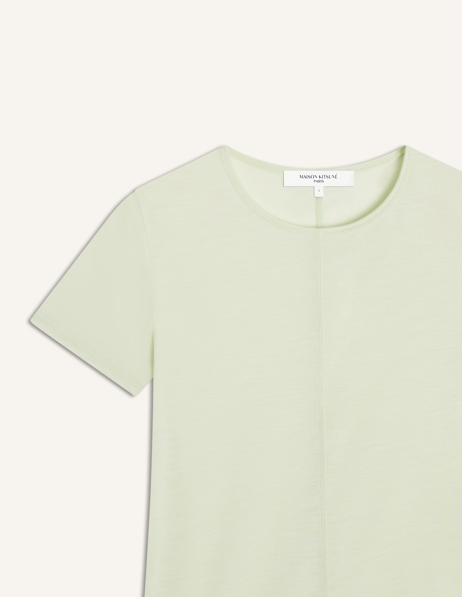 Short sleeve top in lyocell jersey. Fitted cut with Maison Kitsuné Paris woven label on the sleeve.