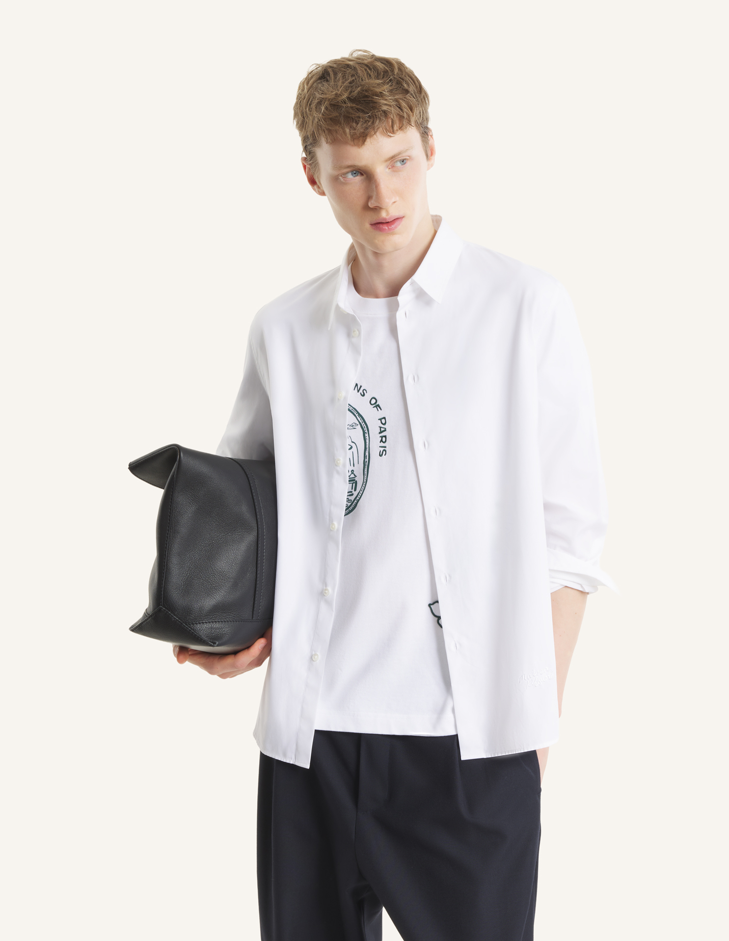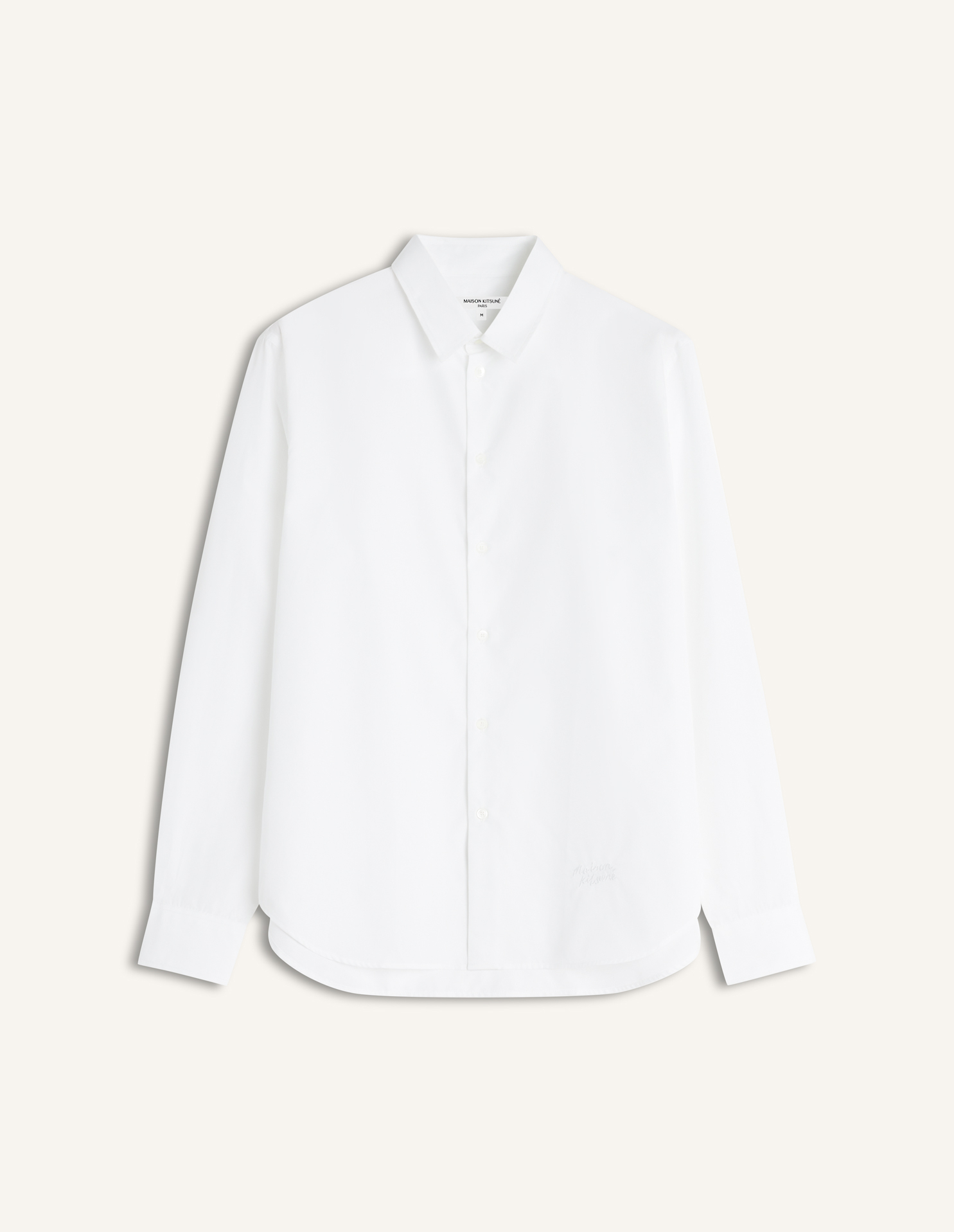 Casual shirt in cotton poplin. Maison Kitsuné Handwriting embroidery at the bottom left.