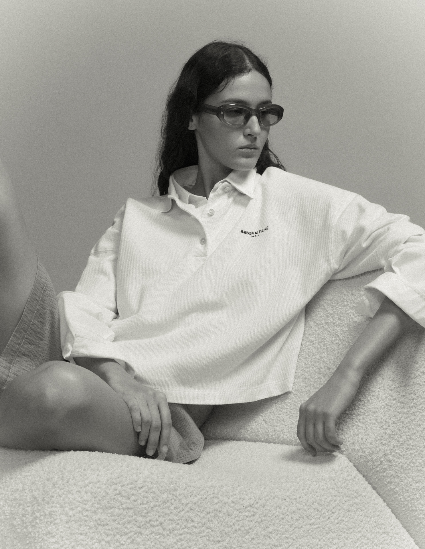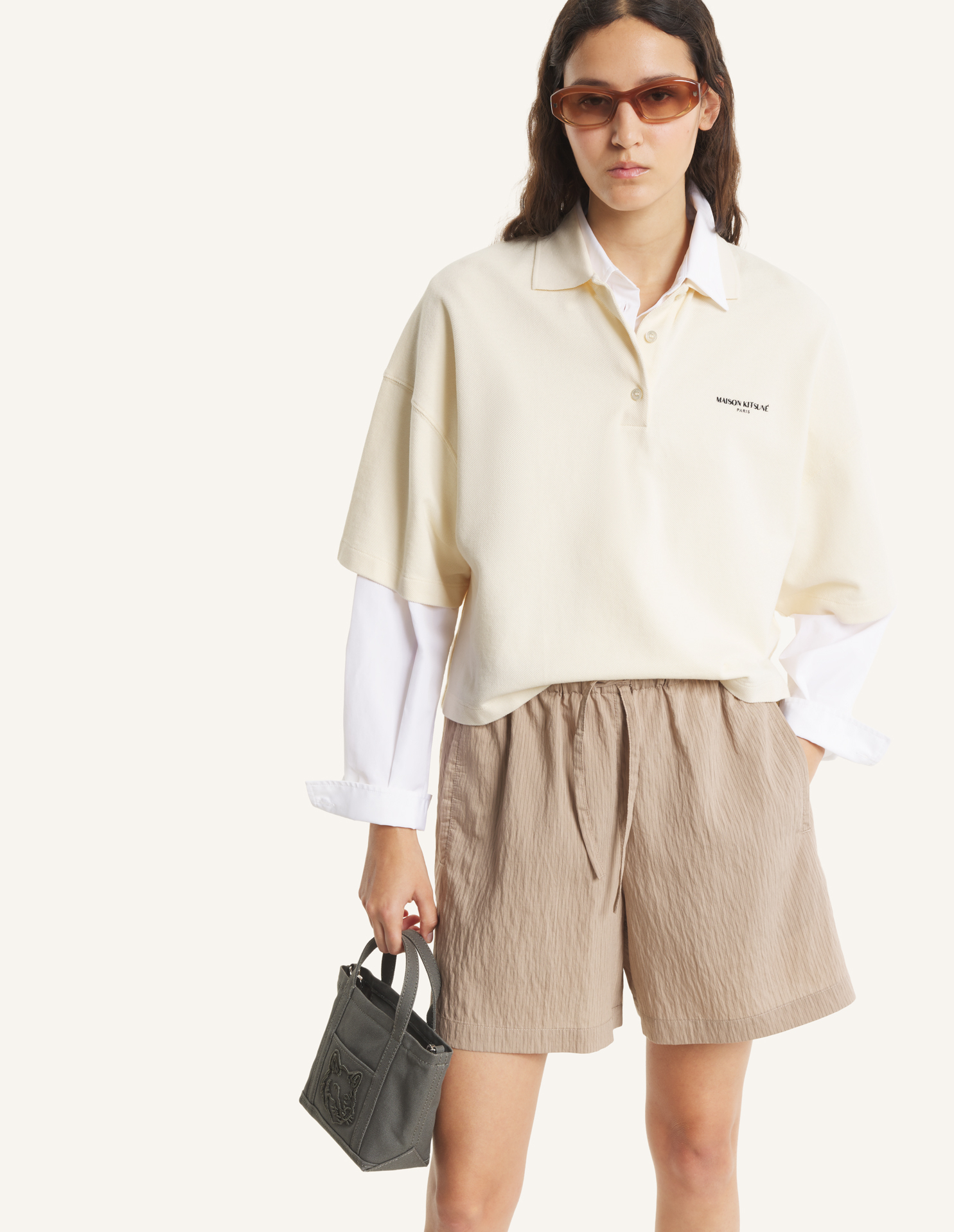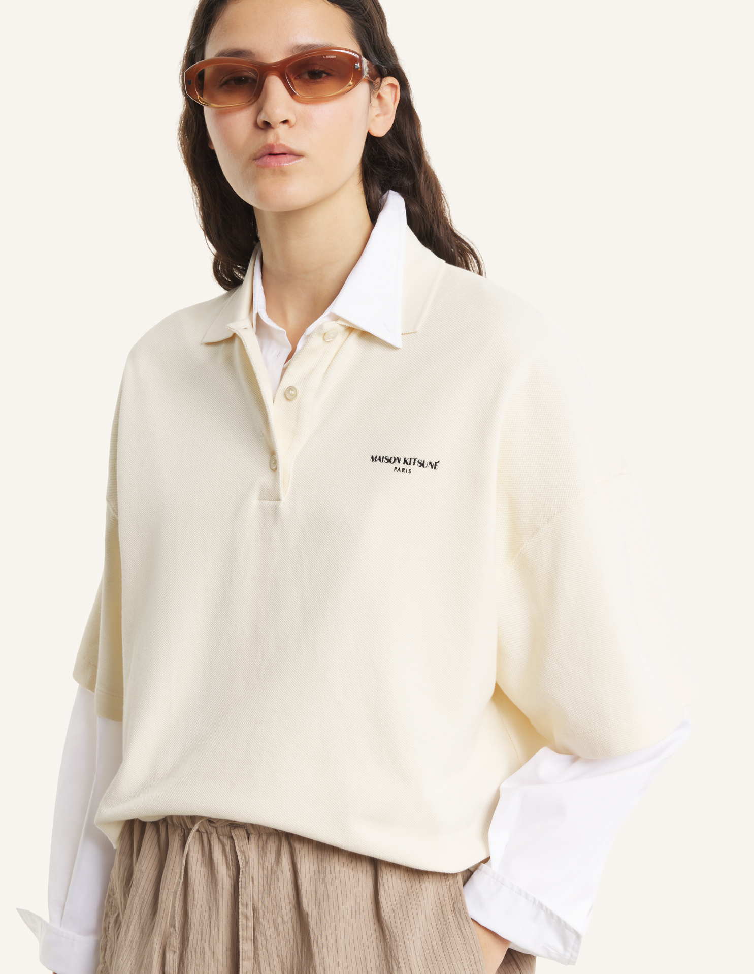 Oversize polo in soft cotton pique. Maison Kitsuné Paris embroidery on the chest.