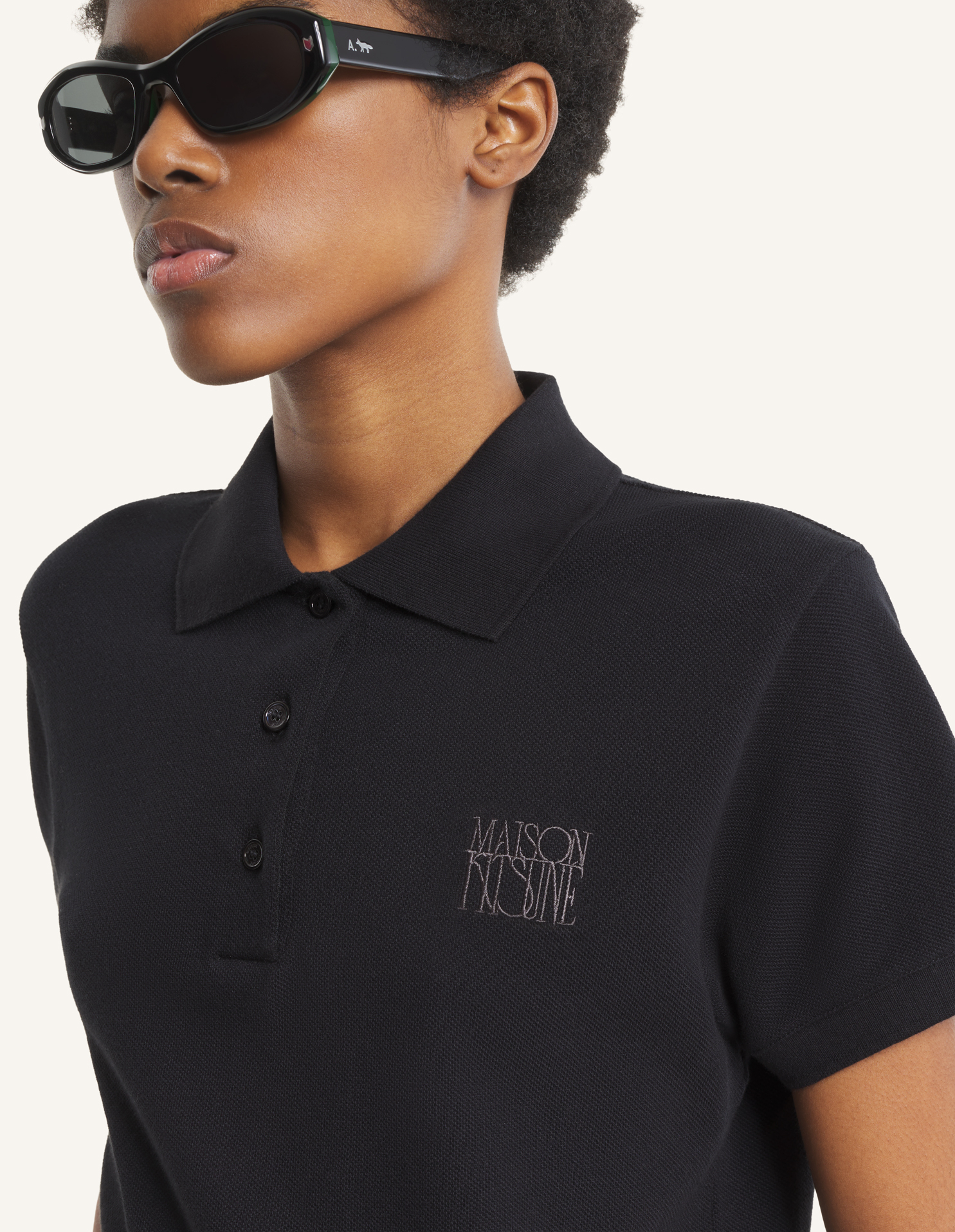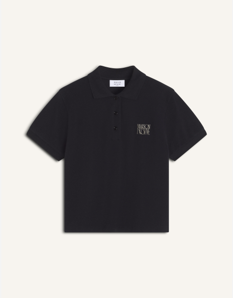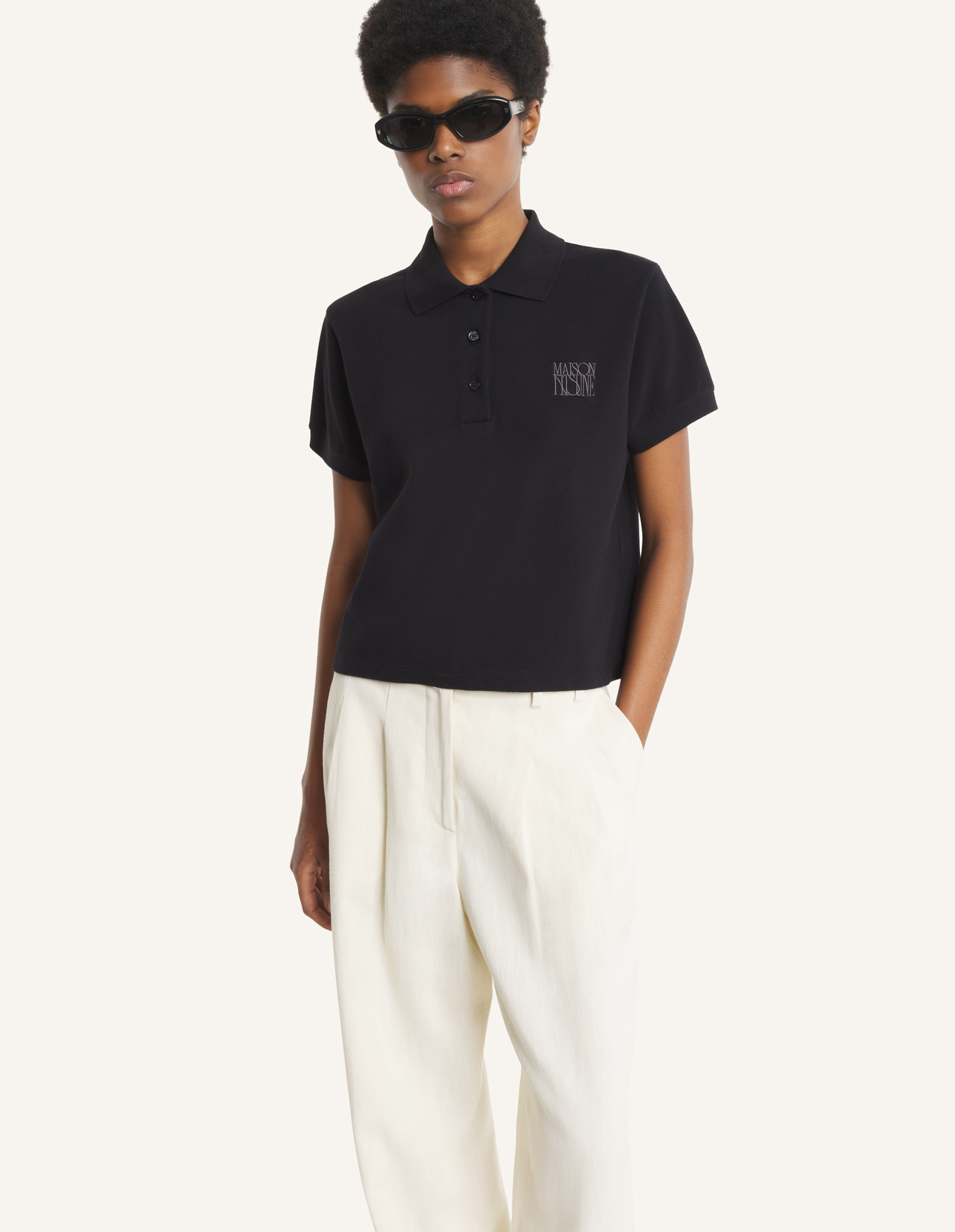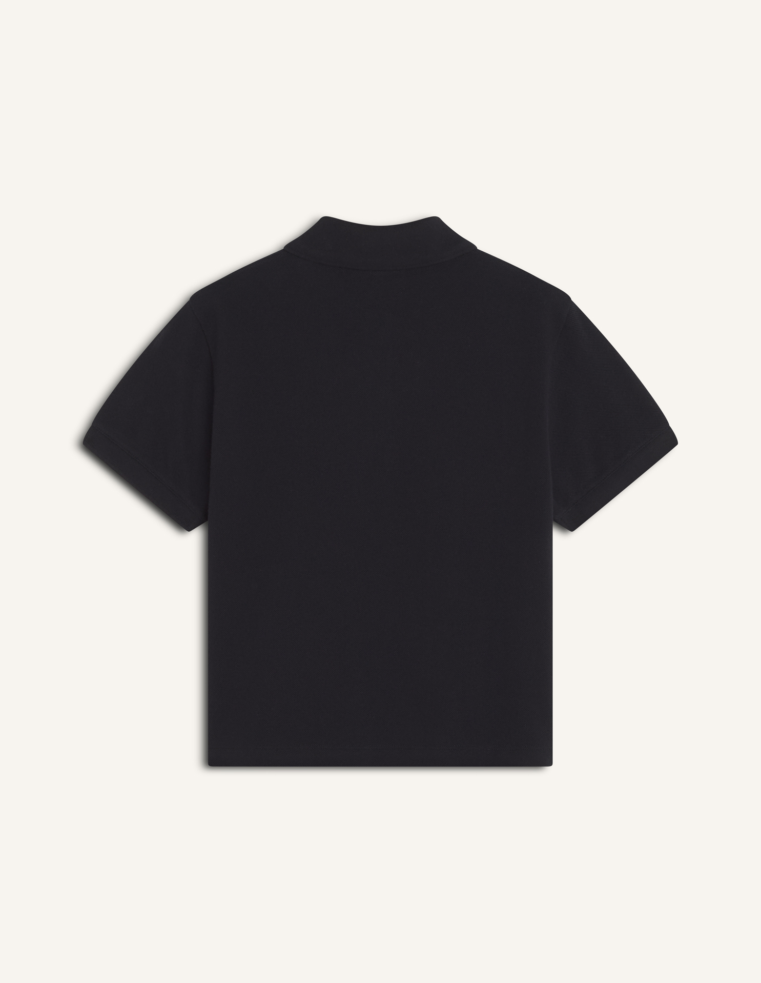 Cropped polo in soft cotton pique. Maison Kitsuné Stamp embroidery on the chest.