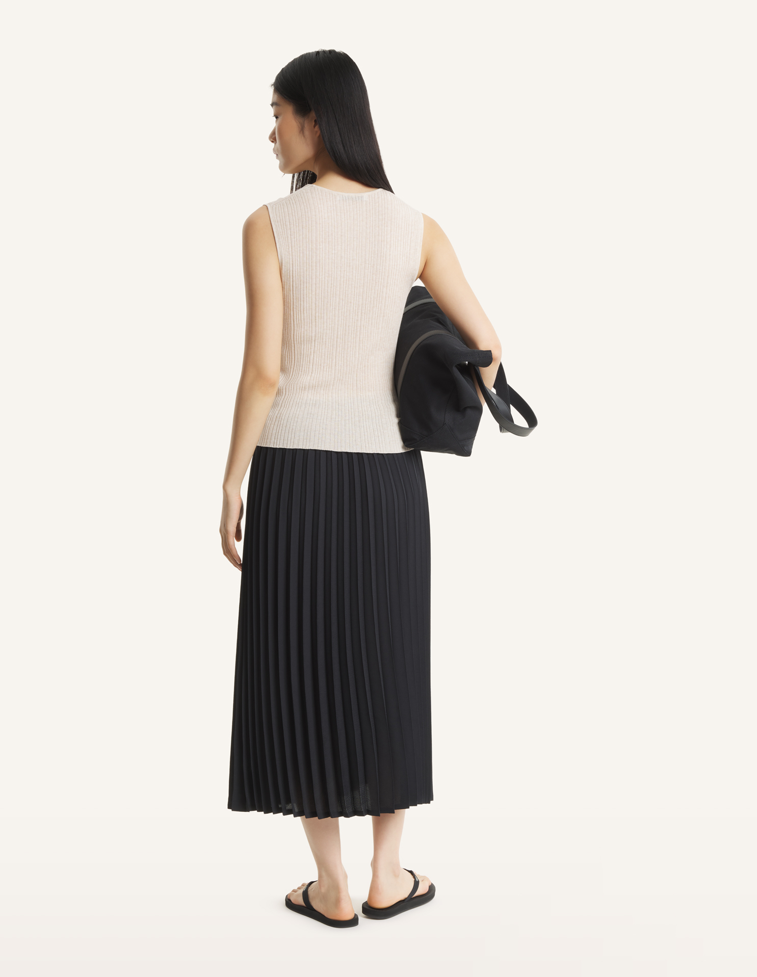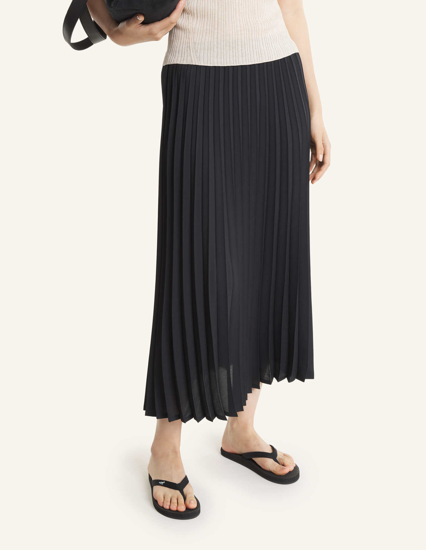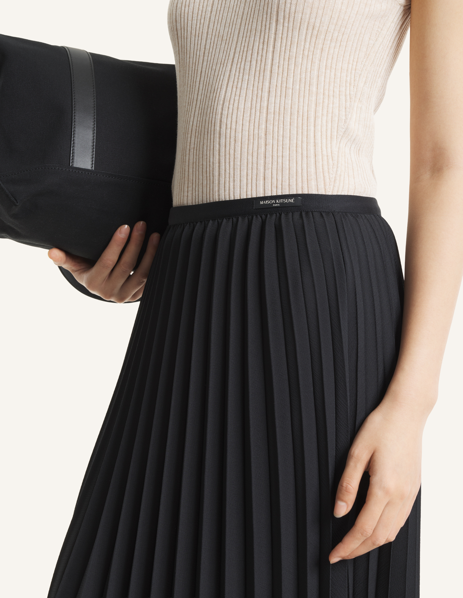 Midi pleated skirt in fluid crinkled mat satin. Maison Kitsuné Paris woven label on the waistband.