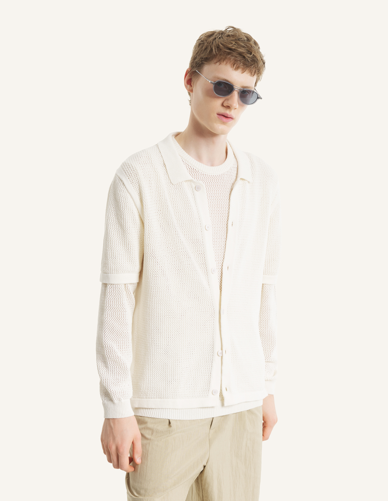 • Open knit cotton blend short sleeve cardigan