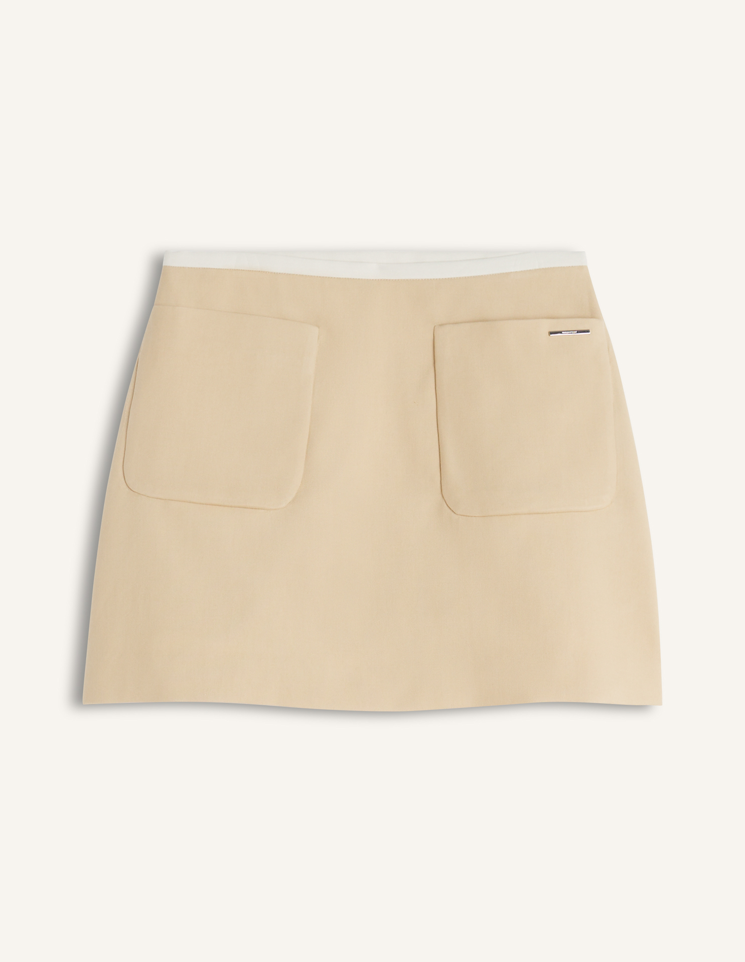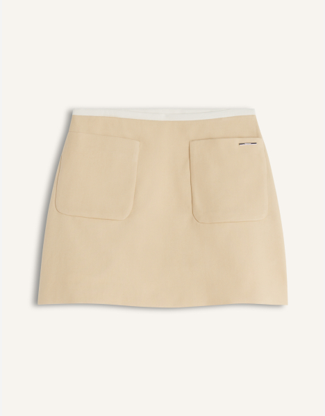 Patch pocket mini skirt in double face cotton twill. Maison Kitsuné Paris engraved metal rivet at the front.