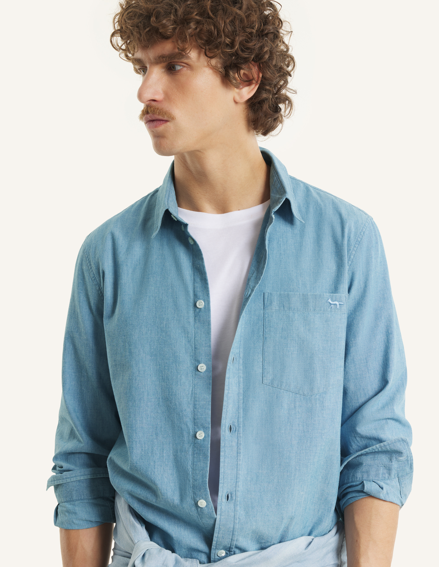 Chambray shirt in a regular fit. Profile Fox embroidery on the chest pocket.