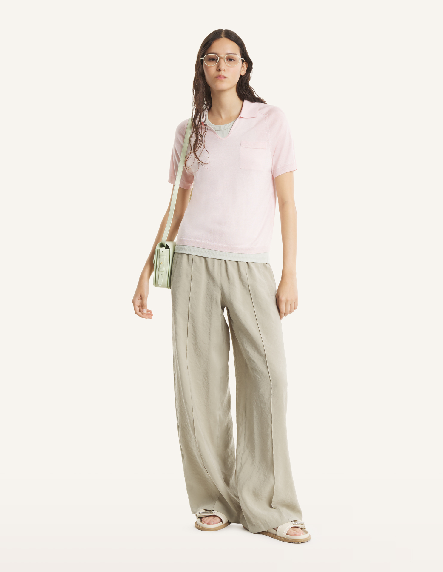 • Polo in shiny silk and Tencel blend for extra softness and a beautiful drape