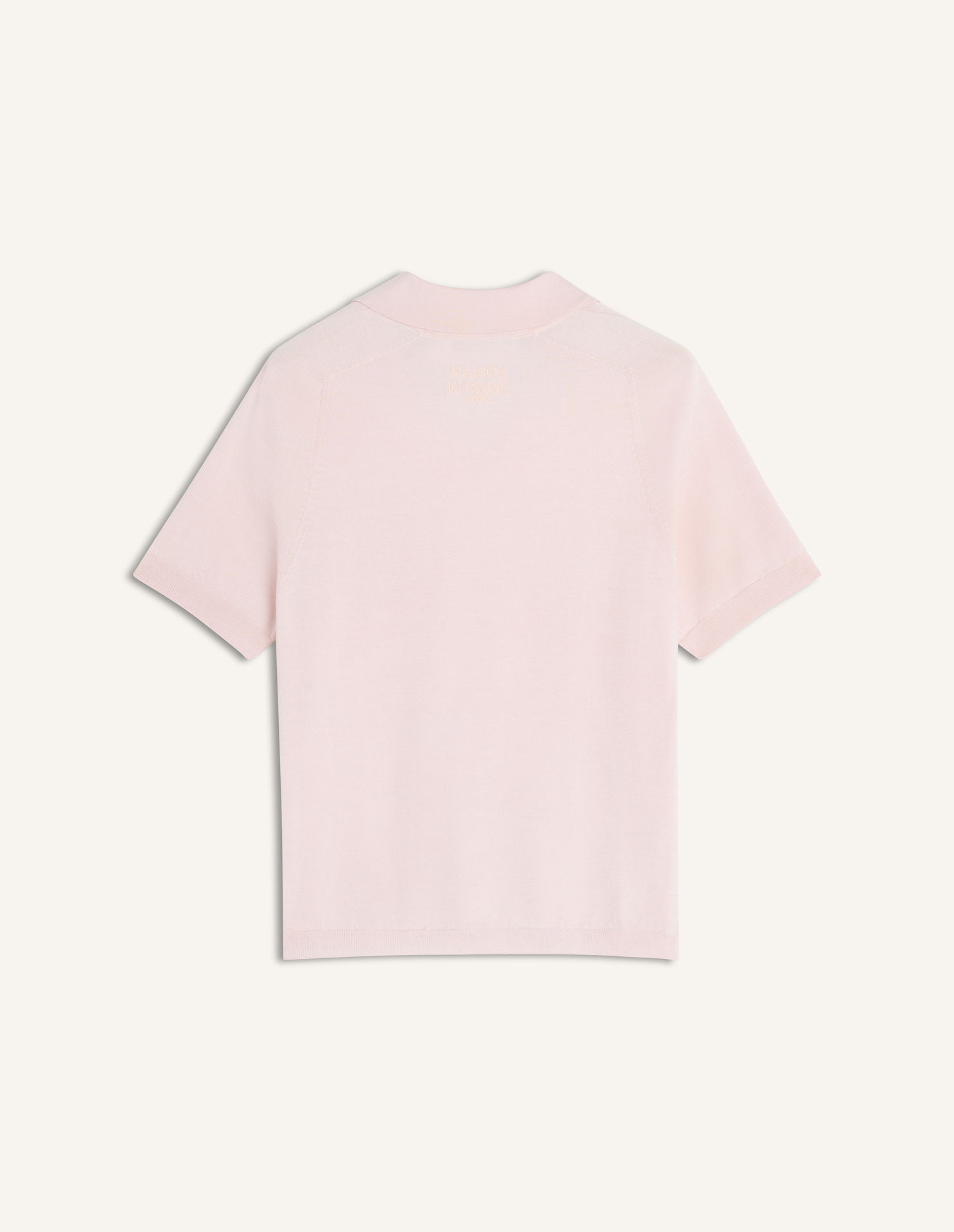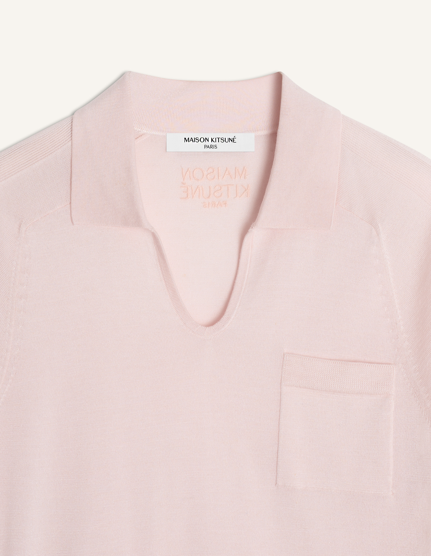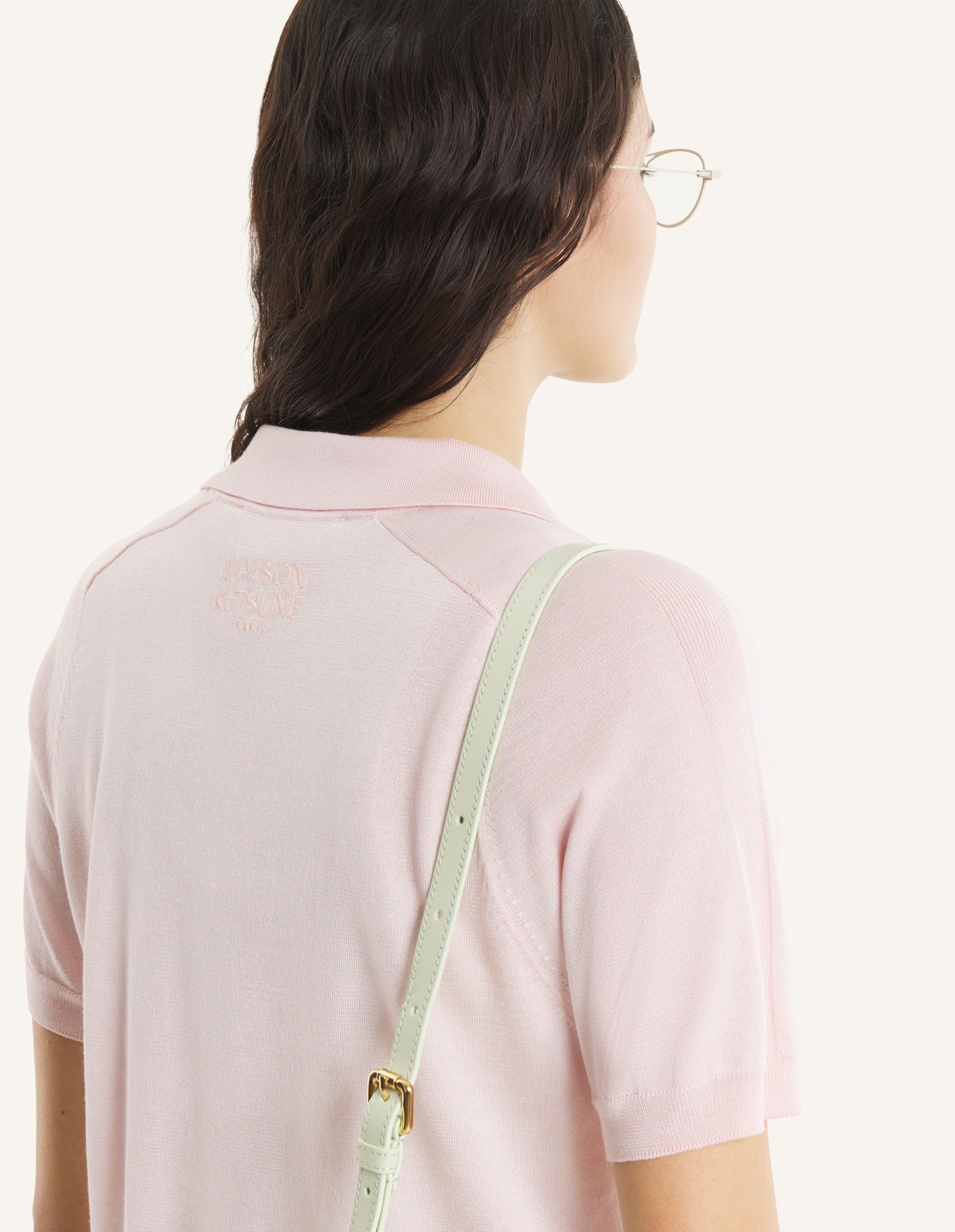 Fitted polo in shiny silk blend. Maison Kitsuné Paris embroidery.