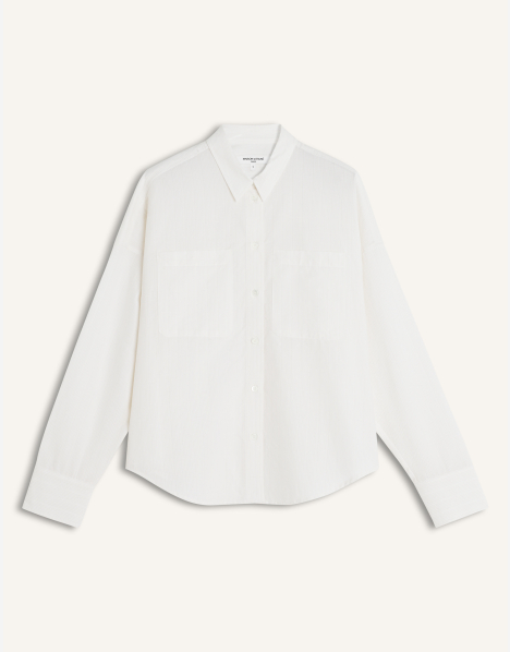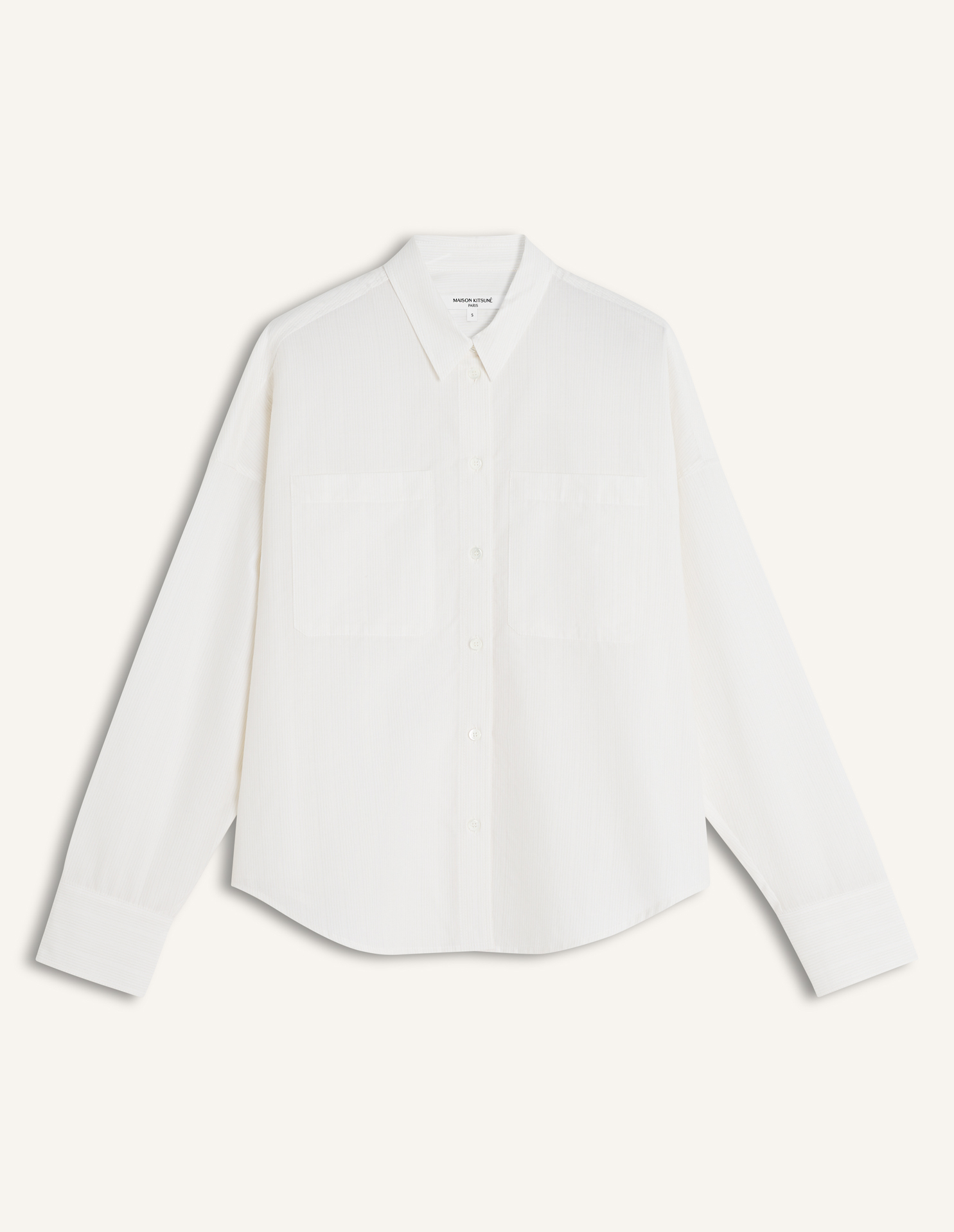 Textured stripe shirt with double pockets in cotton poplin. Maison Kitsuné Handwriting embroidery on the cuff.