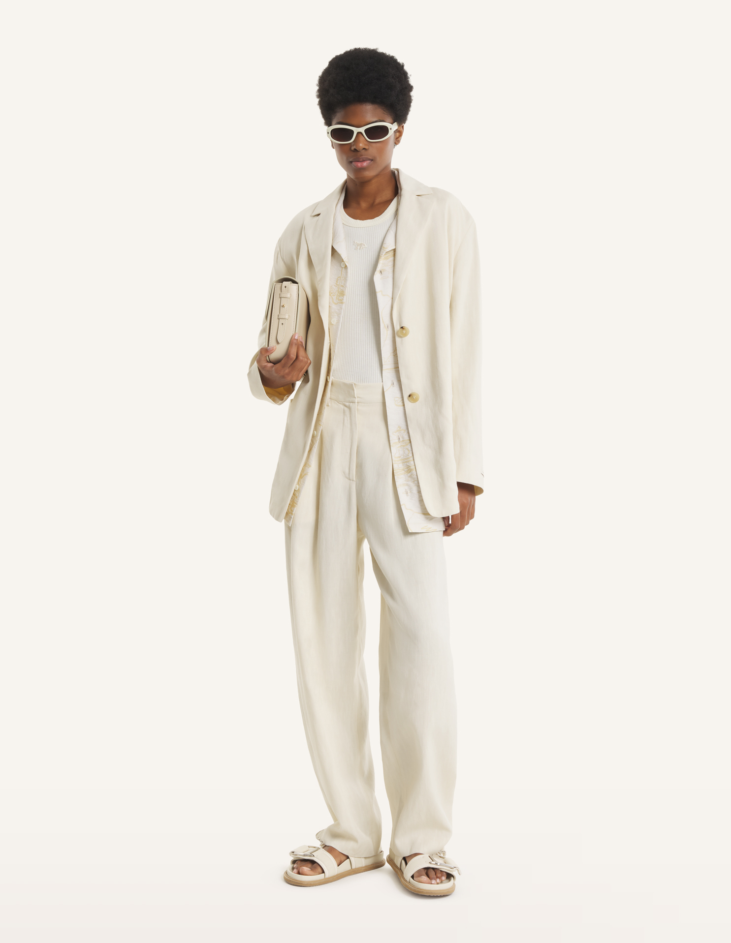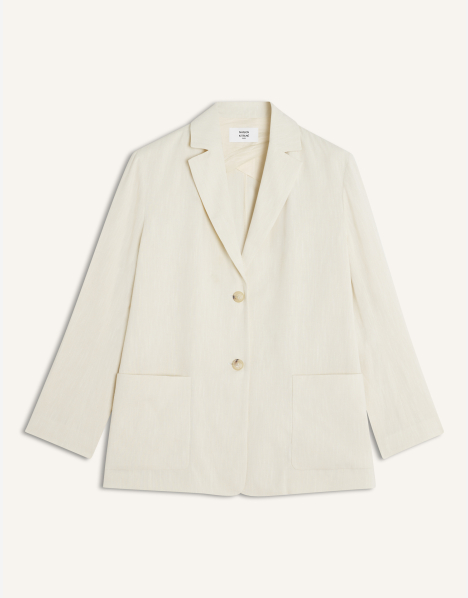 • Tailored jacket in textured linen blend for a breathable, summer feel