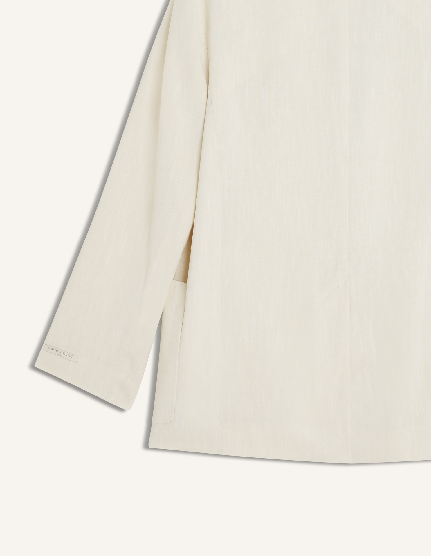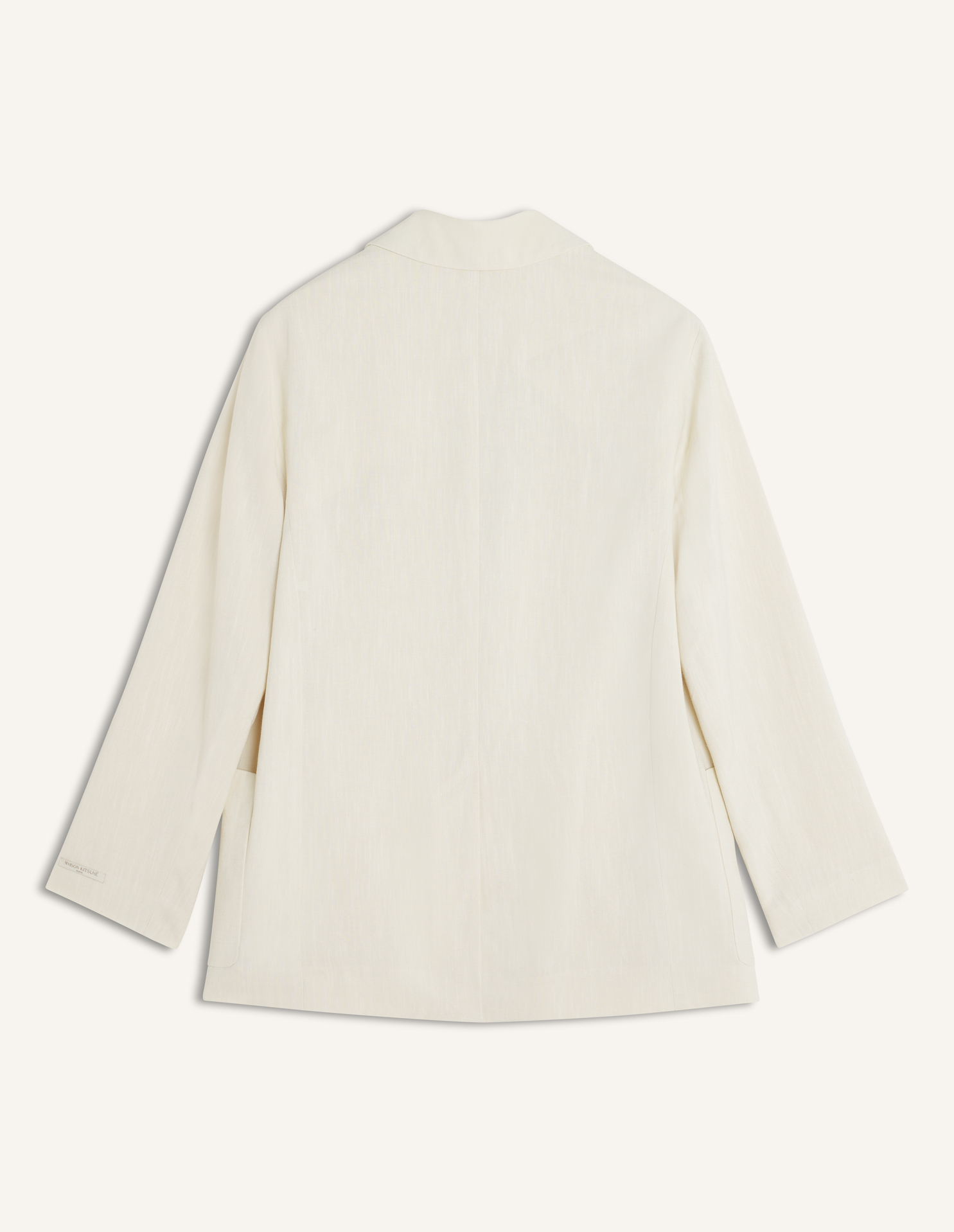 Tailored jacket in textured linen blend. Maison Kitsuné Paris woven label at the sleeve.