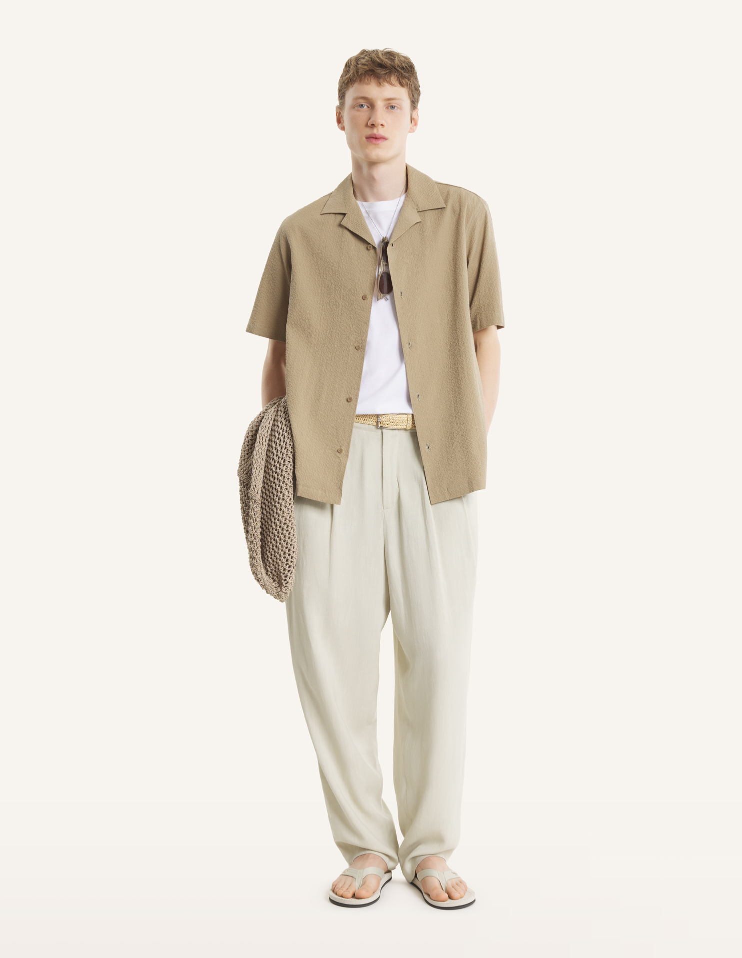 Linen reveals the full richness of natural and authentic craftsmanship. At Maison Kitsuné, we select this fiber with the greatest care in order to combine lightness, elegance, and durability. A living, textured material, linen requires special attention to preserve its freshness, structure, and radiance.