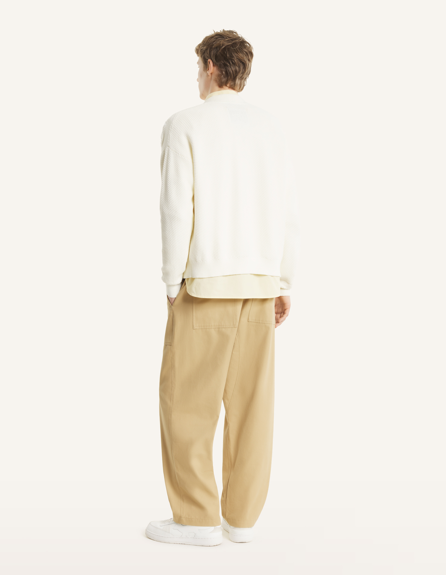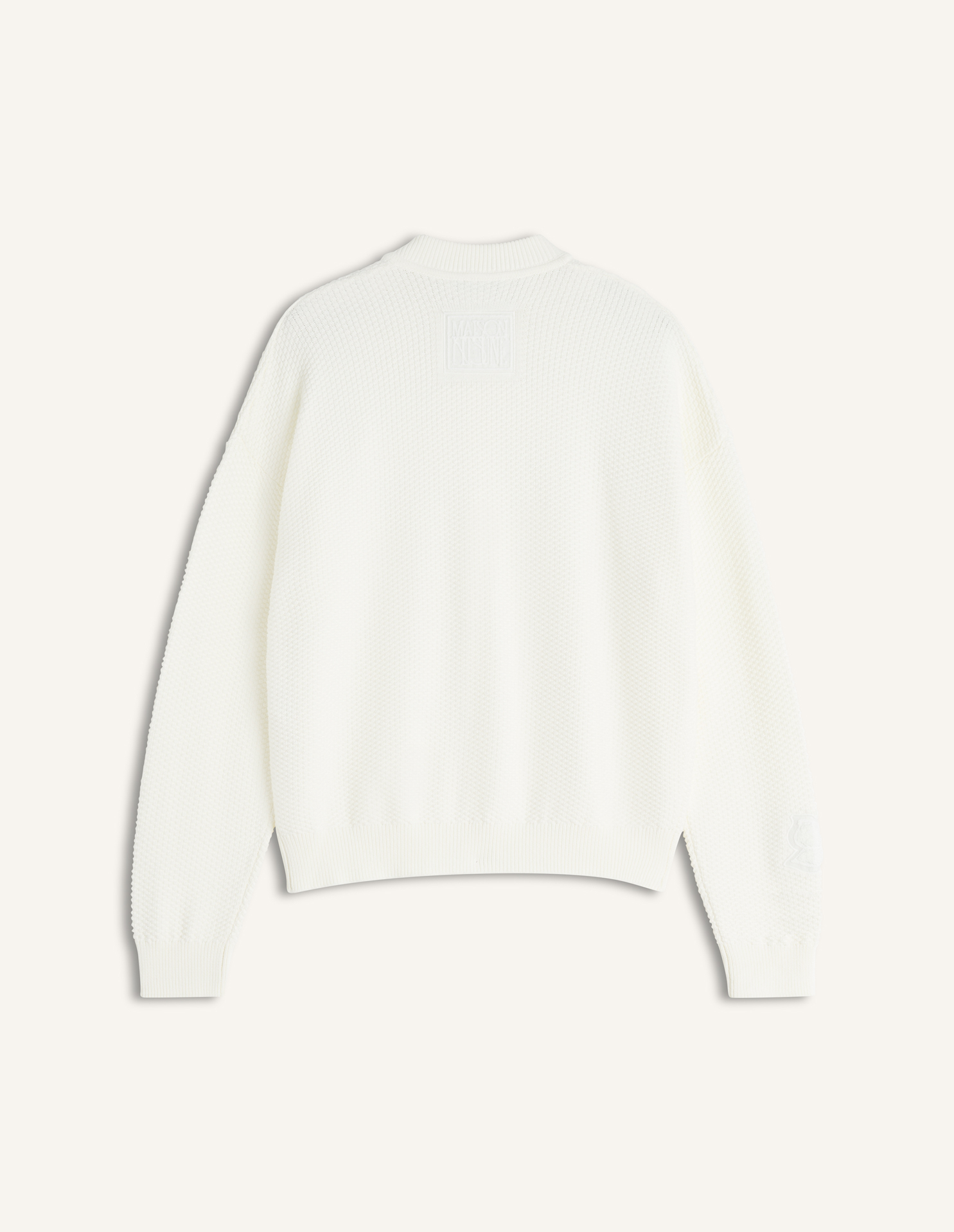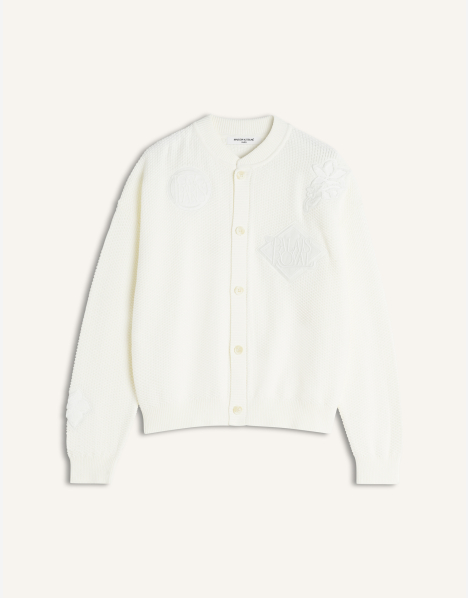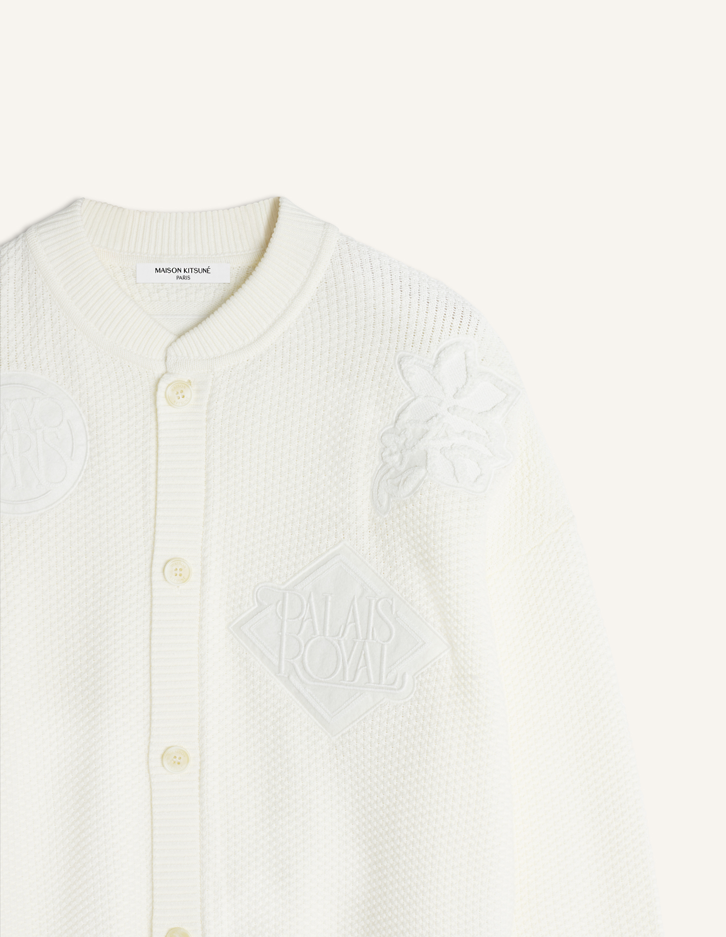 Knitted blouson in embroidered cotton. Comfort fit with Art Nouveau Stamps patch and direct embroideries.