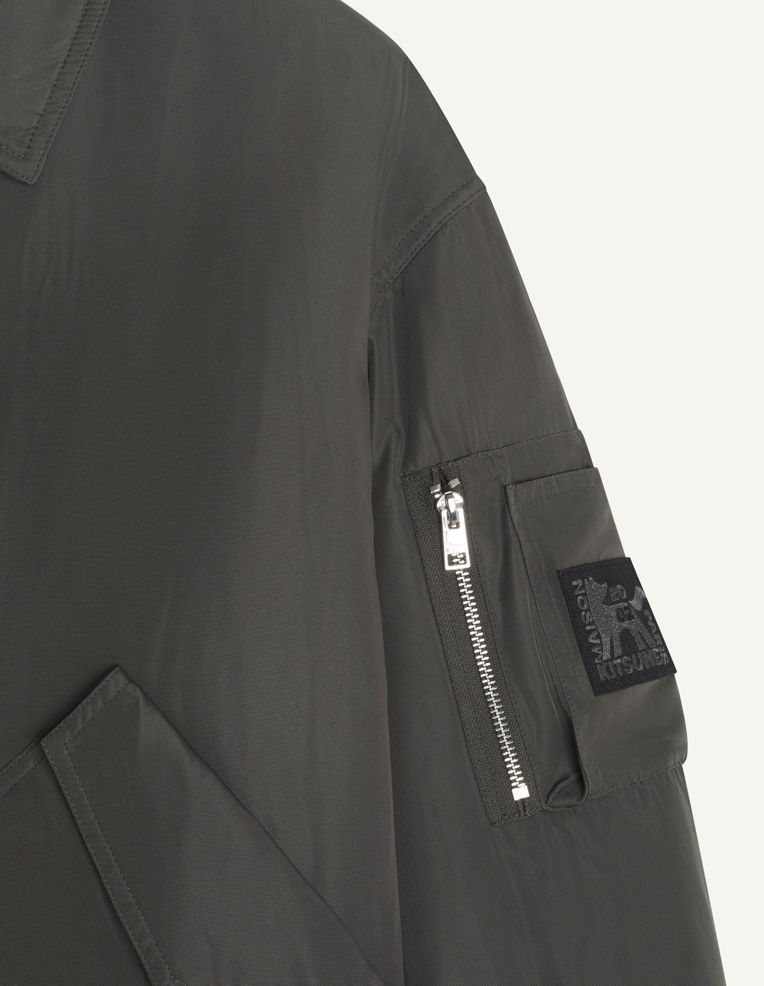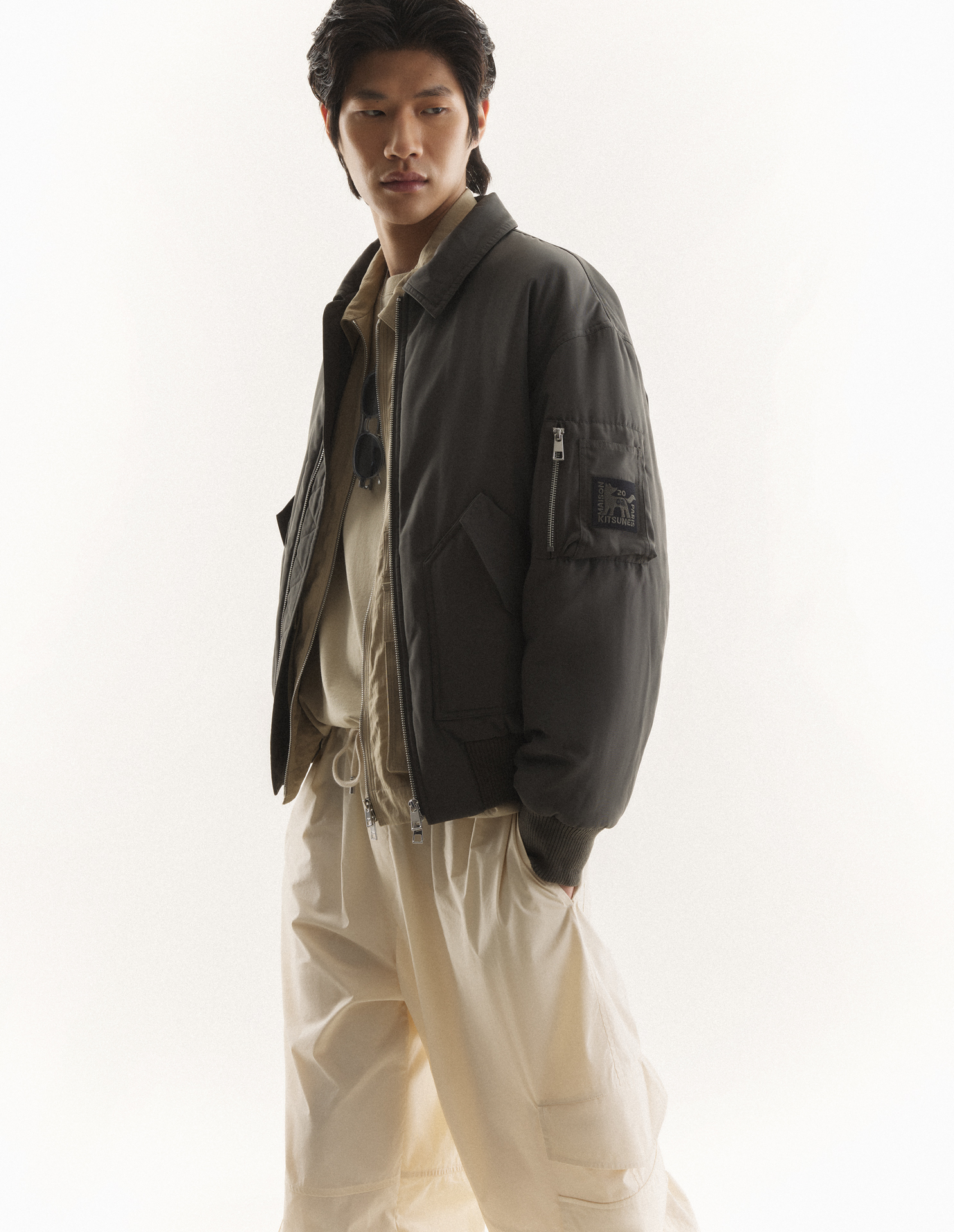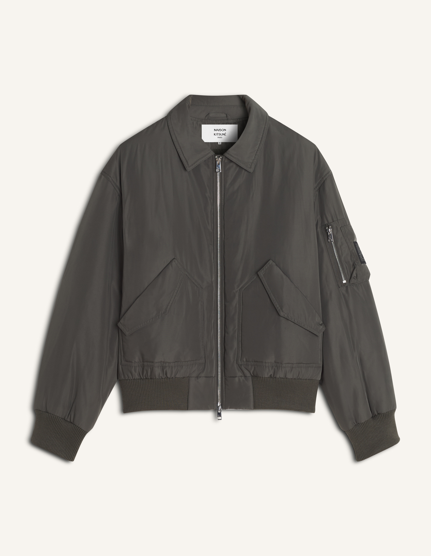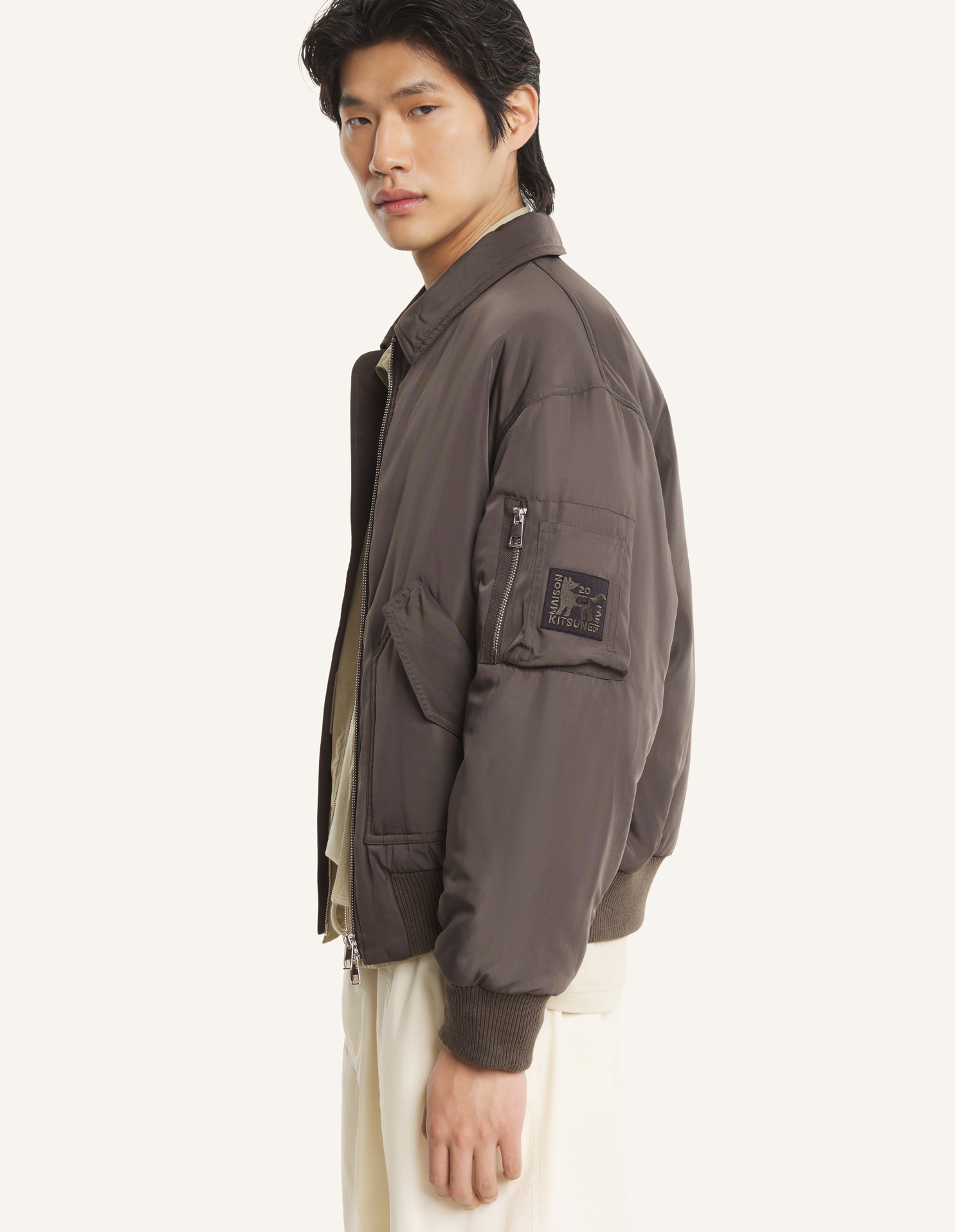 ライトキャンバス素材のボンバージャケット。コンフォートフィットで、袖にギャラリーフォックスの織りタグが施されています。
