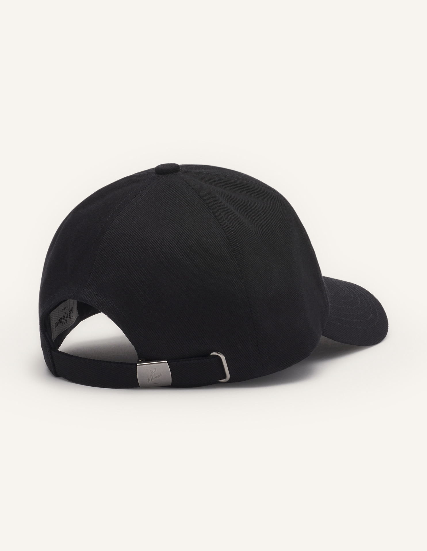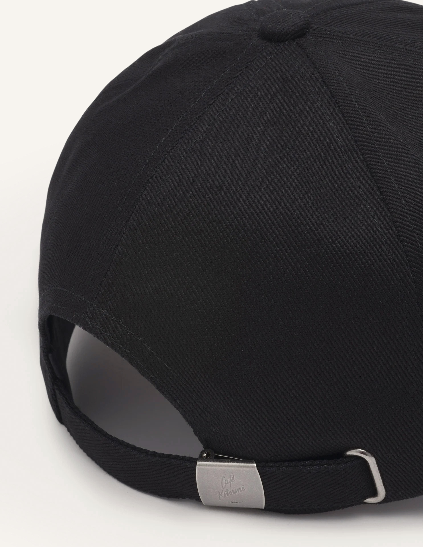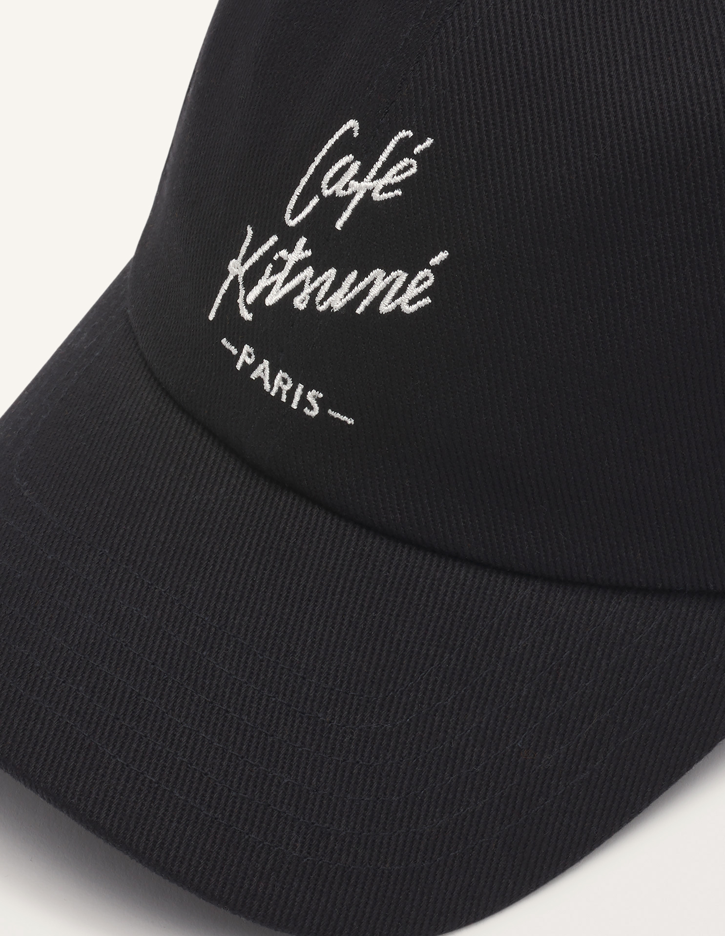 Café Kitsuné collectionのコットンツイルベースボールキャップ。フロントに「Café Kitsuné Paris」の刺繍が施されています。