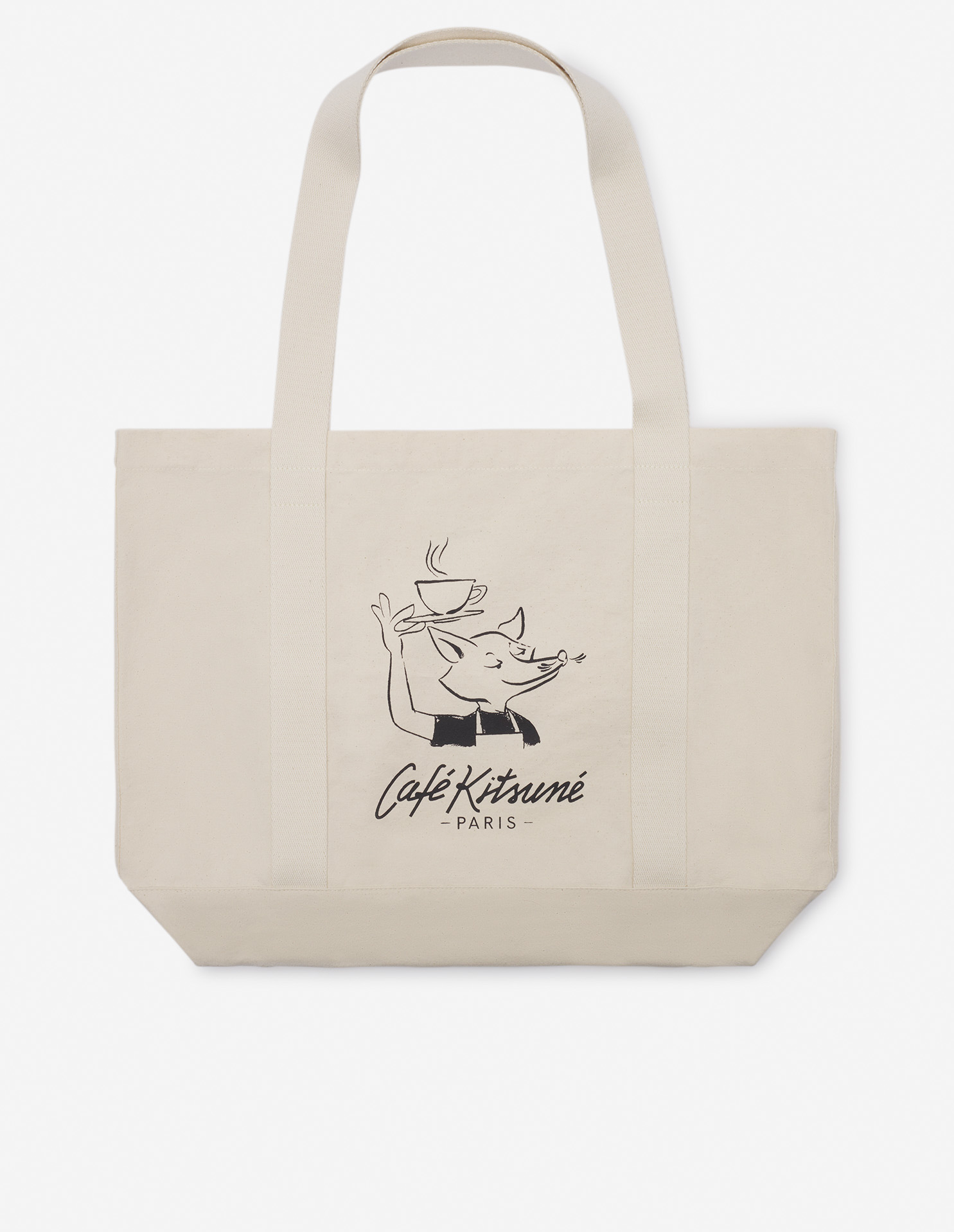 • -コットンキャンバストートバッグ -手提げ用ハンドル -内ポケット -内側のラベルに「Café Kitsuné Paris」 -フロントにバリスタフォックスのプリント -カフェキツネコレクション -48 x 36cm