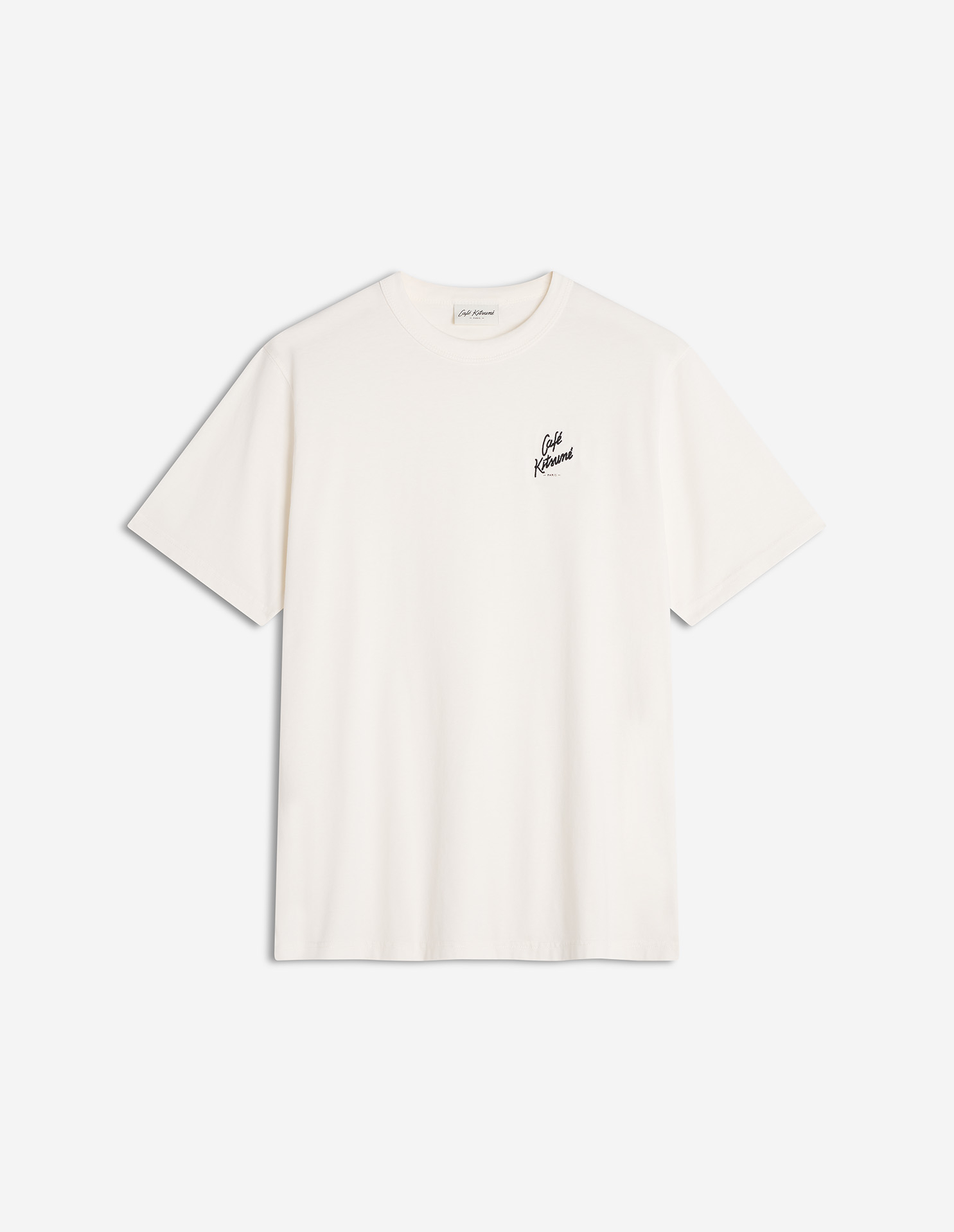 コットンジャージー半袖Tシャツ。リラックスフィットで、胸元に「Café Kitsuné」のハンドライティングロゴ刺繍が施されています。