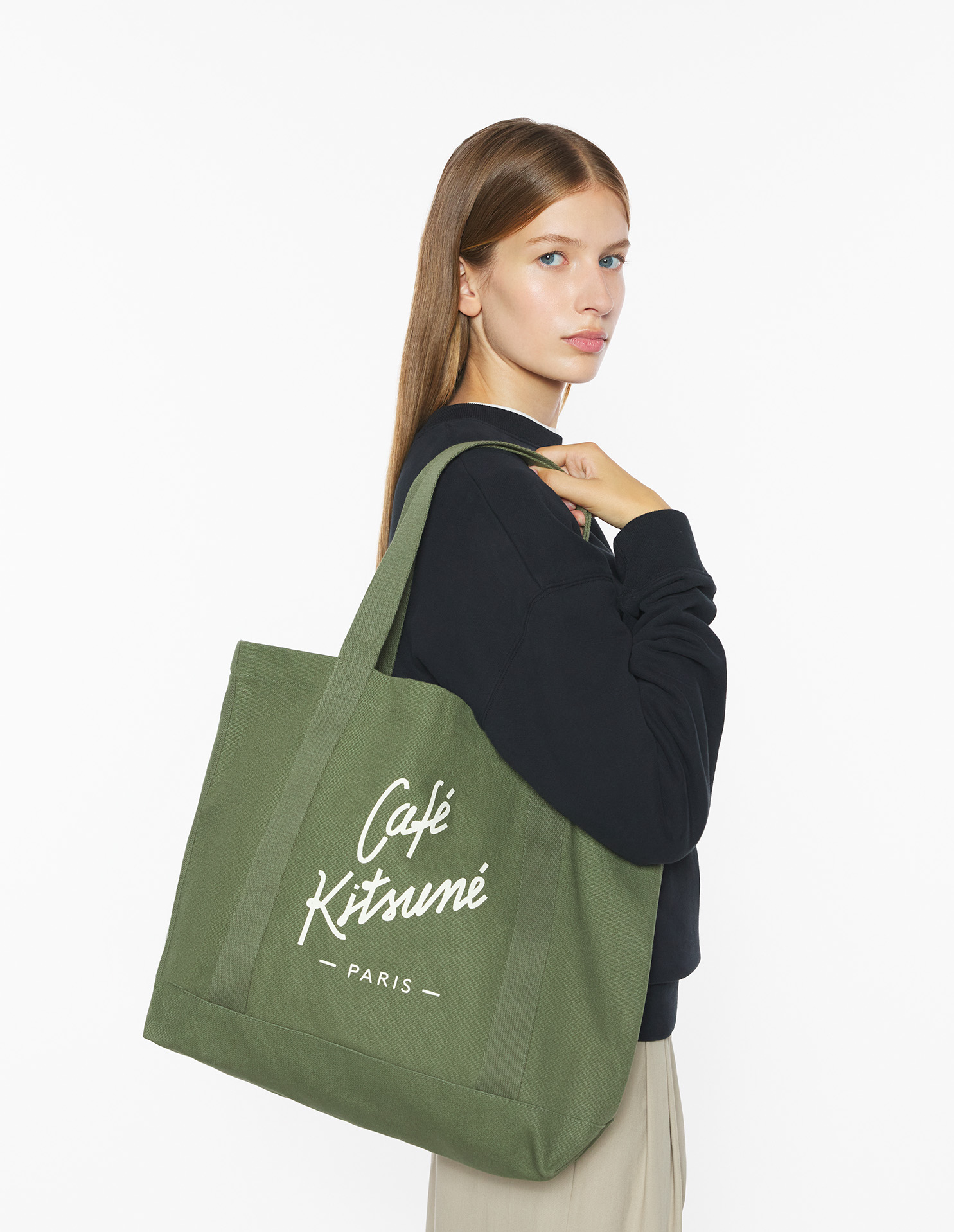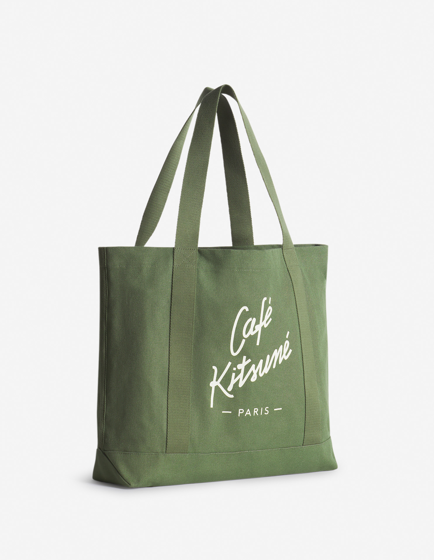 コットンキャンバス製トートバッグ。フロントにコントラストカラーで「Café Kitsuné」のロゴプリントが施されています。
