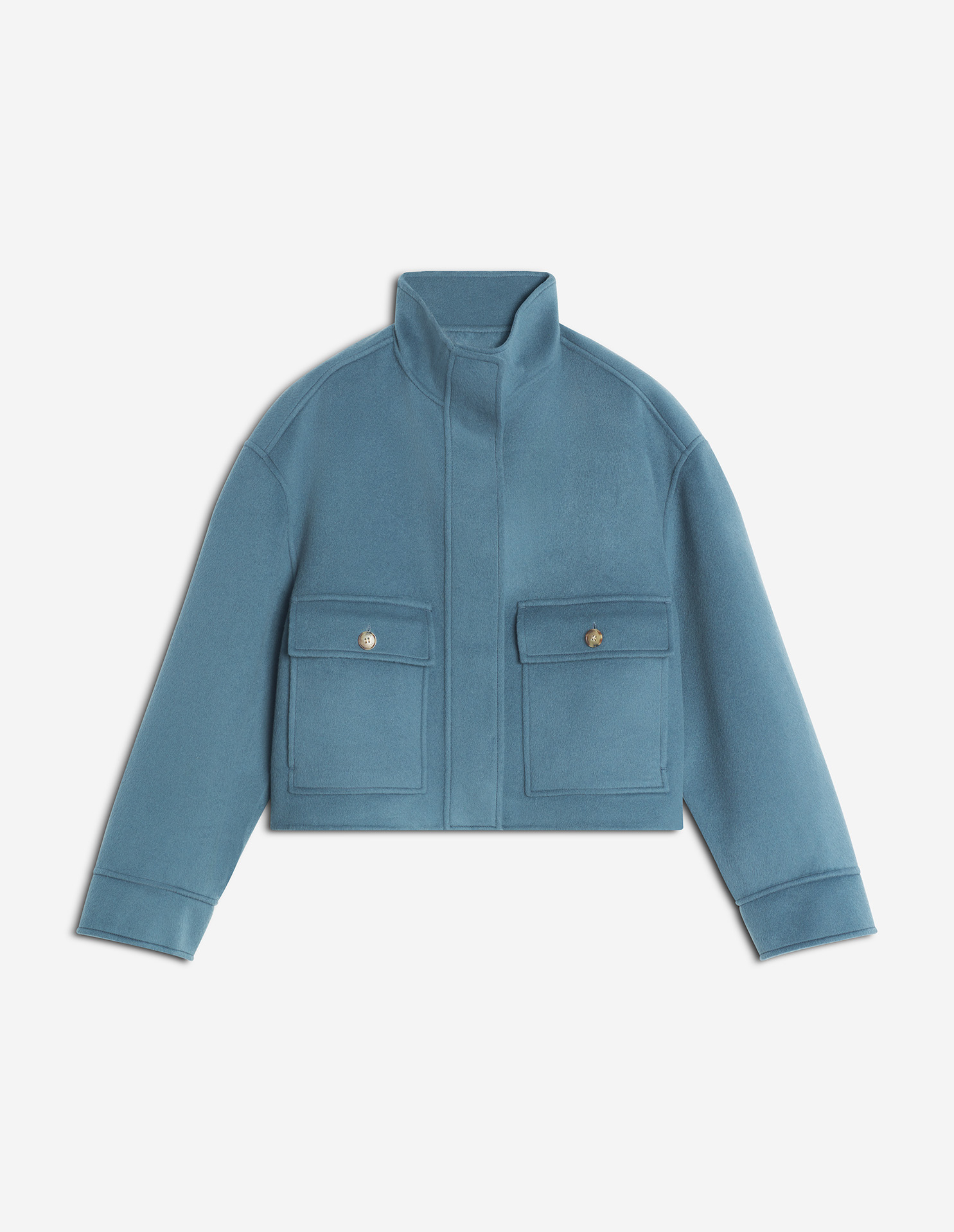 • ダブルフェイスウールメルトン仕立てのクロップドジャケット