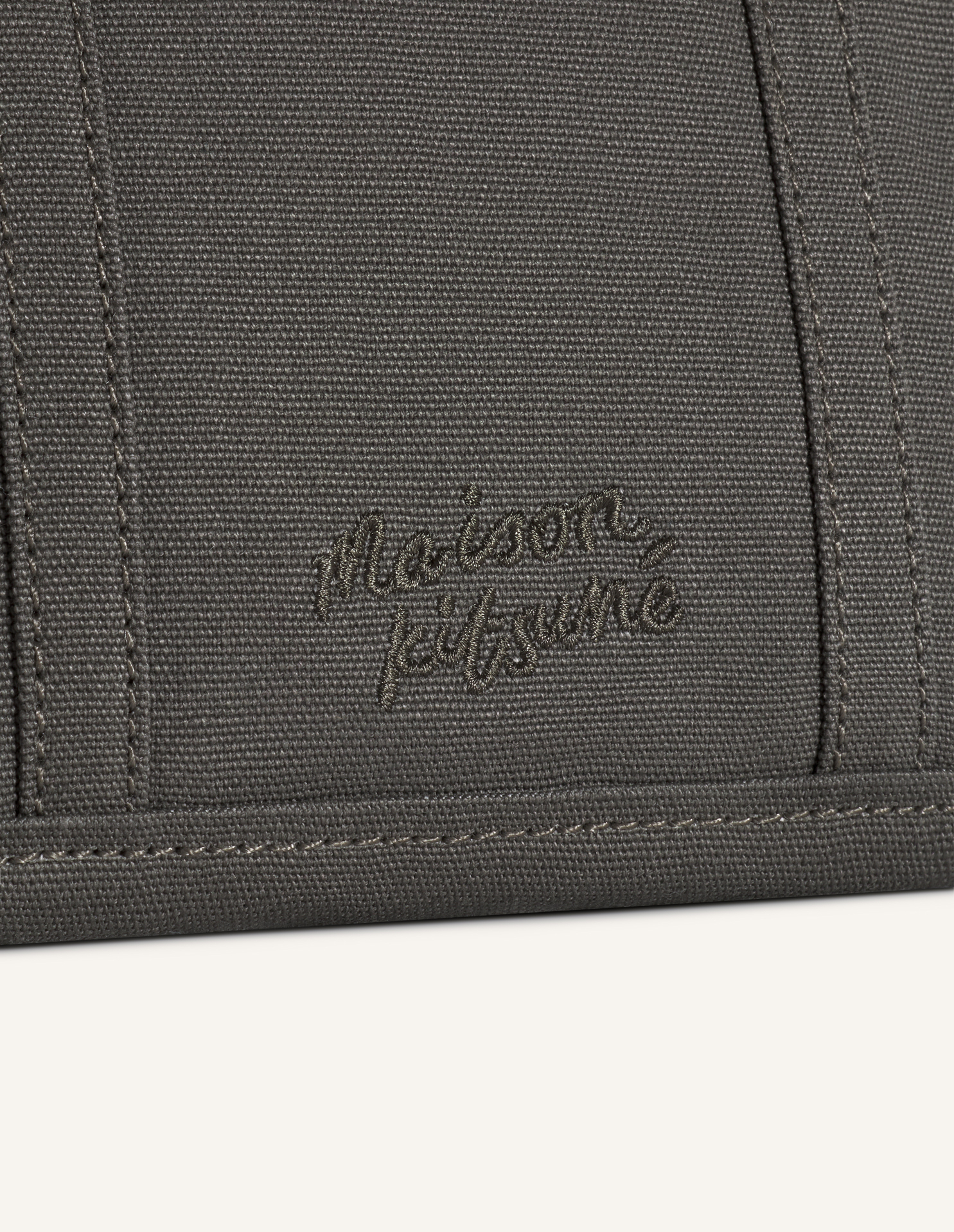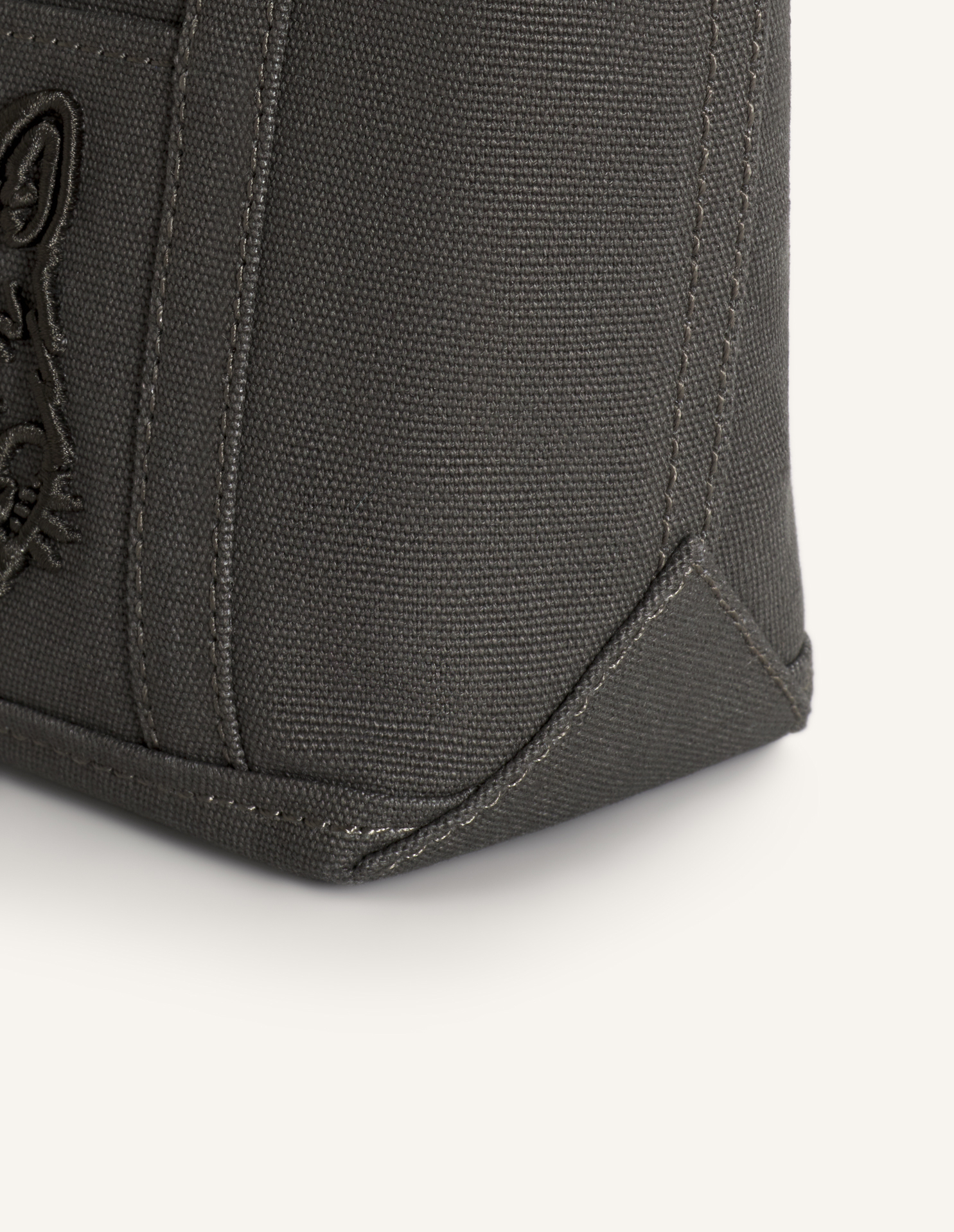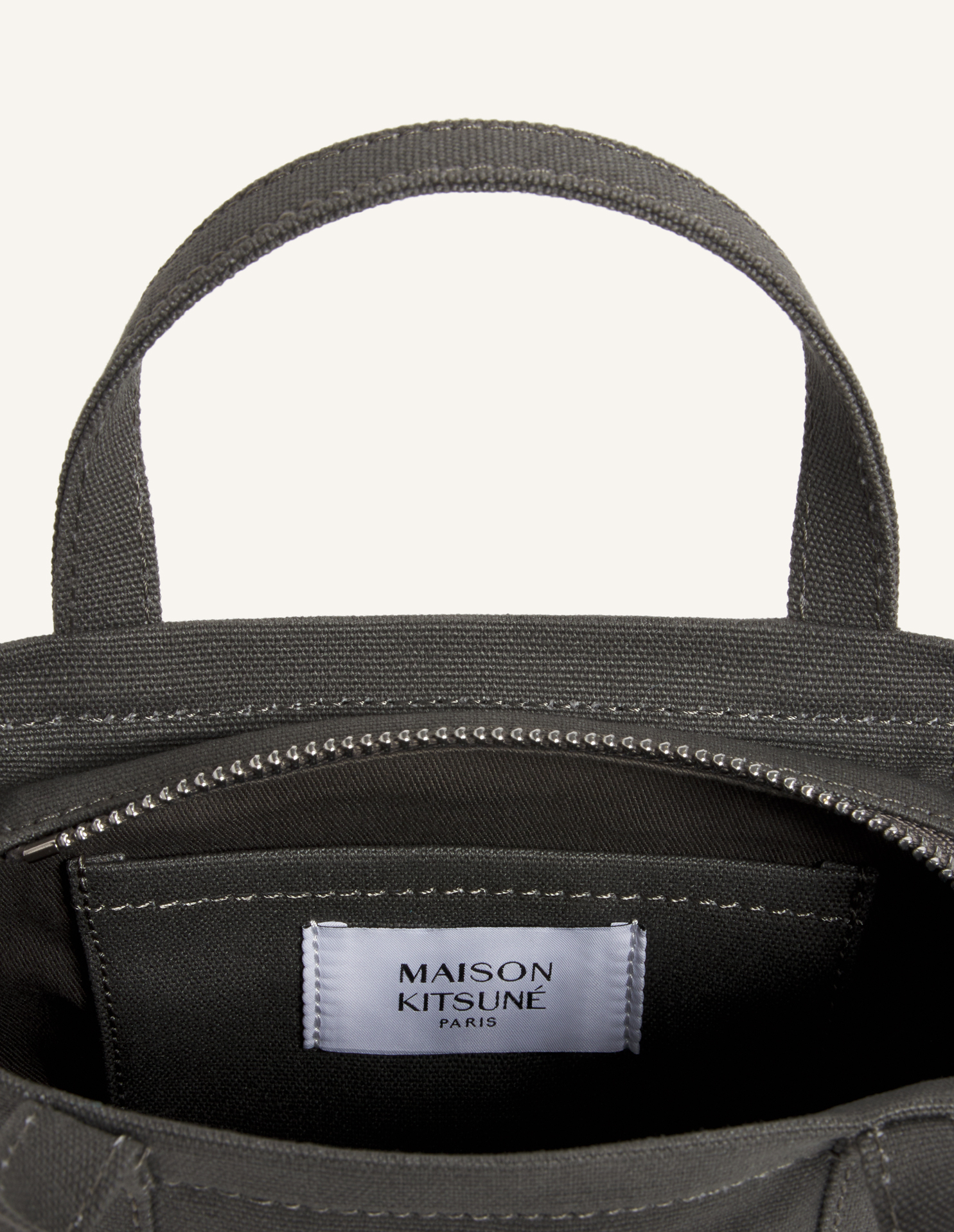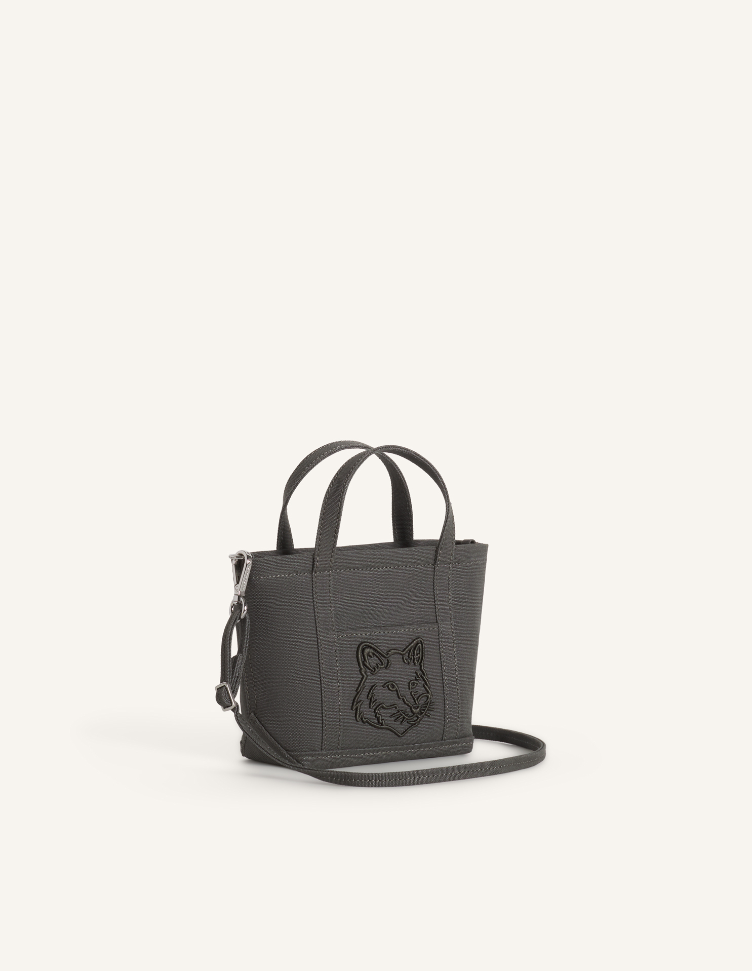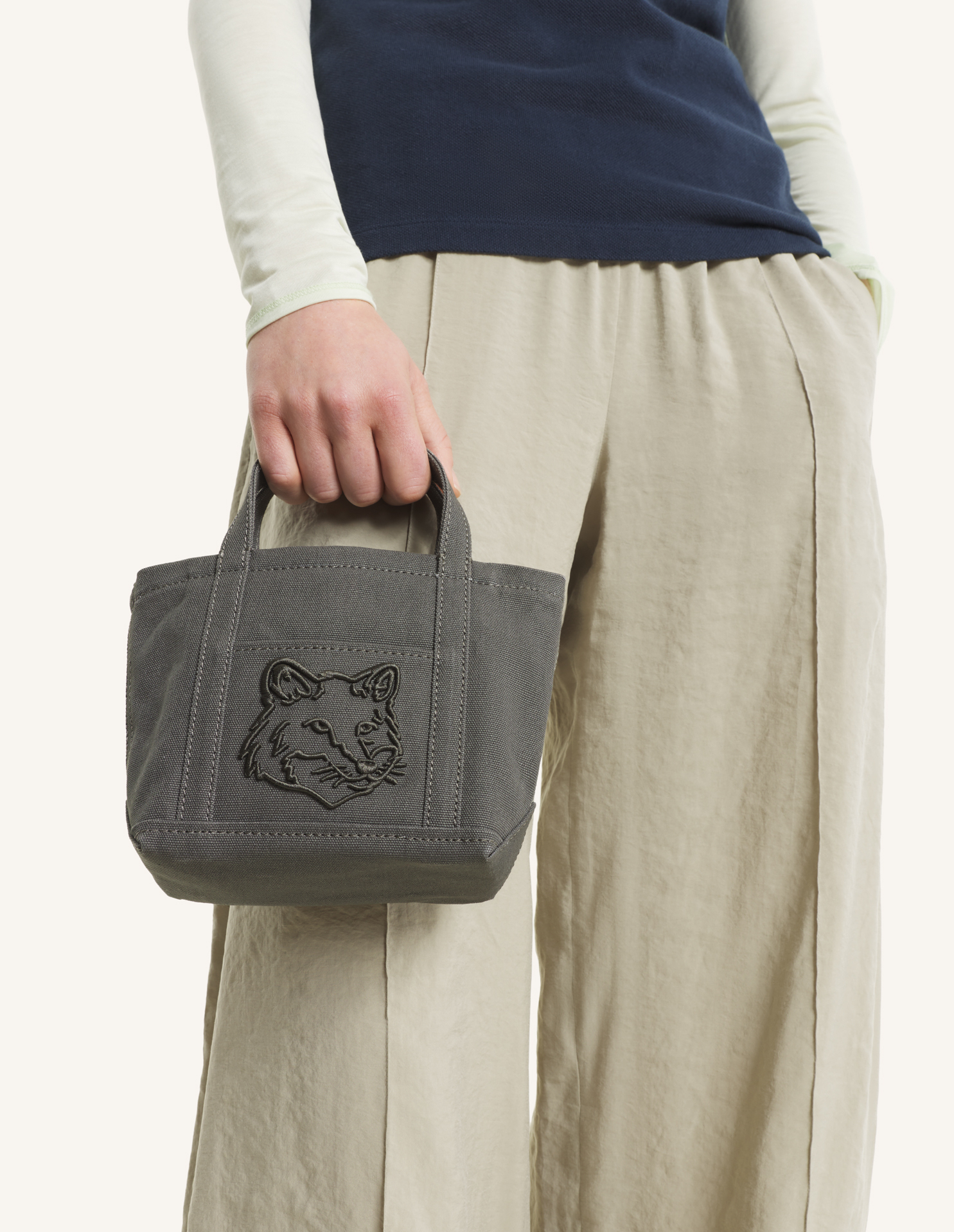 コーティングキャンバス素材のミニトートバッグ。フロントにフォックスヘッドの刺繍パッチが施されています。