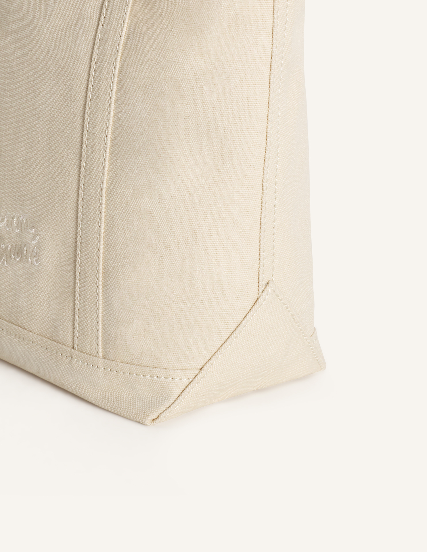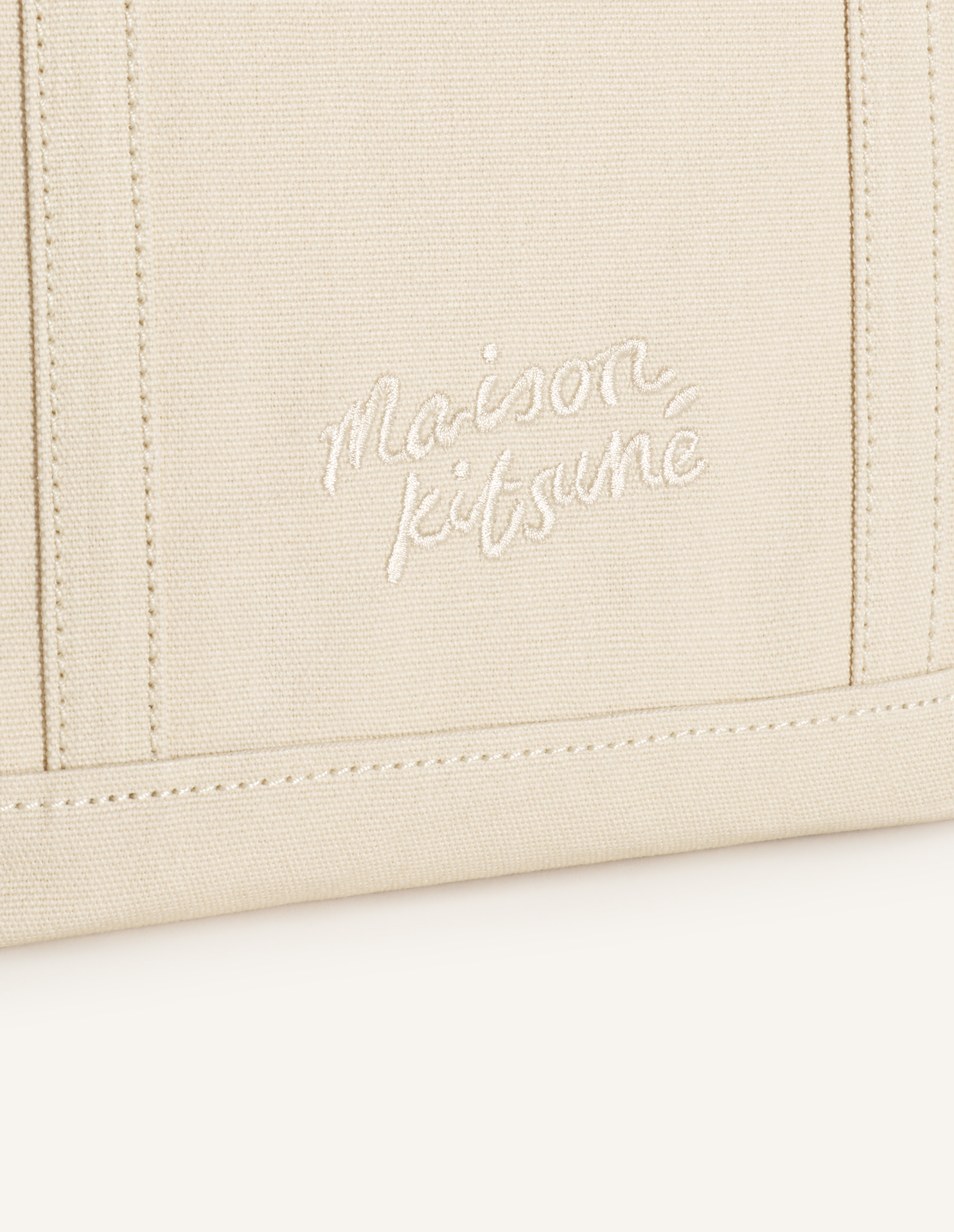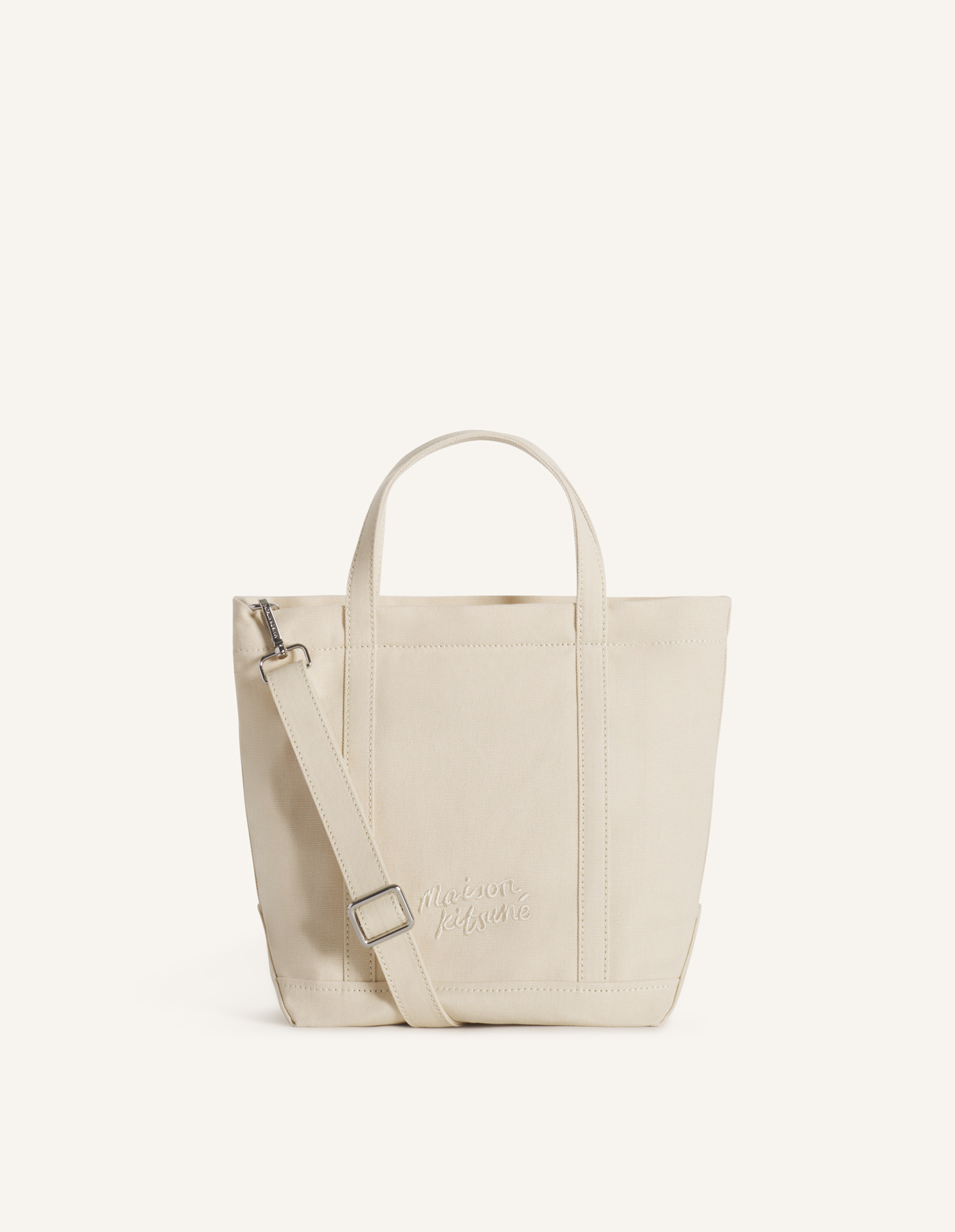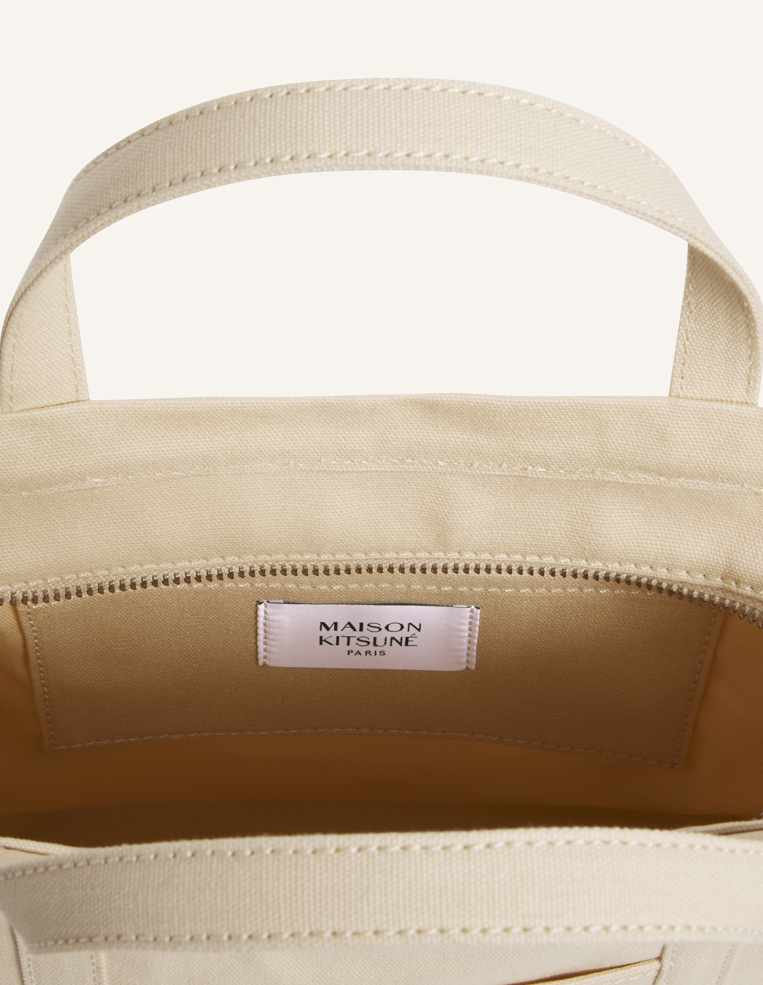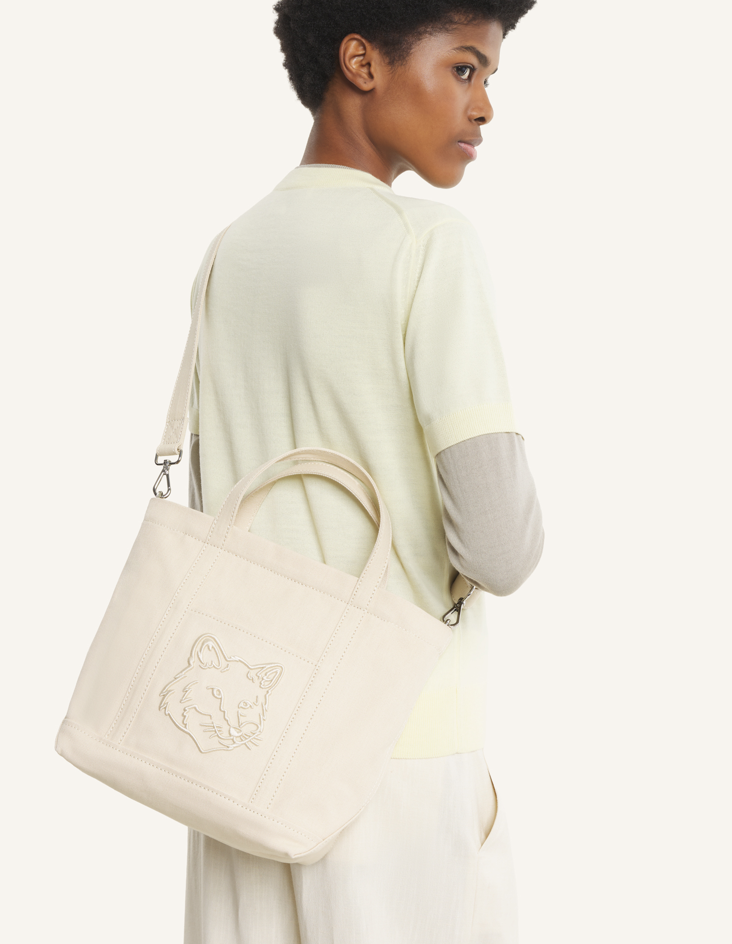 コーティングキャンバス素材のスモールトートバッグ。フロントにフォックスヘッドの刺繍パッチが施されています。