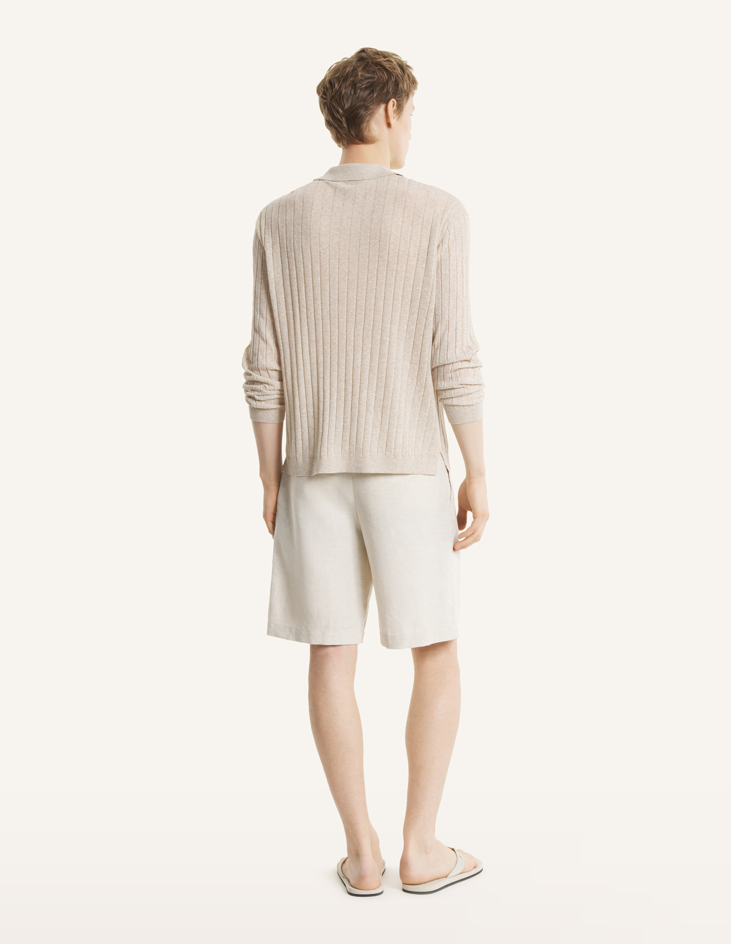 • コットンリネンブレンドリブロングスリーブシャツ。
