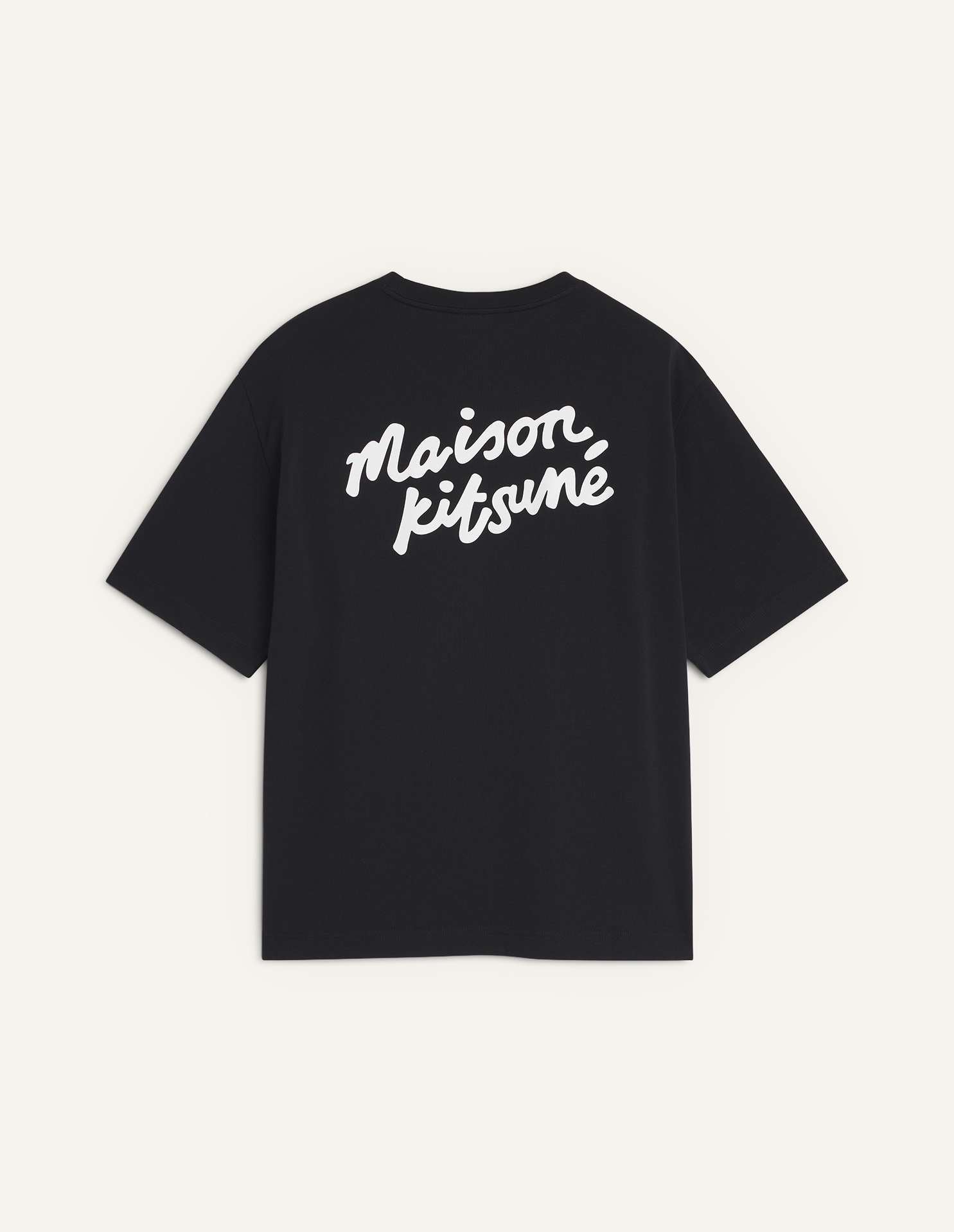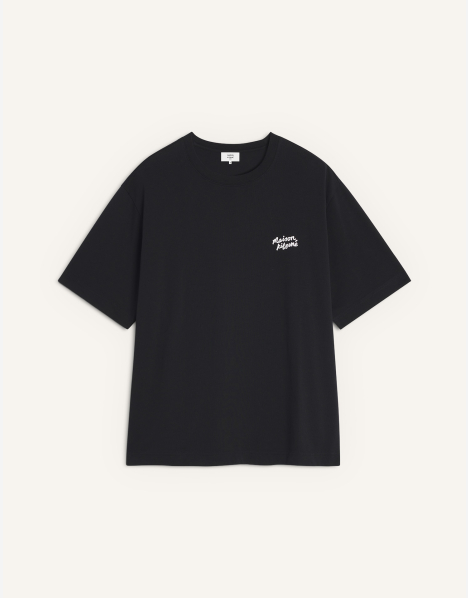 コットンジャージーの半袖Tシャツ。オーバーサイズフィット、コントラストの効いた「Maison Kitsuné」のハンドライティングロゴ刺繍が施されています。