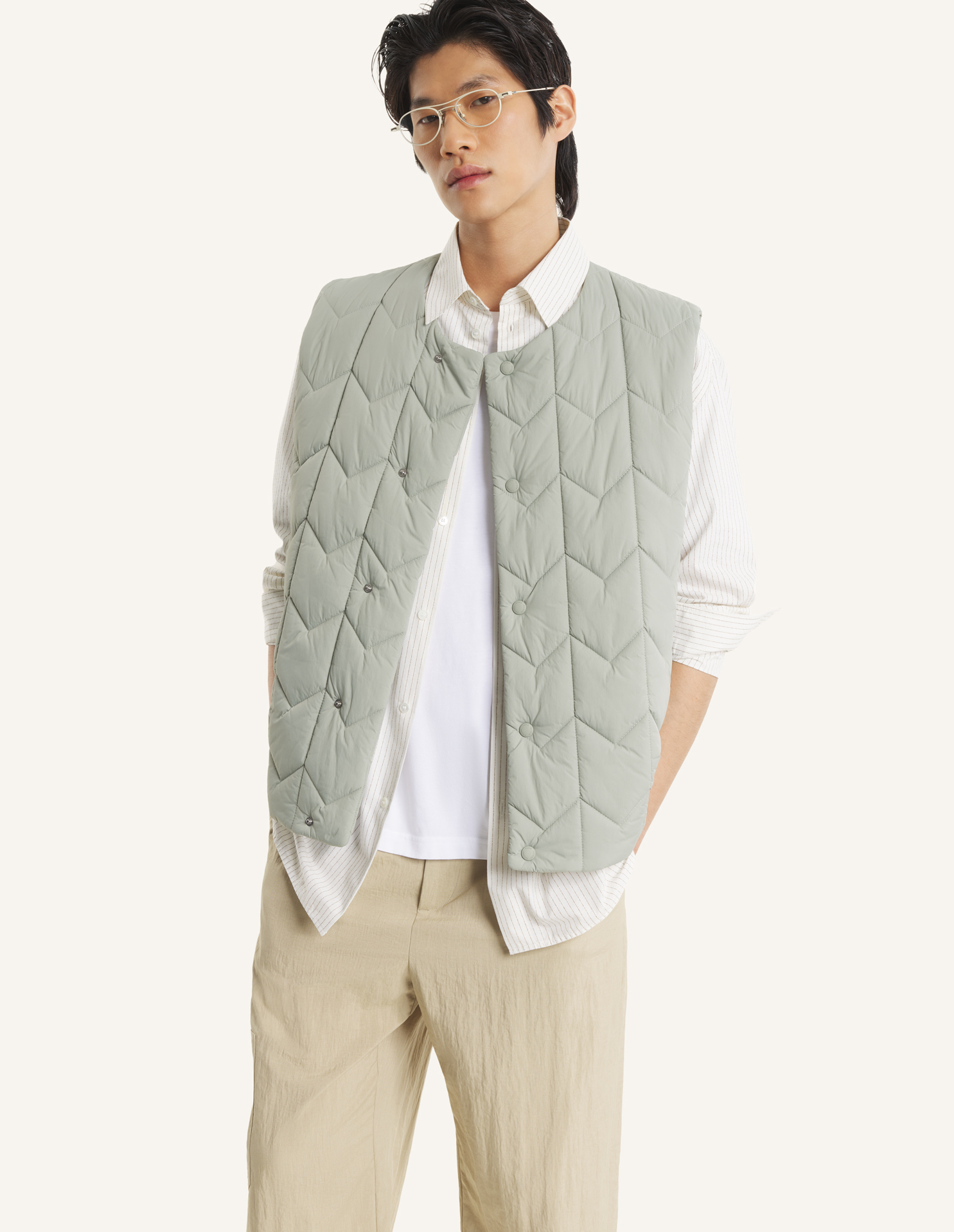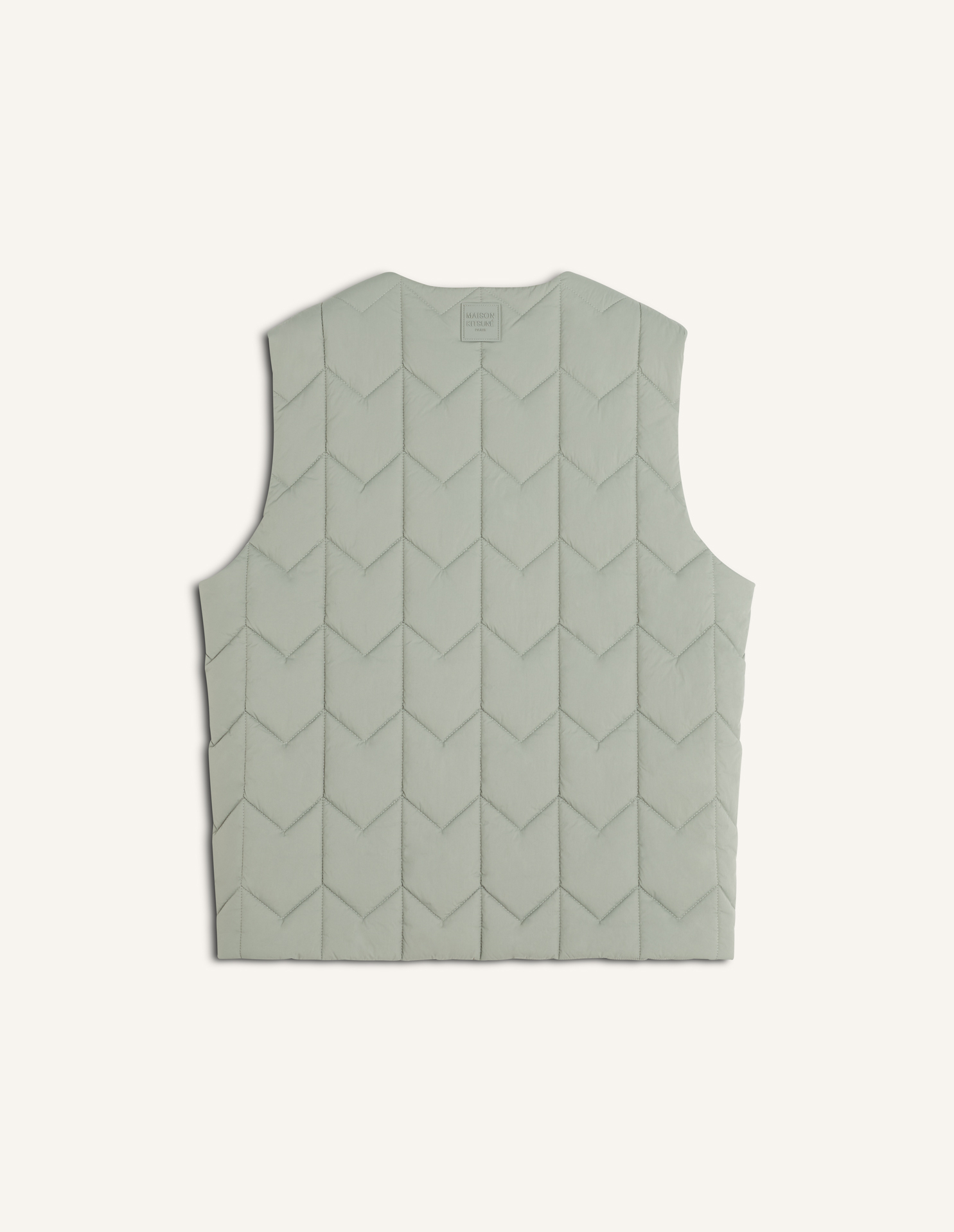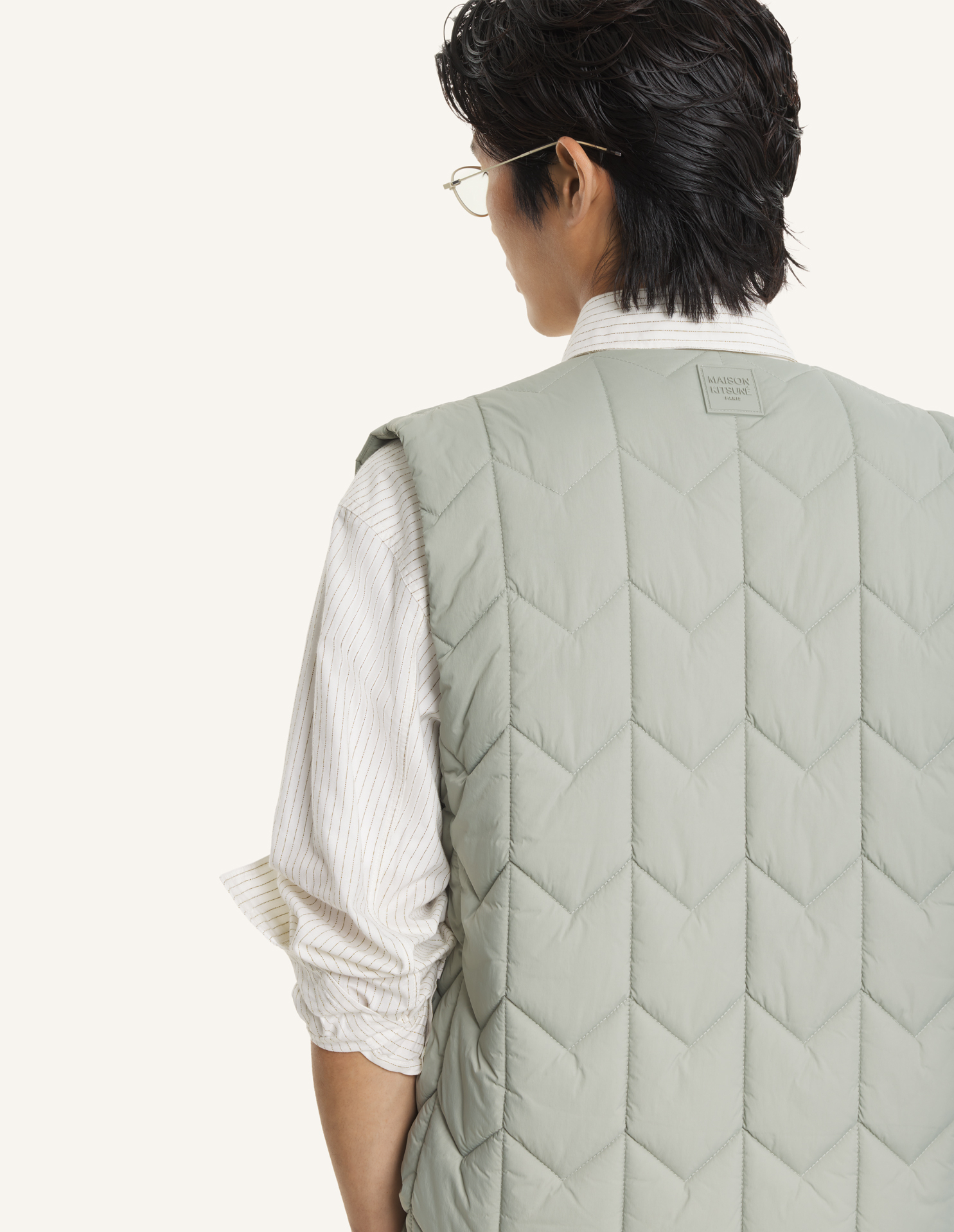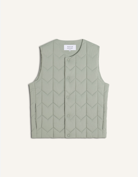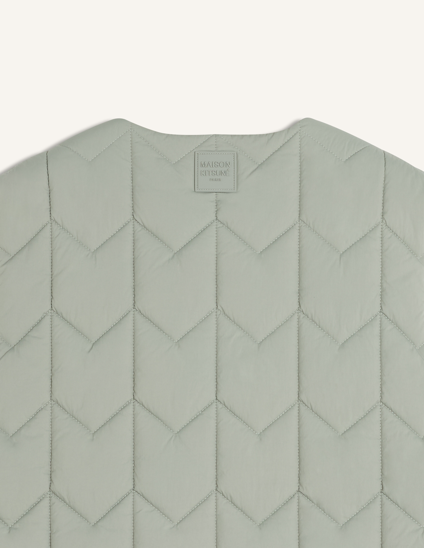 撥水キルティングナイロン素材のジャケット。後ろの襟ぐりに「MAISON KITSUNE PARIS」ロゴのシリコンパッチが施されています。