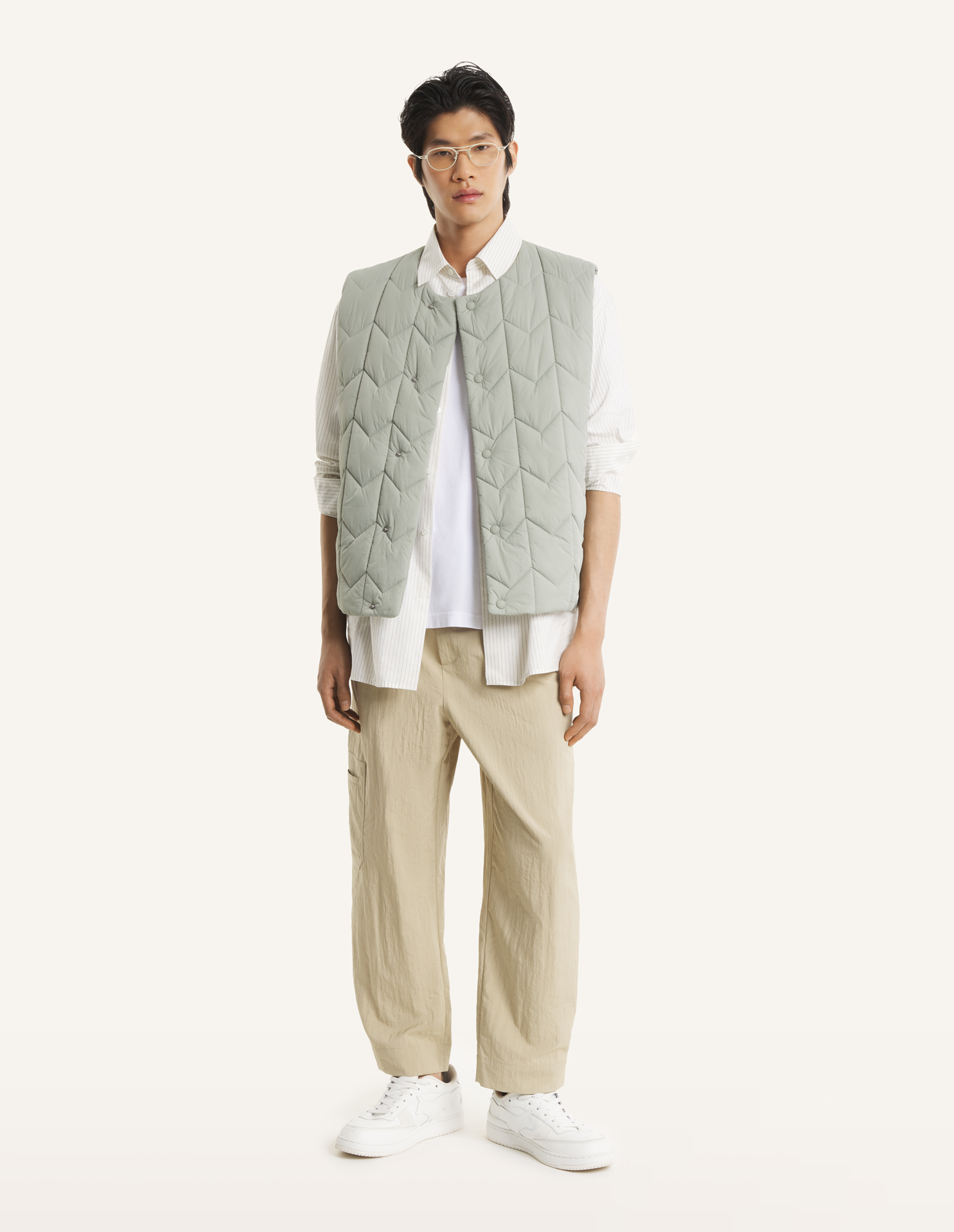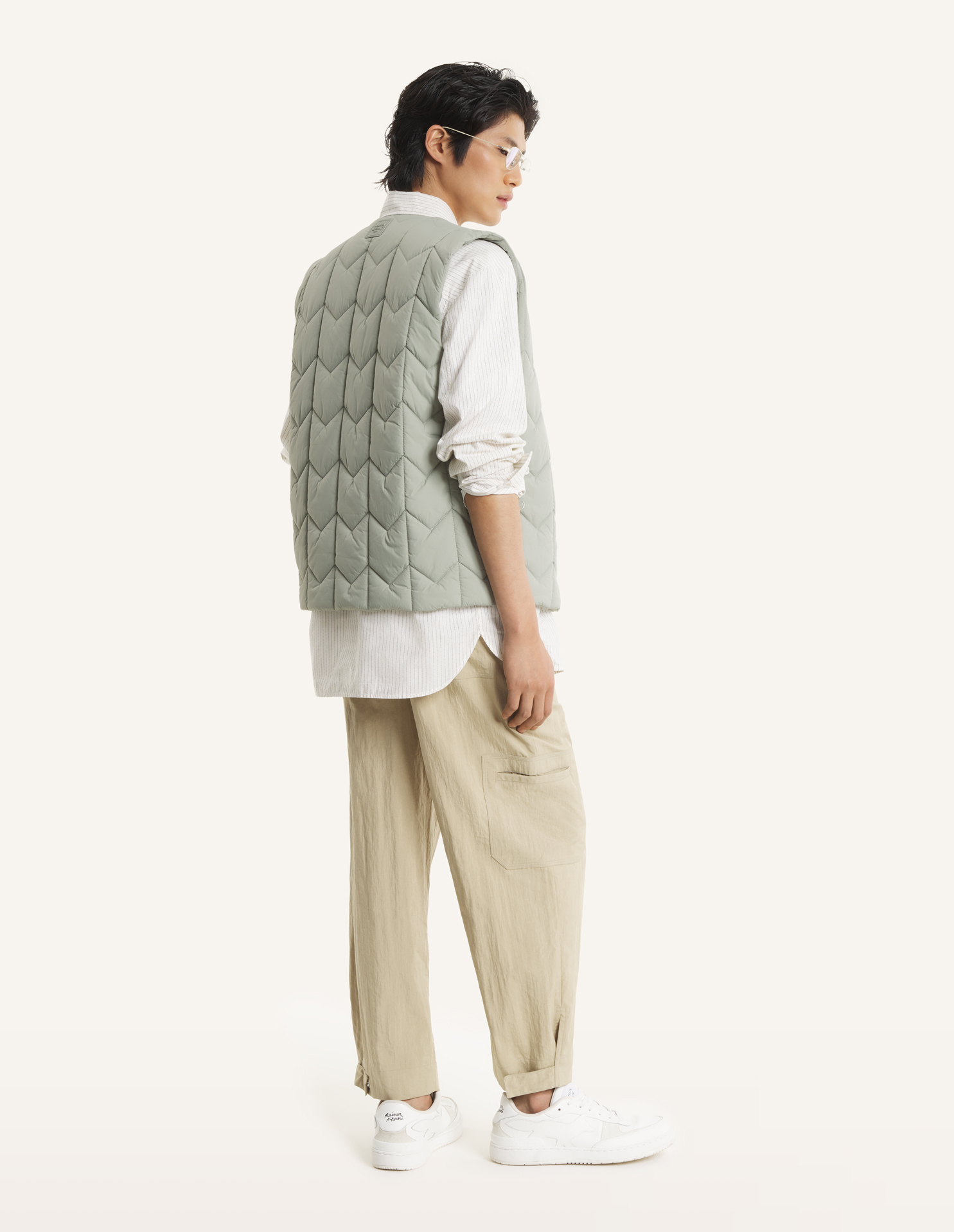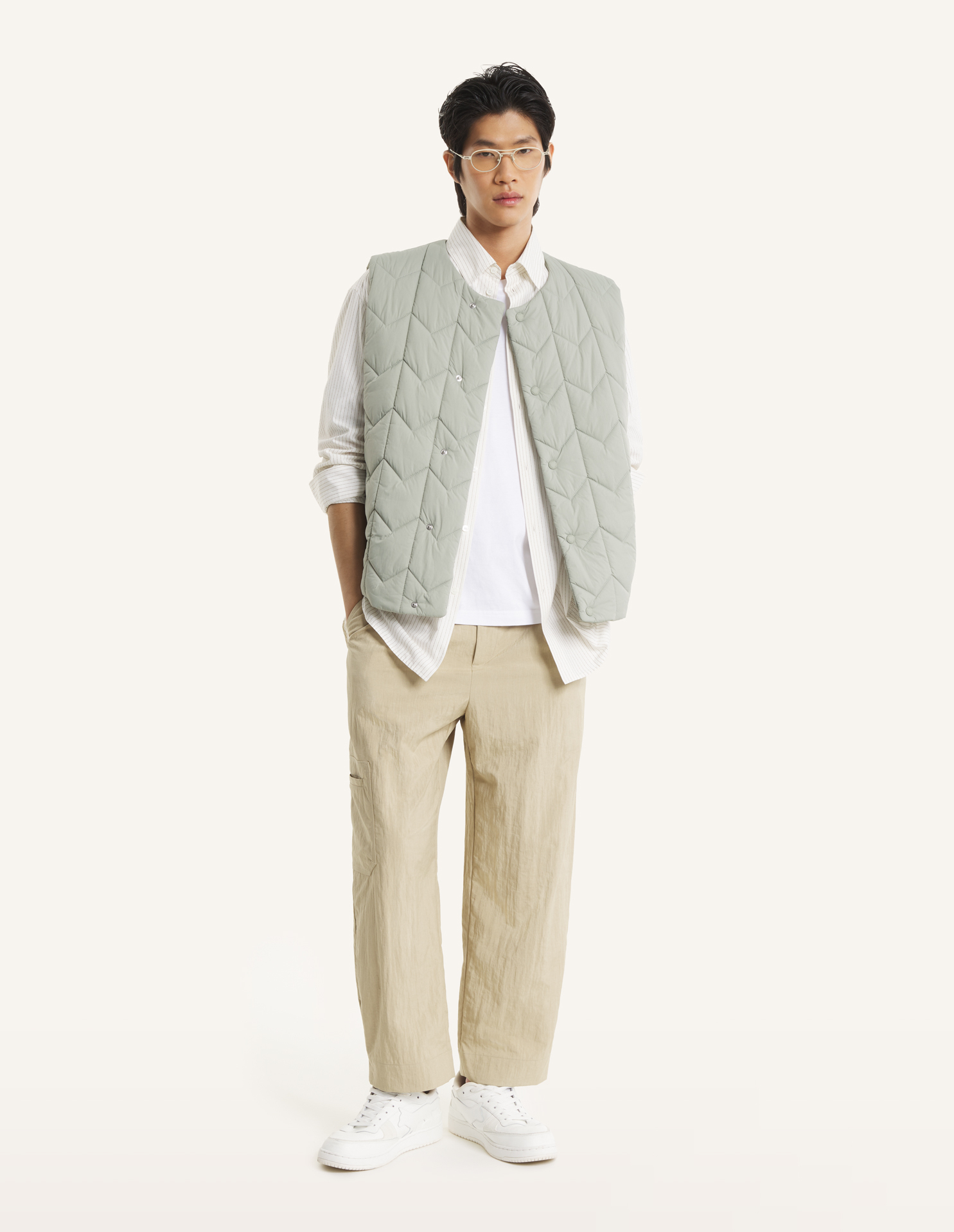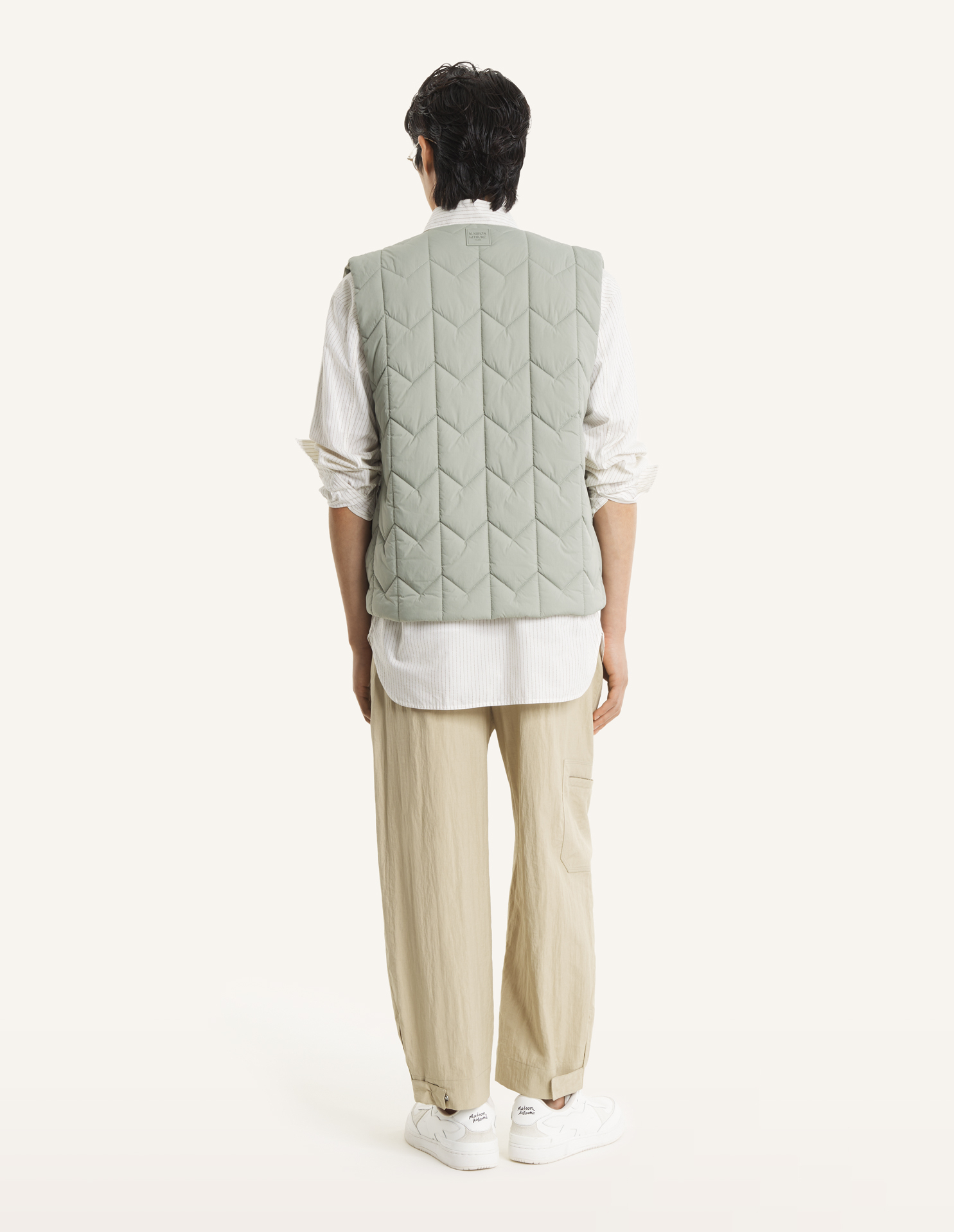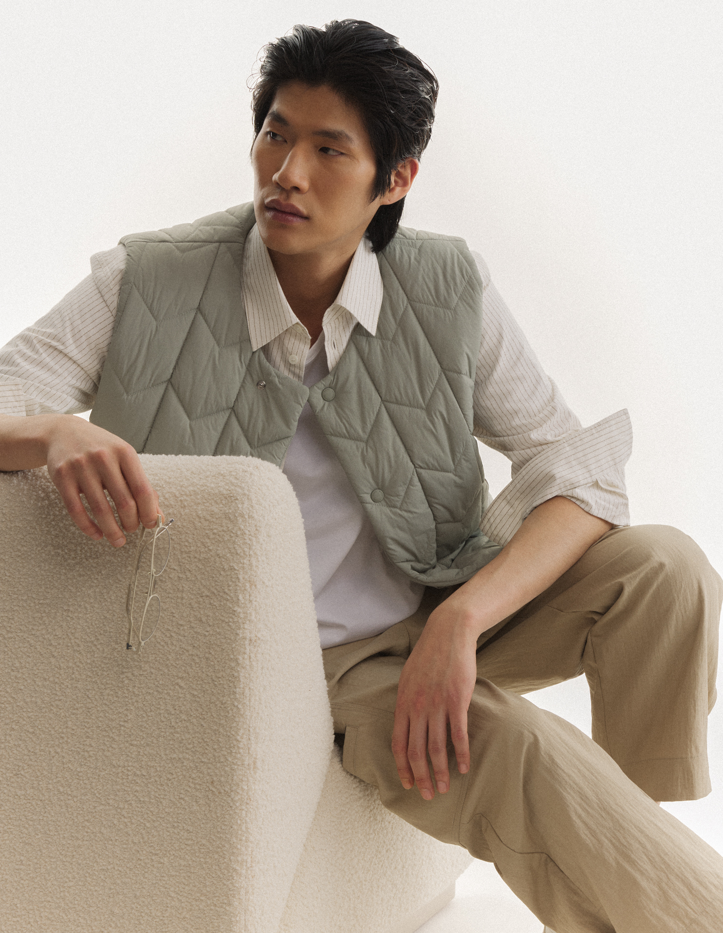 撥水キルティングナイロン素材のジャケット。後ろの襟ぐりに「MAISON KITSUNE PARIS」ロゴのシリコンパッチが施されています。