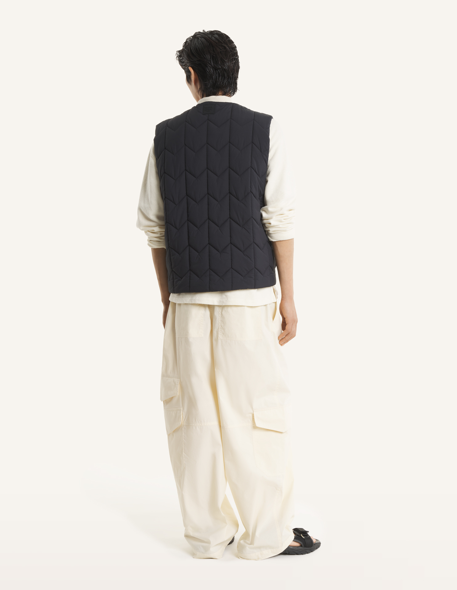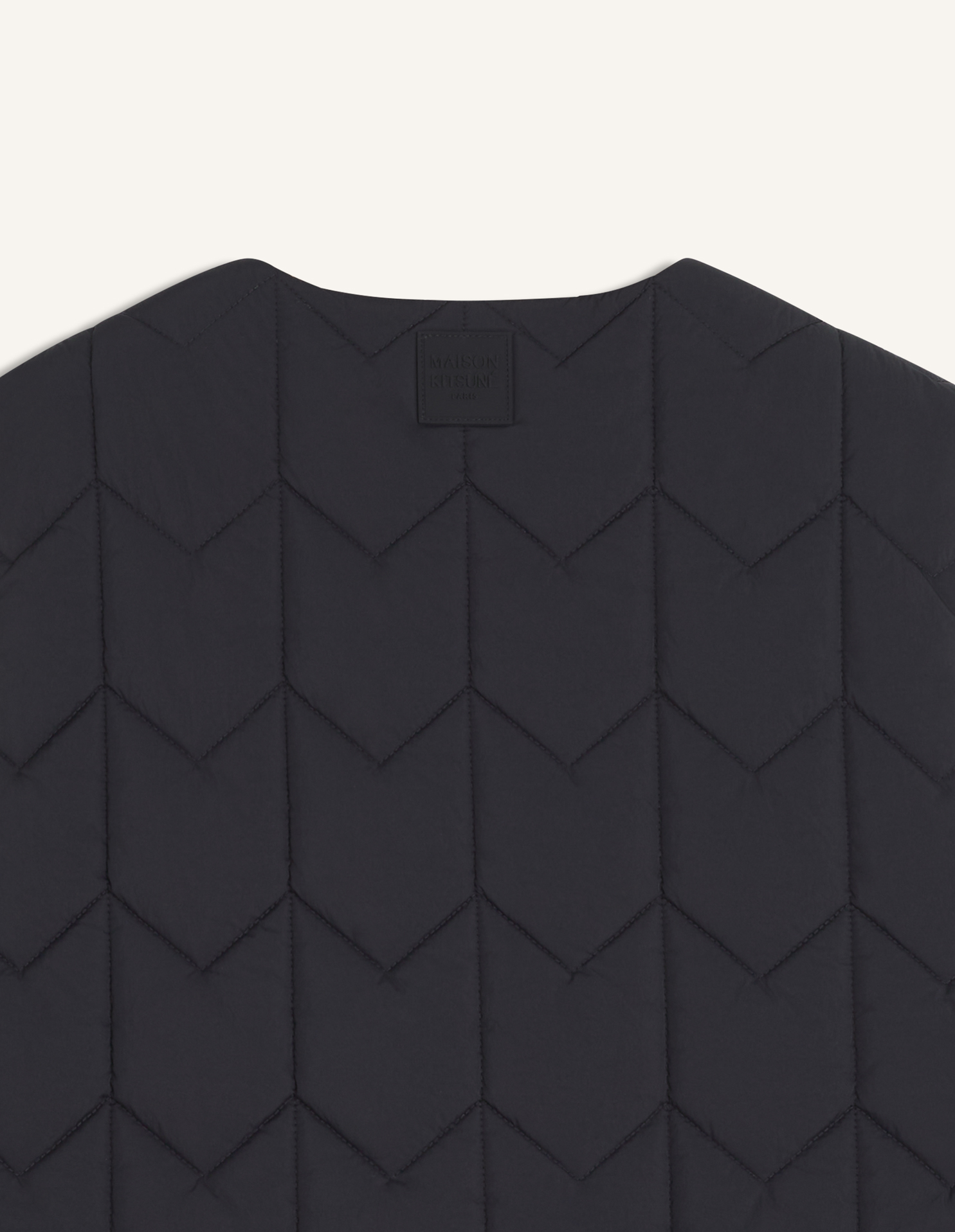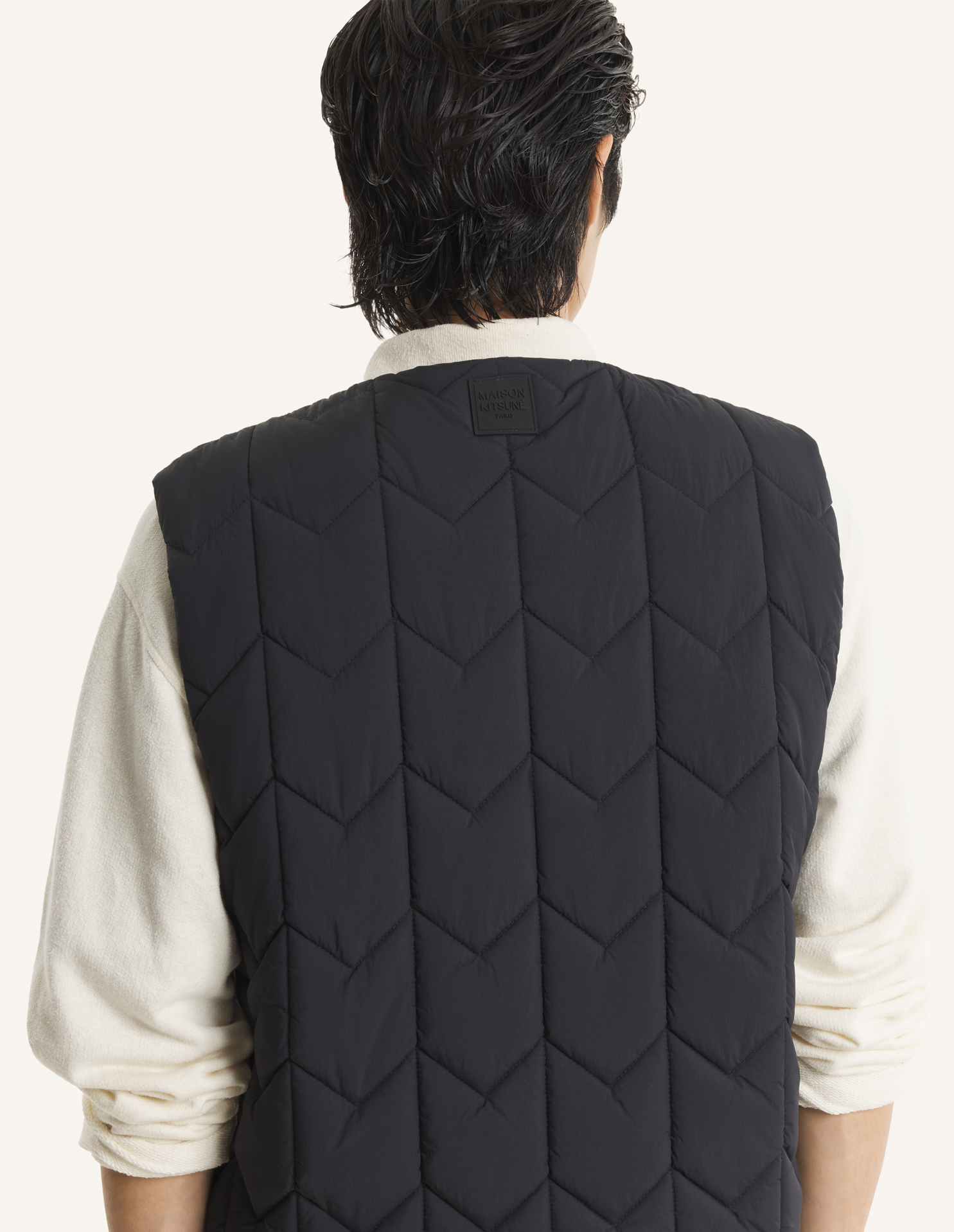 撥水キルティングナイロン素材のベスト。ストレートフィットで、後ろの襟ぐりに「MAISON KITSUNE PARIS」ロゴのシリコンパッチが施されています。