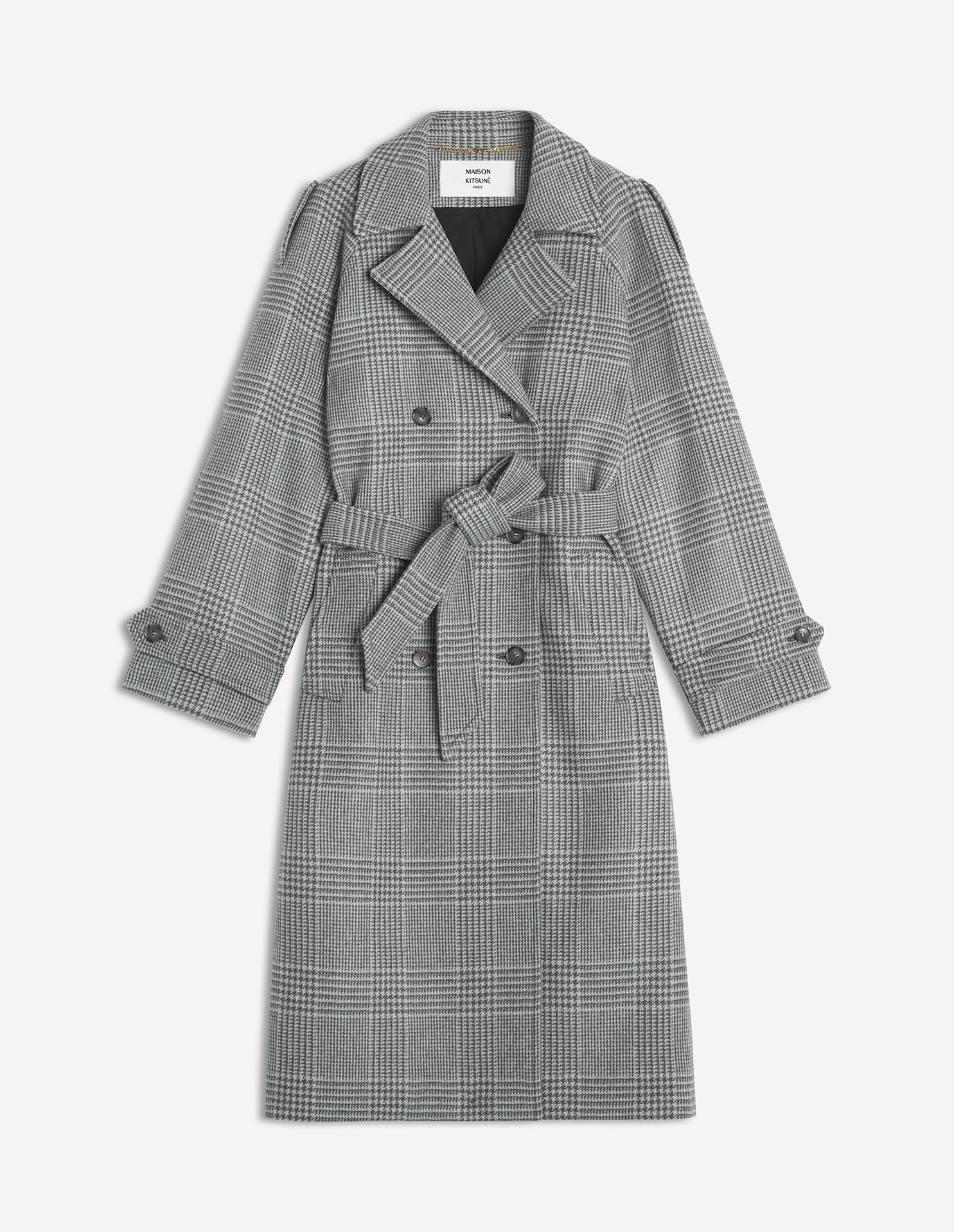 • リサイクルウールのプリンスオブウェールズ柄トレンチコート