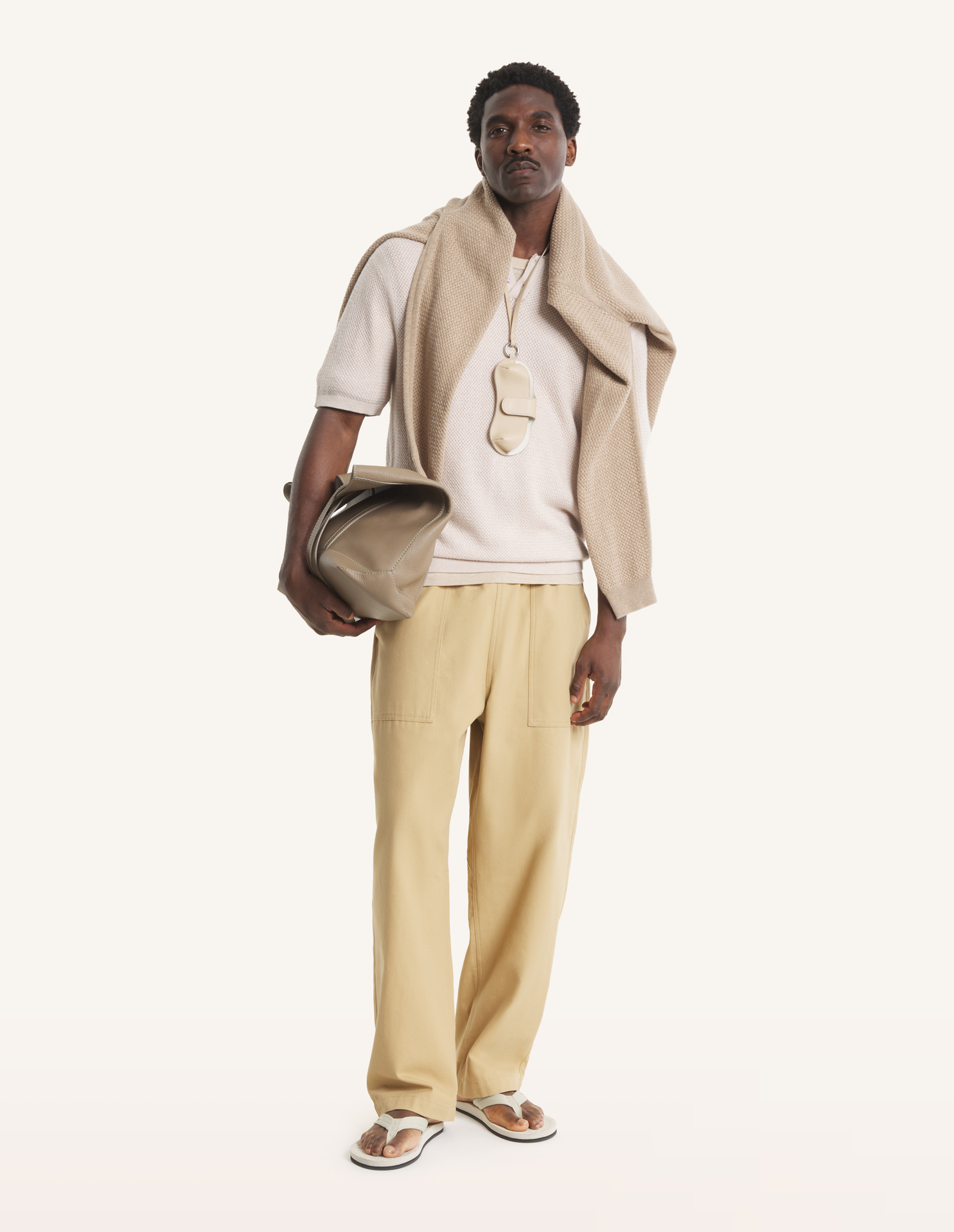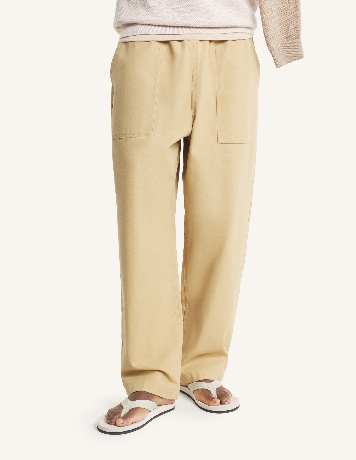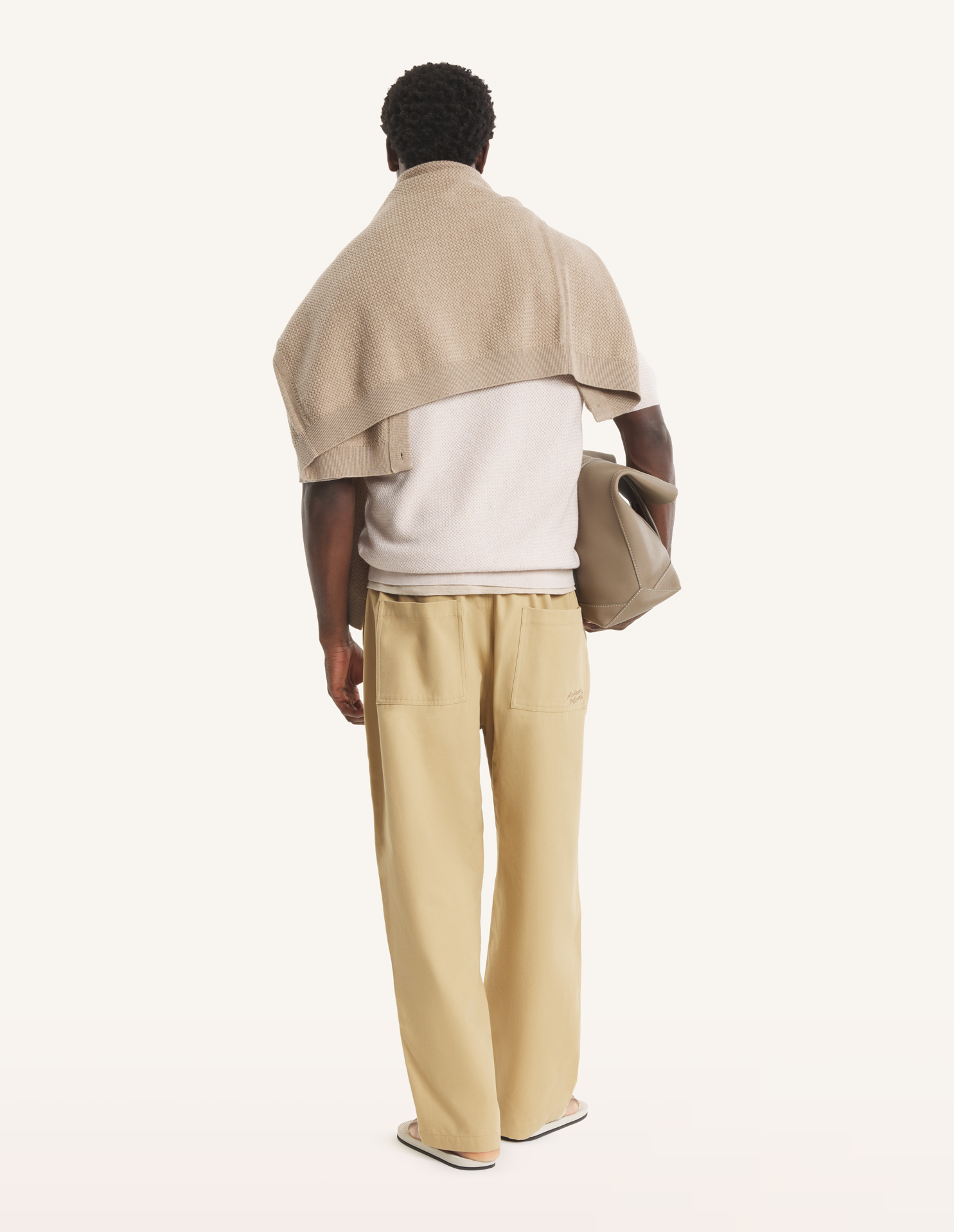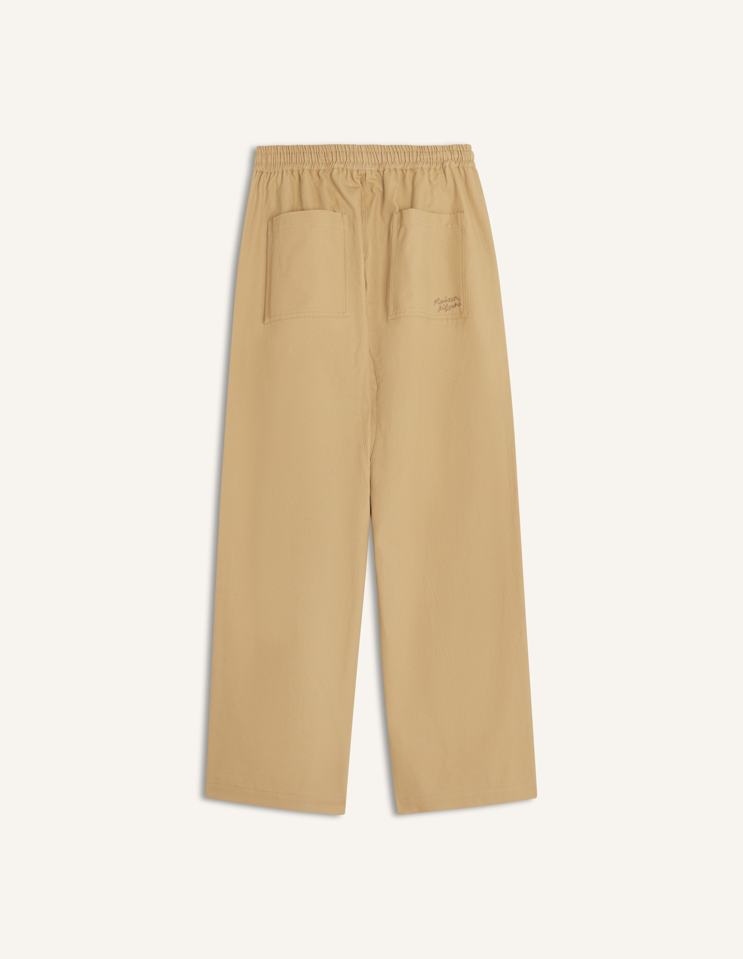 コットンキャンバス素材のワークウェアパンツ。リラックスフィットで、バックに「Maison Kitsuné」のハンドライティングロゴ刺繍が施されています。