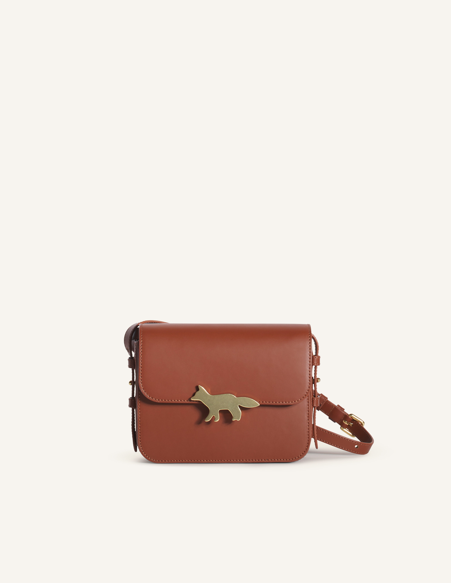 Edie bag in smooth, matte leather, gold Profile fox clasp, adjustable shoulder strap.