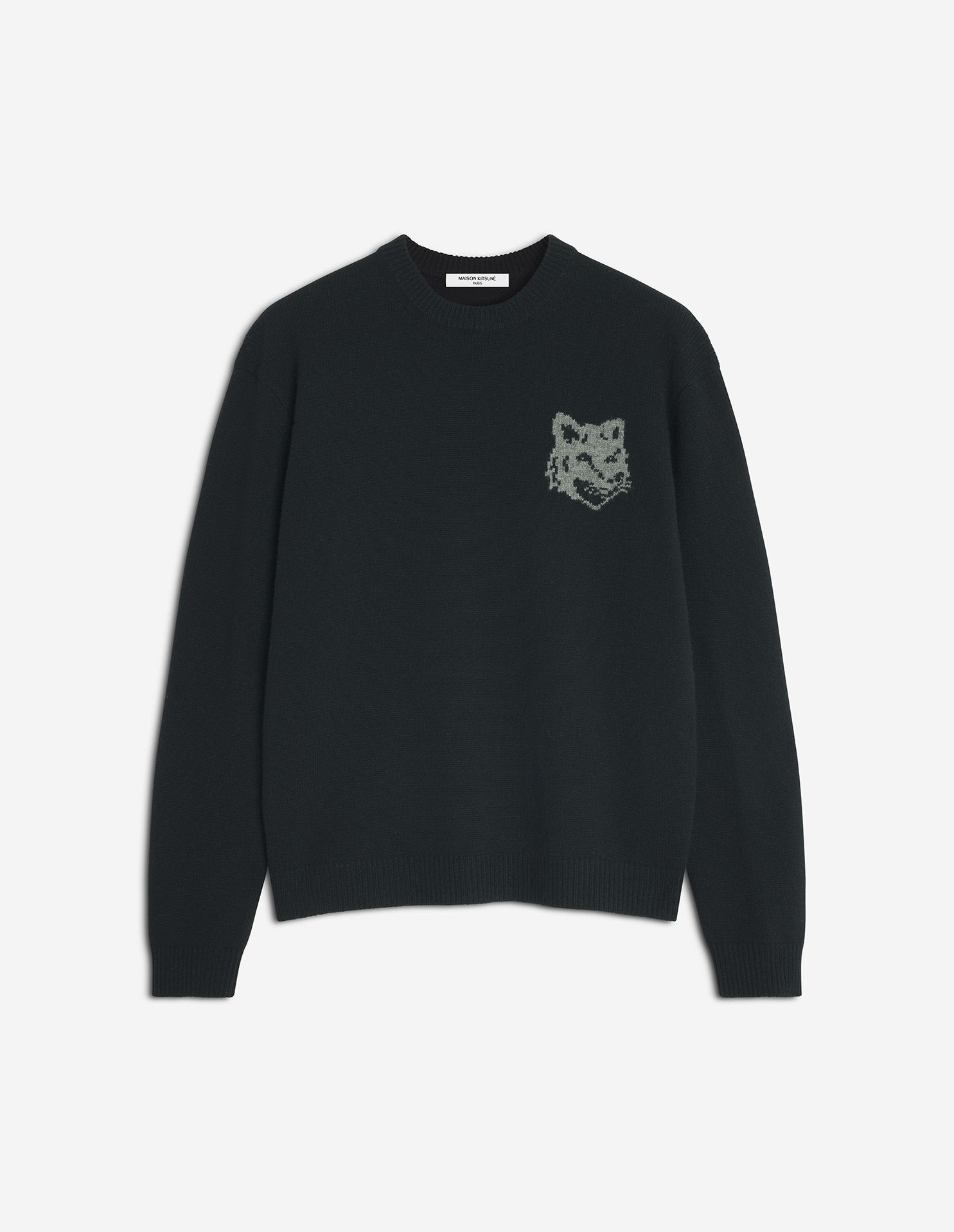Merino wool jumper with long sleeves. Comfort fit, Fox Head intarsia.