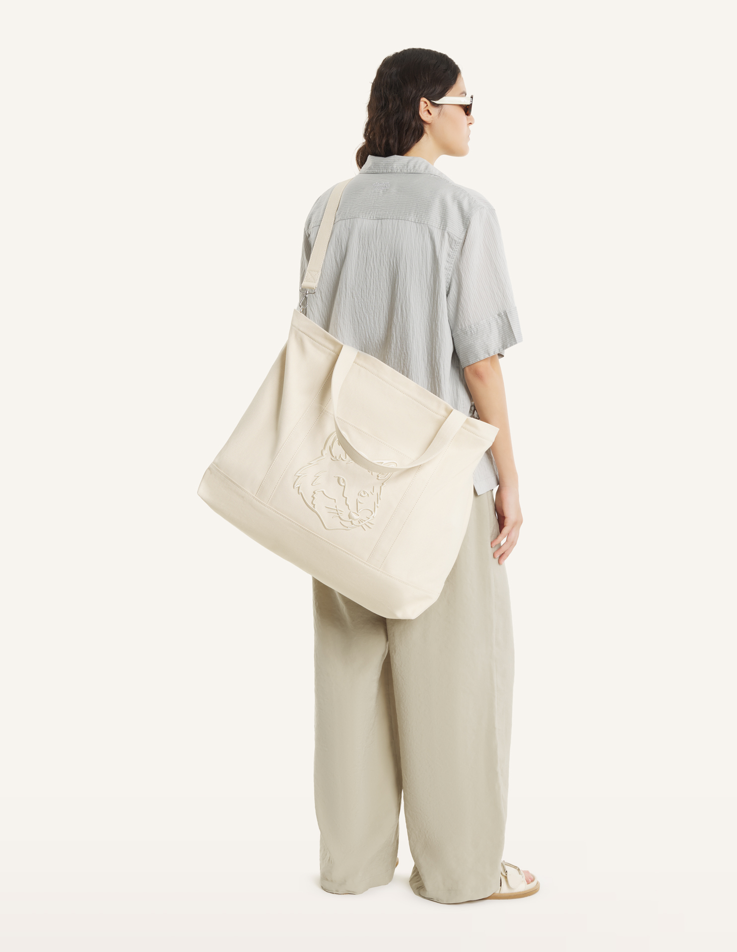 XL tote bag in coated canvas with Fox Head embroidery on the front.